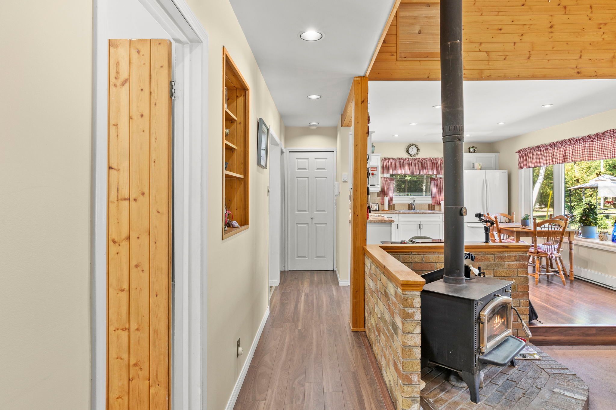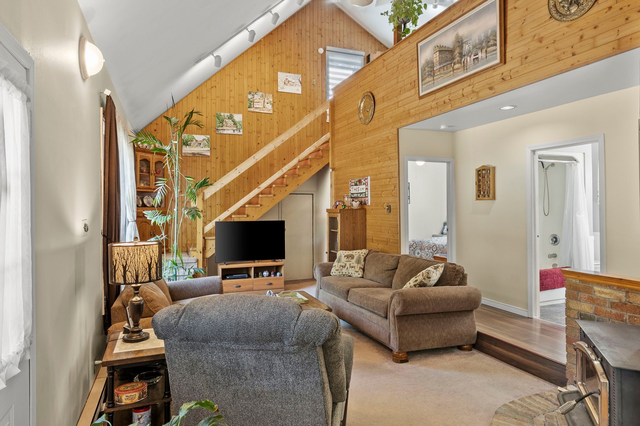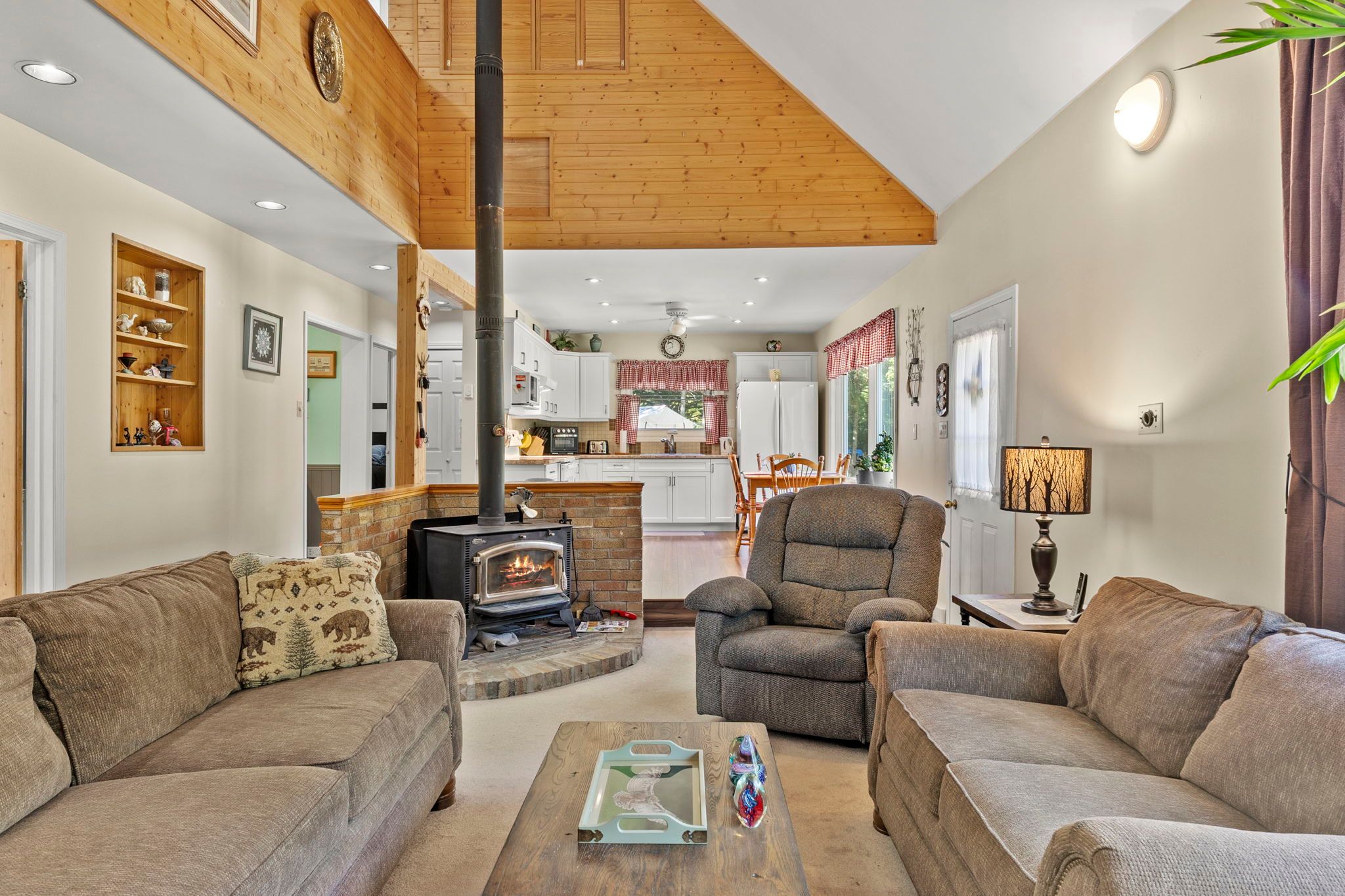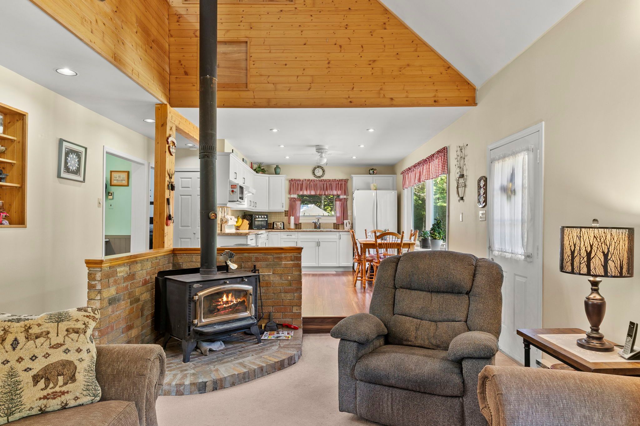 Step into this inviting 3 bedroom, 1 bathroom, open concept home, where vaulted ceilings and sun filled windows frame a cozy wood stove at the heart of the living space. Situated on over 2 acres with direct river access and no immediate neighbours, it offers the perfect blend of privacy and natural beauty. This well maintained property features a detached two car garage and a spacious circular driveway, providing plenty of room for vehicles and recreational toys. Energy efficient triple pane windows and a durable metal roof add peace of mind, while a convenient indoor storage area, currently used for firewood makes winter refills effortless. Adventure is right outside your door with the 85 km victoria rail trail just steps away, perfect for snowmobiling, atving, dirt biking or scenic year round walks. Everyday conveniences are within easy reach, with mail and garbage/recycling pickup at the end of the driveway, quick access to highway 121 and monck road and only 6 km to the town of kinmount. Located on a school bus route, this home combines privacy with practicality. Here, peace, comfort and adventure meet, your private piece of paradise awaits!