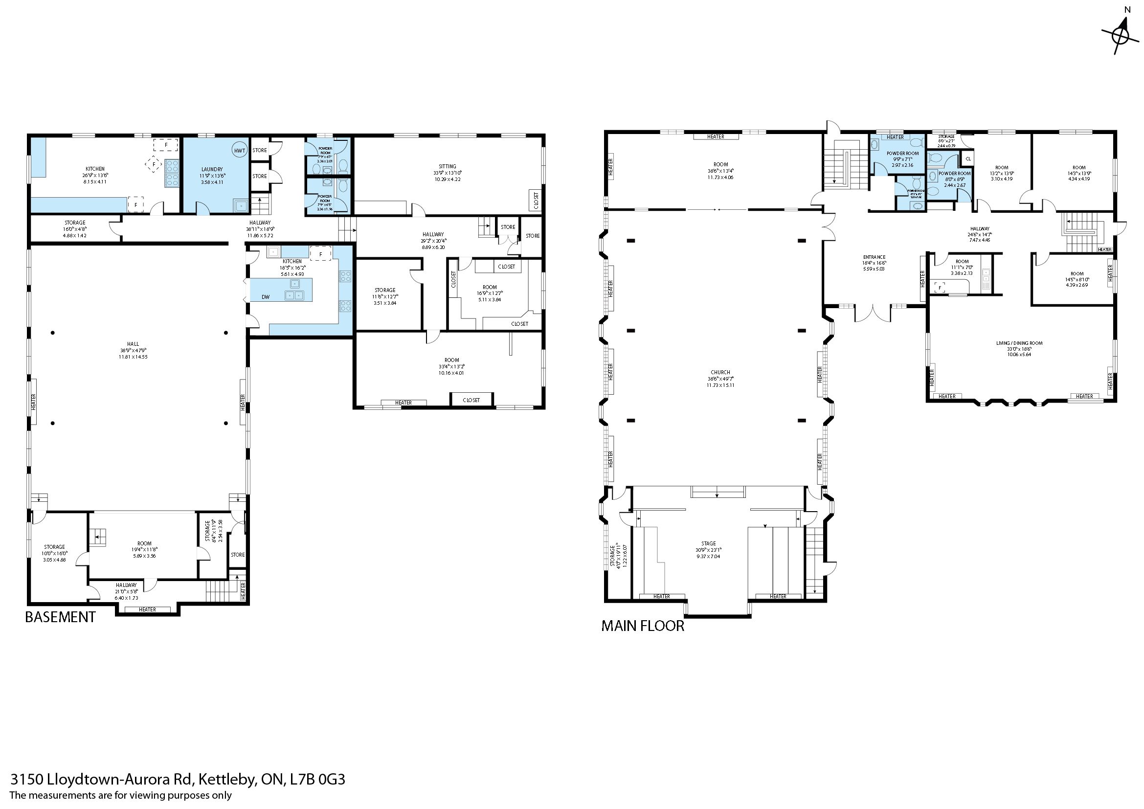 Place of worship with space for a nursery/daycare. The property is situated on 2. 94acres of desitable land in king township within close proximity to hwy400. Parking for approximately 35-40vehicles. Building total floor area 11554sqft (mpac). Sanctuary accommodates 150, chapel 50, gym 160, admin office, pastor's office, meeting rooms, fellowship hall, and 2 kitchens. Lower level offers a nursery school, and gym, with plenty of storage space. Vendor is offering the property on an as-is, where-is basis. Floorplan and matterport interactive virtual tour design attached.