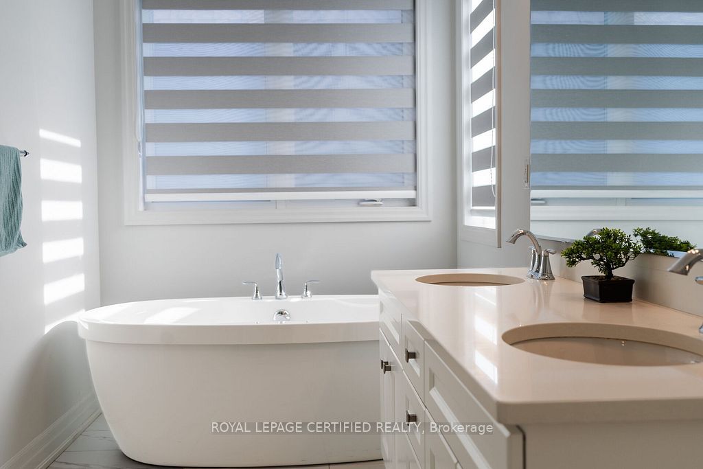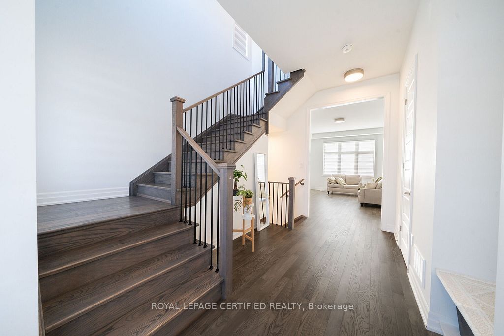 Welcome to this stunning one-year-old detached home sitting on premium lot in front of pond and scenic trail in the highly sought-after upper joshua creek community of oakville. As you step inside, the main floor impresses with 10-foot ceilings, creating a bright and open living space. The modern kitchen features quartz countertops, a large island, premium cabinetry, and stainless steel appliances - perfect for family living and entertaining. The second floor offers 4 spacious bedrooms, including a luxurious primary suite with a walk-in closet and a spa-like ensuite. Enjoy the fully fenced backyard, ideal for kids, pets, and summer gatherings. Side entrance to the basement waiting for your touches. This home combines contemporary design, quality finishes, and a prime location close to top-rated schools, parks, shopping, and major highways.