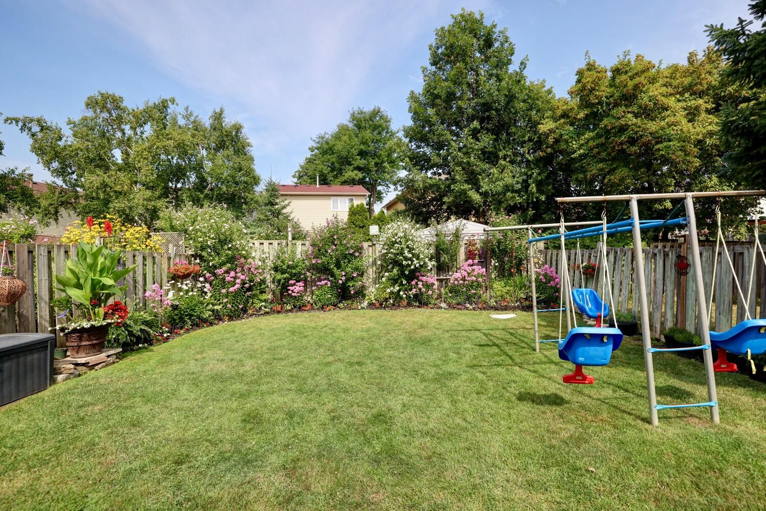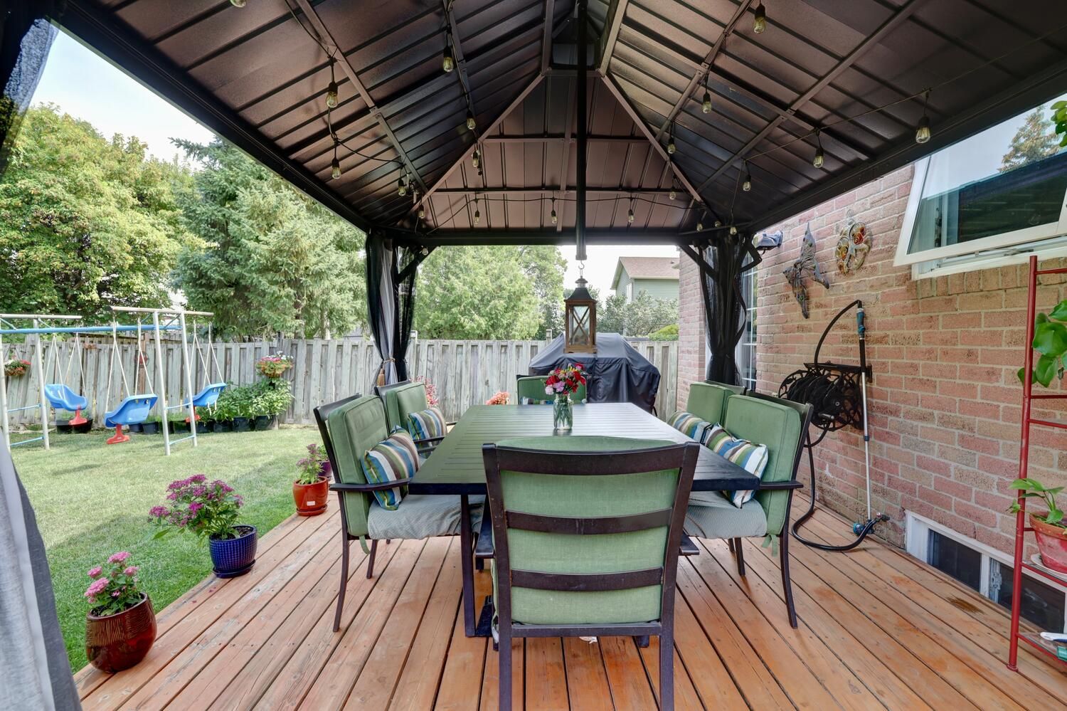 Fantastic detached home nestled on a 30 by 125 foot lot with over $75,000 spent on recent upgrades. Located on a child safe crescent in the family friendly neighbourhood of meadowvale with a spacious open concept living/dining room area with hardwood floors, 2 piece powder room, and most rooms/hallways freshly painted (2025). Renovated kitchen with stainless steel appliances/hood with gas stove, pantry with pull-out drawers, under cabinet lighting, ceramic backsplash, and large breakfast area with walk-out to yard. Three upper level bedrooms with laminate floors, 4 piece en-suite with modern vanity and soaker tub. Finished basement with vinyl floors, recreation area, office/potential 4th bedroom, and storage area. Gorgeous fully fenced private backyard oasis featuring deck with gazebo (2024) and lush professionally landscaped perennial gardens. Great curb appeal with thousands spent on upgrades featuring front porch (2024), garage door/header (2024), windows main/upper level (2023), roof (2019), stone walkway, steps, and garden beds(2022). Premium location just minutes to highways, transit, schools, parks, restaurants, meadowvale town centre, meadowvale community centre, and streetsville go station.