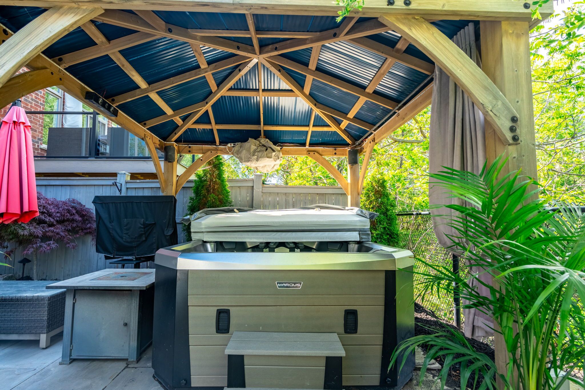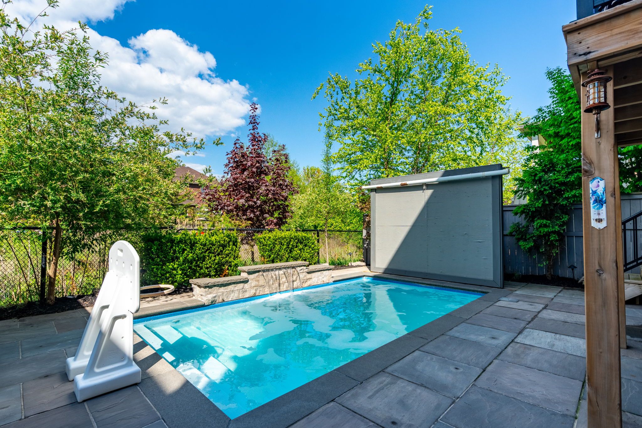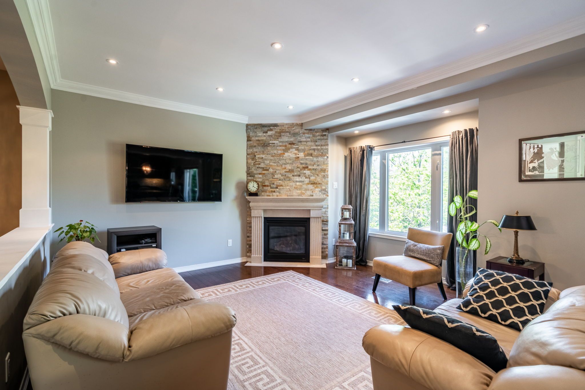 Stunning, 5 bedroom alton village executive family home. Rarely offered ravine lot with backyard oasis featuring a gorgeous heated inground saltwater pool and professionally landscaped lot. Over 4,000 square feet of luxury living space. Open main floor features living room, formal dining room, den, eat in kitchen, powder room and family room. Hardwood and tile flooring throughout this level. Family room has crown moulding and fireplace with feature hearth. California shutters in the living room. Hardwood stairs lead to the second floor. 5 spacious bedrooms with hardwood flooring. Recently renovated luxury master bedroom ensuite with fireplace, glass enclosed shower, vessel soaker tub and double sinks with bluetooth mirrors (2022). 2 bedrooms have a jack and jill ensuite bathroom with stunning tilework and bluetooth mirror (2021). Updated main bathroom with glass enclosed shower and bluetooth mirror (2021). Escape to the lower level for entertaining or chilling out. Could be turned into an ideal in-law suite. Features a finished rec room with fireplace, dry bar and servery, full, modern bathroom, storage room and a second laundry room (2018). The bathroom and laundry room have heated tile flooring. Rec room has ceiling speakers. Storage room could be a second den. Patio doors walk out to your backyard oasis. Heated inground saltwater pool, hot tub, pergola and theatre wall for entertaining guests or watching the big game. Exterior speakers in pool area. Professionally hardscaped and totally private in a ravine setting. This home checks off all the boxes for a growing family or multi-generational home.