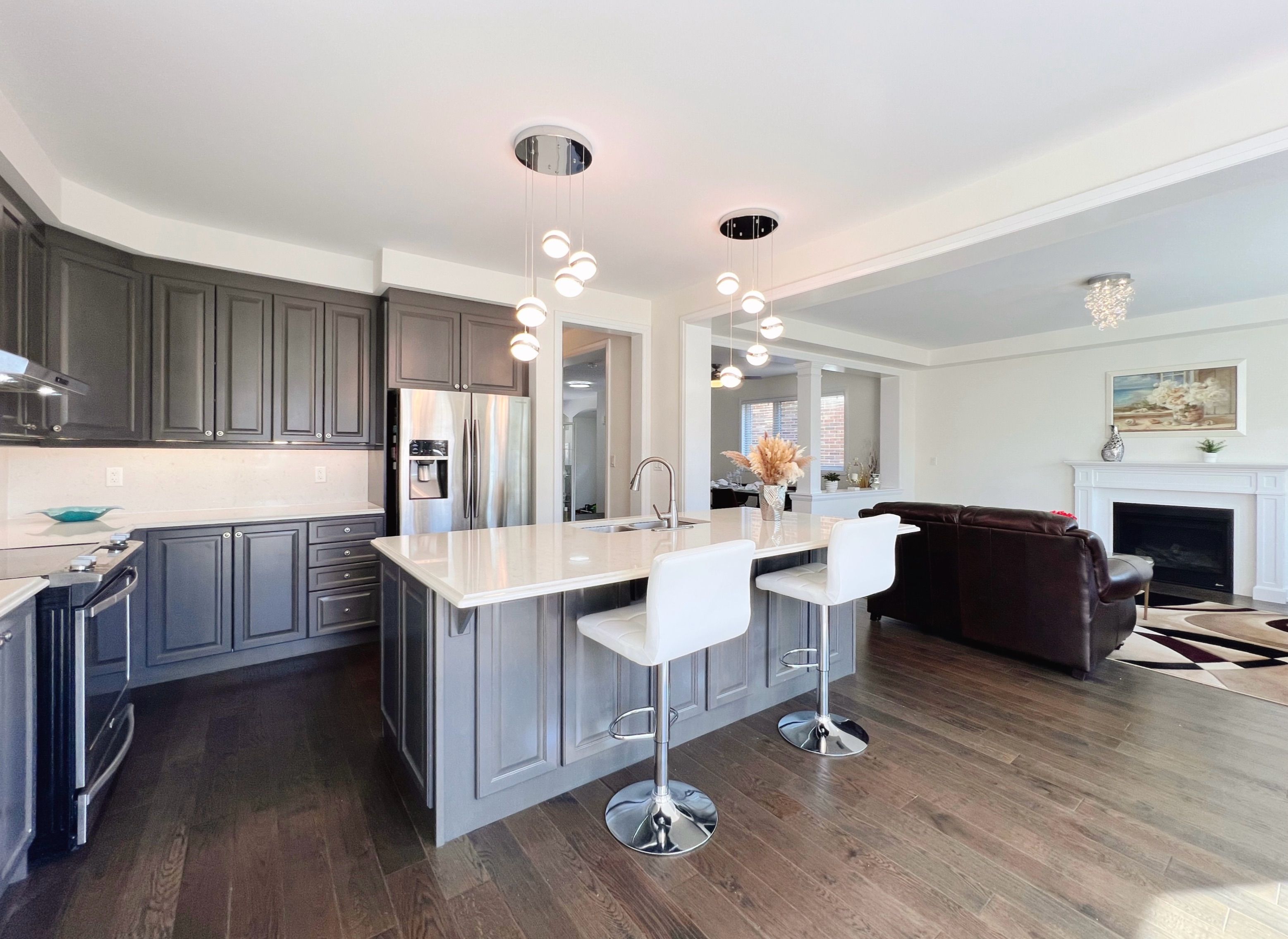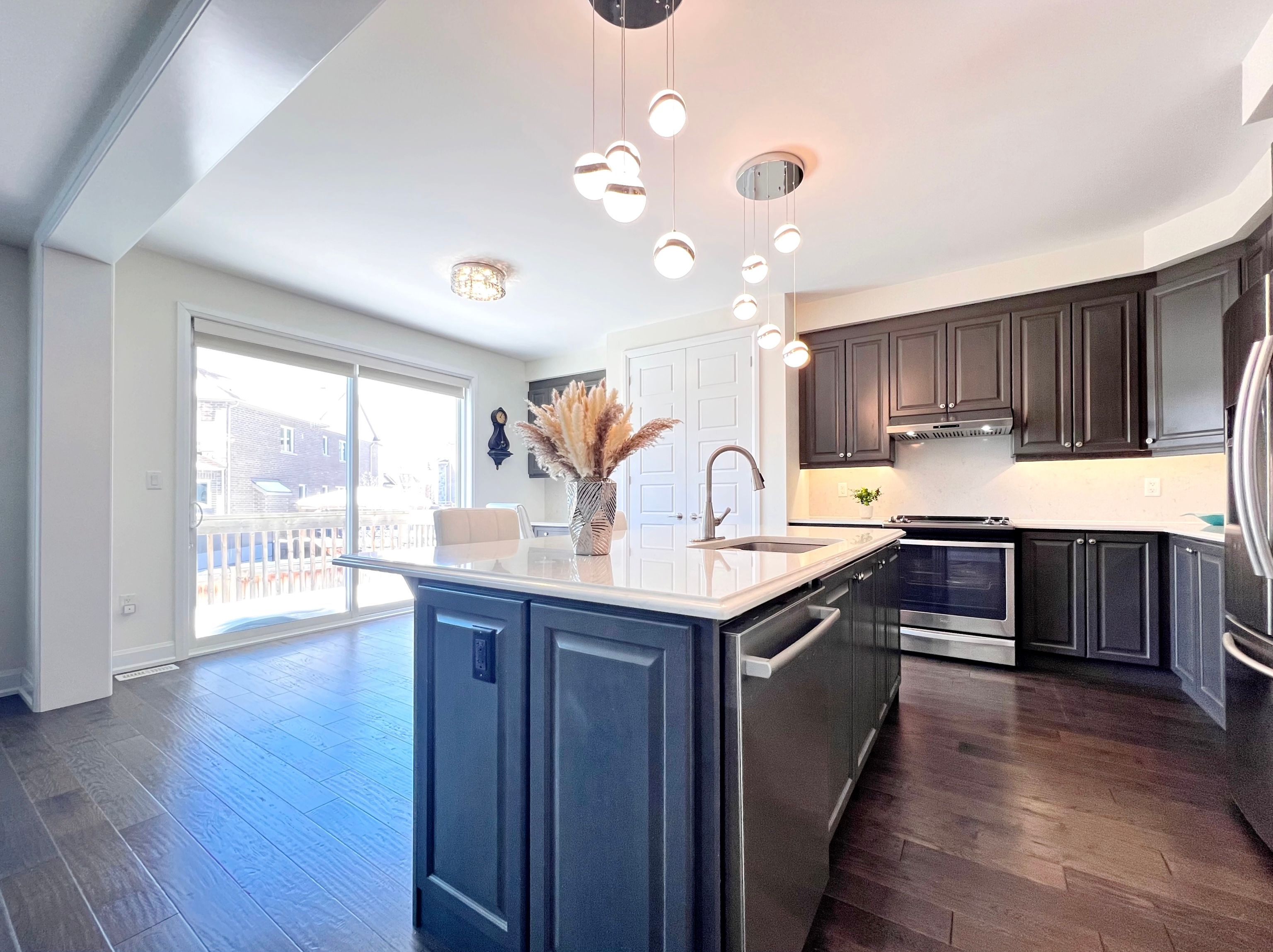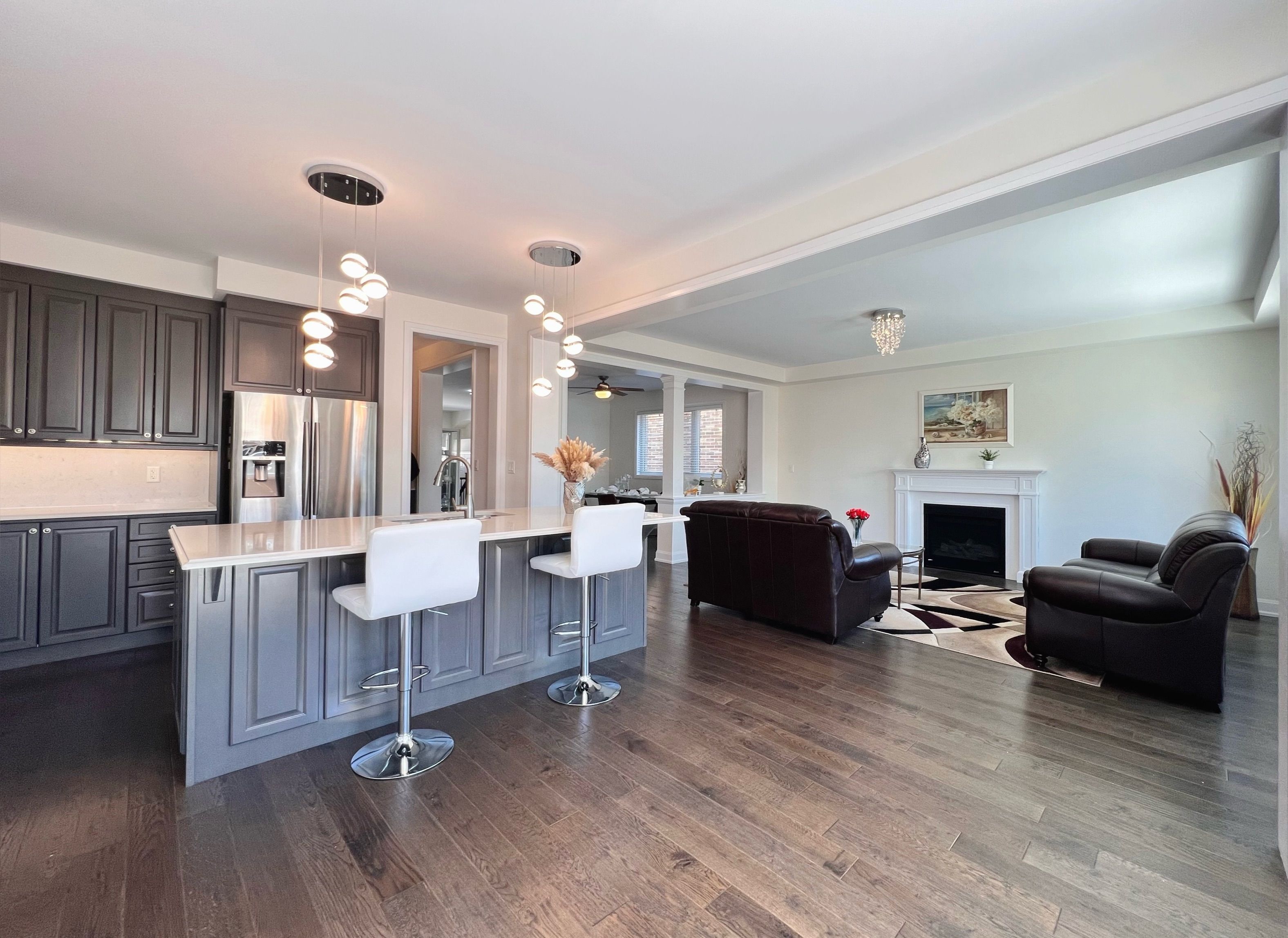 A true standout mattamy one of most sought-after favourable layout that rarely offered in a friendly neighbourhood. The stunning in-between great room with soaring 15-ft ceilings and walk-out to front balcony, filling the home with natural light and creating an exceptional sense of space. Upgraded 4-bedroom plan converted to 3 bedrooms plus open-concept loft/office with window. Second bedroom includes a private ensuite. Professionally finished basement with 9-ft ceilings, featuring 2 bedrooms, a spacious living area, 3-piece bathroom and a full kitchen. Backyard offers enhanced privacy with elevated lot rear views. Enjoy outdoor space at both front balcony and rear deck. Thoughtfully $$$ upgraded from top to bottom: 9-ft ceilings on both ground and upper levels with 8-ft doors; elegant 5" oak hand-scraped hardwood on main floor throughout; 1 1/4" thickness granite countertops and backsplash in kitchen & butler's area; freestanding tub in primary ensuite; upgraded trims and smooth ceilings throughout, owned tankless water heater. A rare blend of space, light, privacy, and premium finishes. Located near golf, parks, schools, major grocery stores, restaurants & more. This home designed to impress, built to enjoy, make it your own!
