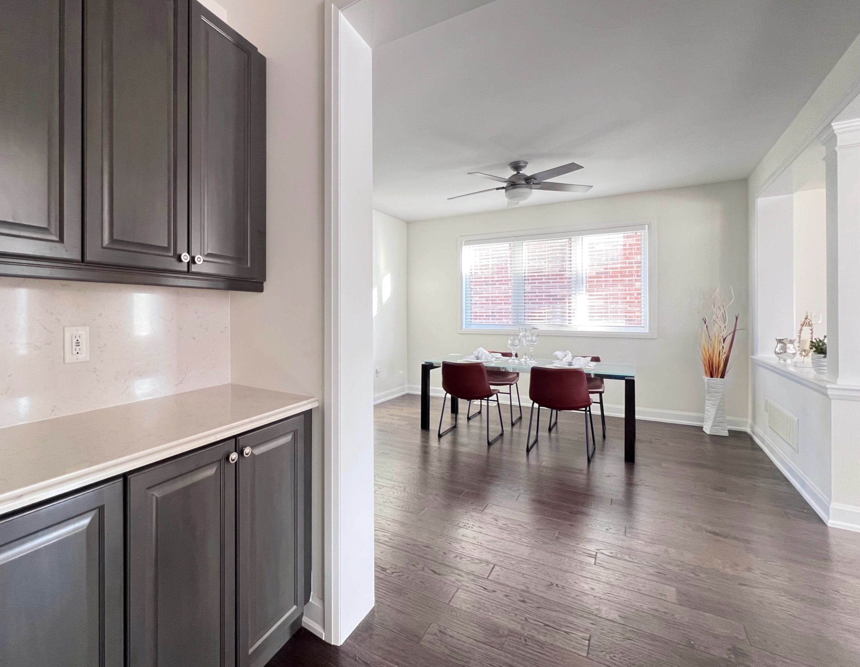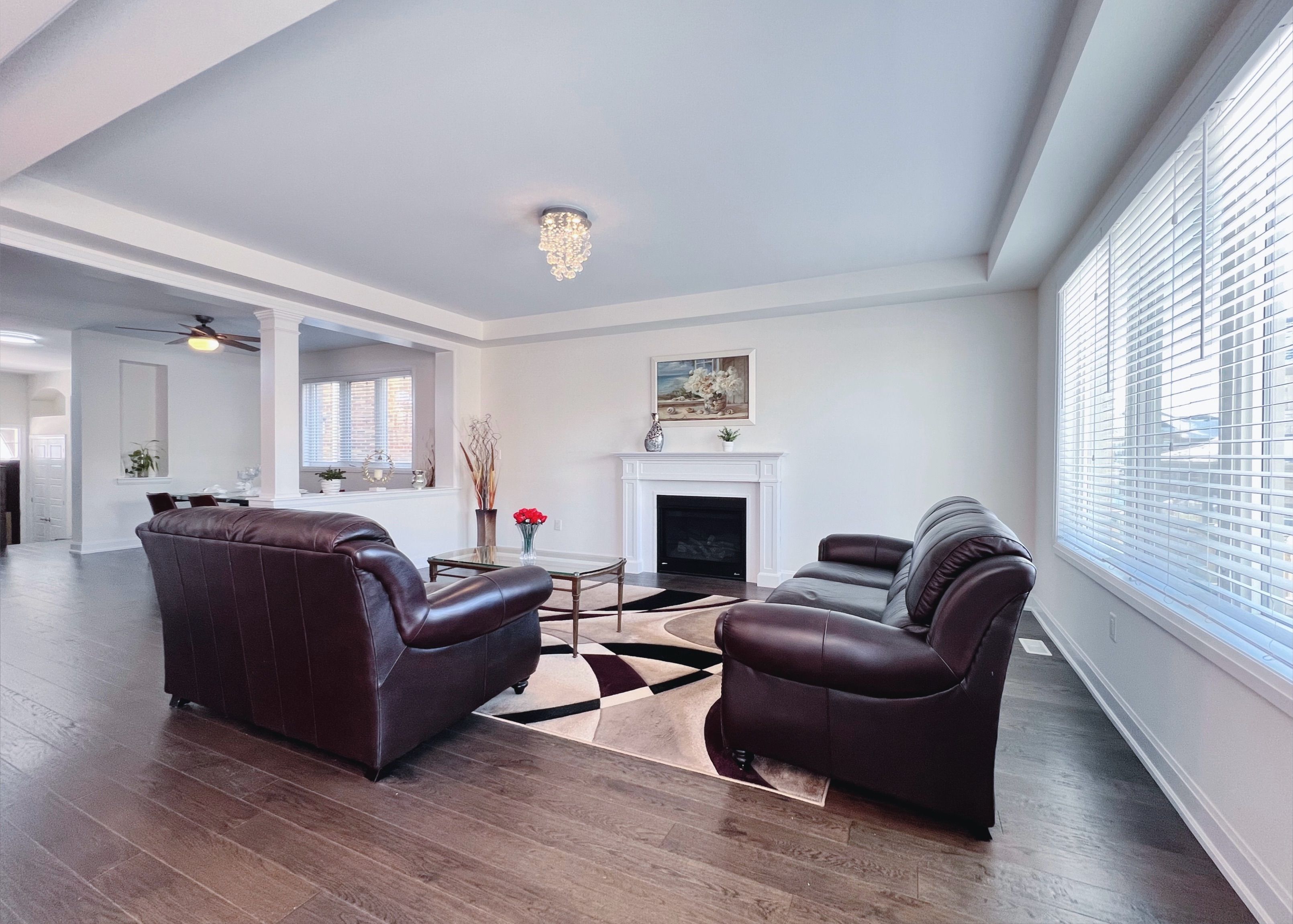 • Great Room features 15-ft ceilings and abundant natural light.
