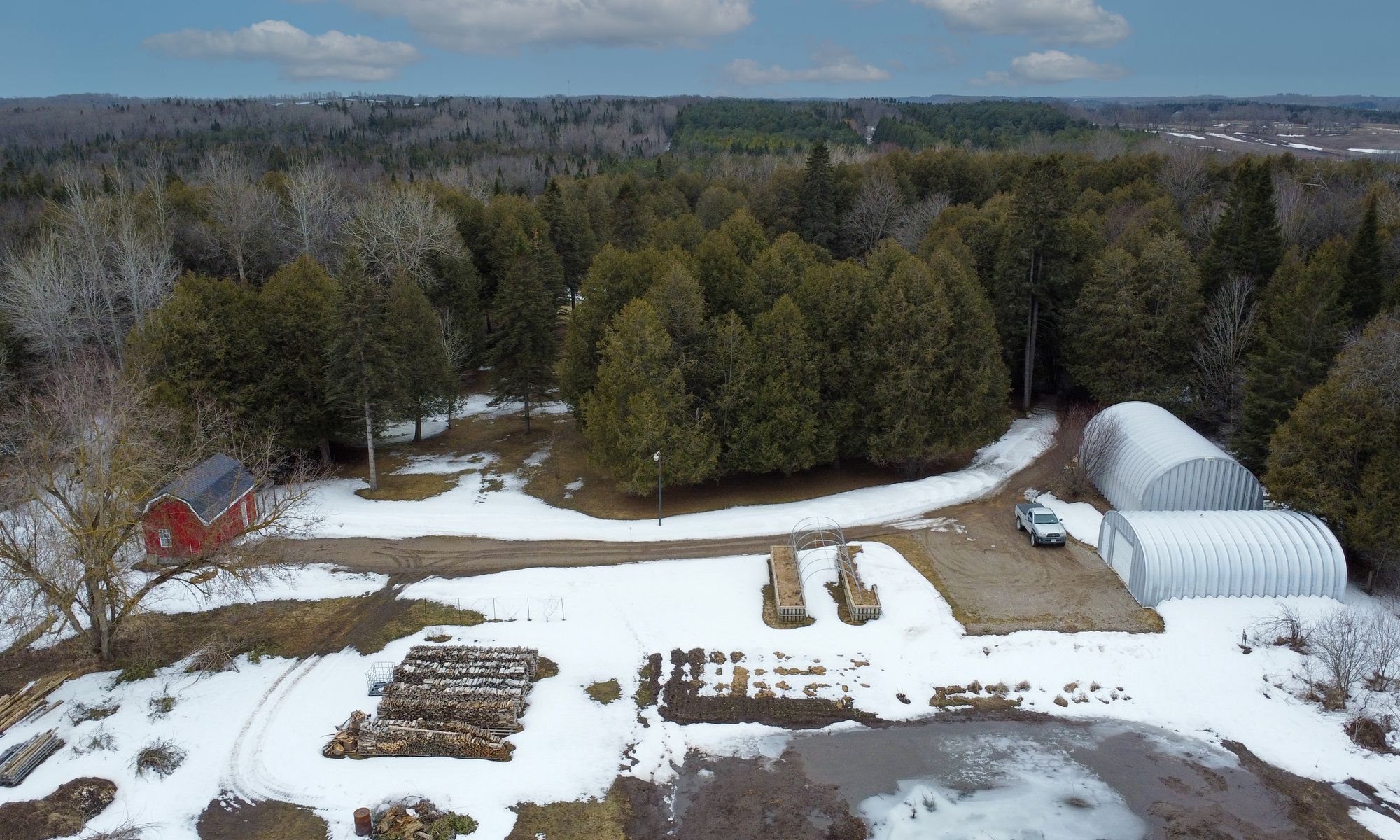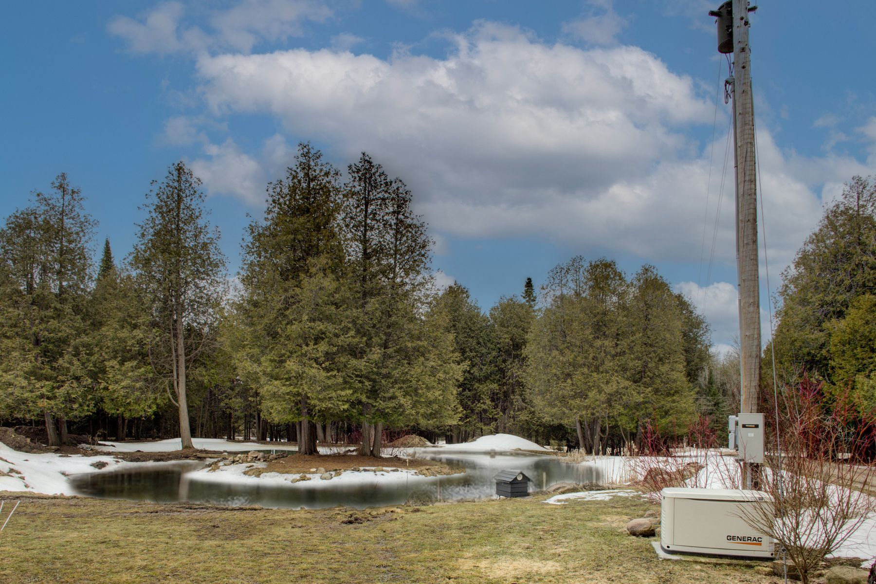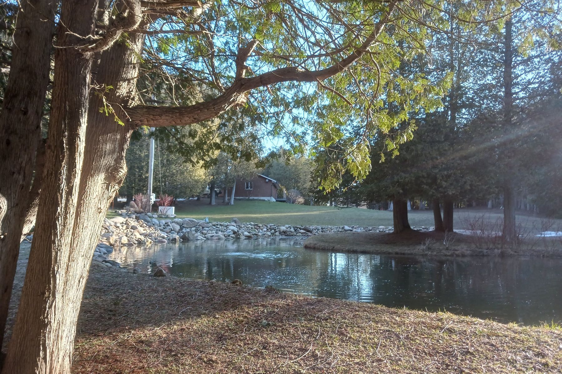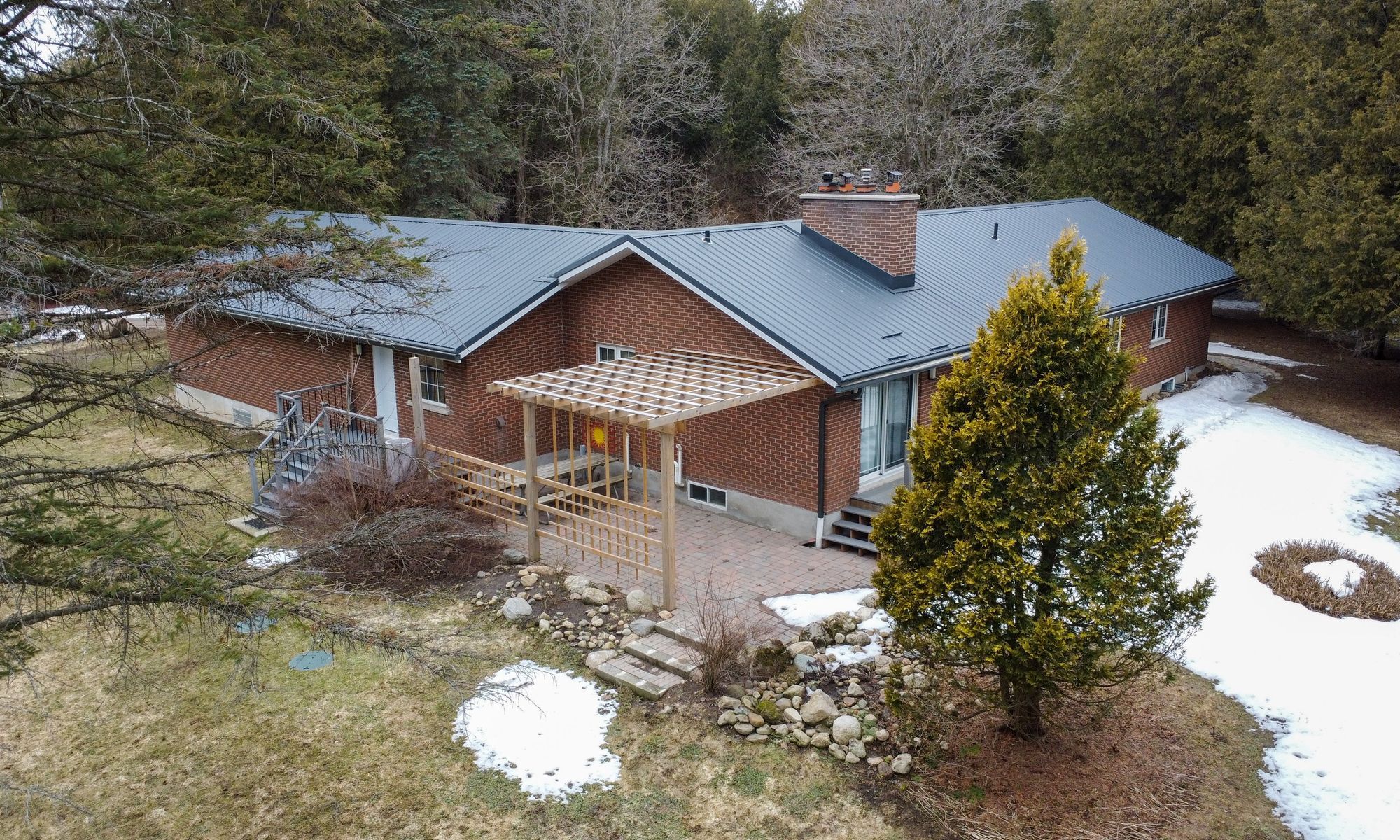 Welcome home! This secluded bungalow on a 4. 76 acre property offers you the peace and tranquility that you've been looking for! Relax next to the pond stocked with rainbow trout, nestled in the forest of this beautifully stunning property. Once indoors, you can enjoy the produce from your garden and perhaps even some eggs from the chickens in your barn. Then you can unwind in your spacious, well-lit home. An open and functional kitchen, featuring plenty of cupboard and counter space, is the heart of the home, adjacent to the living room and dining room, making entertaining a breeze. The carpet-free floors accent the main level gas fireplace. Downstairs, the woodburning fireplace in the rec room is great for additional comfort. If you love working with your hands, you'll really appreciate the basement workshop, not to mention the heated and insulated 24' x 40' workshop next to the 24' x 32' drive-in shed, plus two large raised vegetable gardens. Recent upgrades include: steel roof (2025), barn roof (2025), septic tank (2019), sewage ejector (2019), water pressure tank, iron filter, uv sterilizing system & softener (2019), well upgrade (2019), reverse osmosis system (2020), 200 amp electric panel (2019), 20kw backup generator (2020), f/a furnace and ducting (2020), basement in-floor heating (2020), eavestroughs, gutters and leaf guards (2020), flooring and stairs (2019-2024), kitchen cabinets and quartz countertop (2020), dishwasher (2020), wood fireplace and chimney liner (wett certified) (2019), sprayed-in basement insulation (2019), pond aerator (2025). Fiber optic cable installed from road to house. You don't want to miss out on this rare opportunity. Come see for yourself!