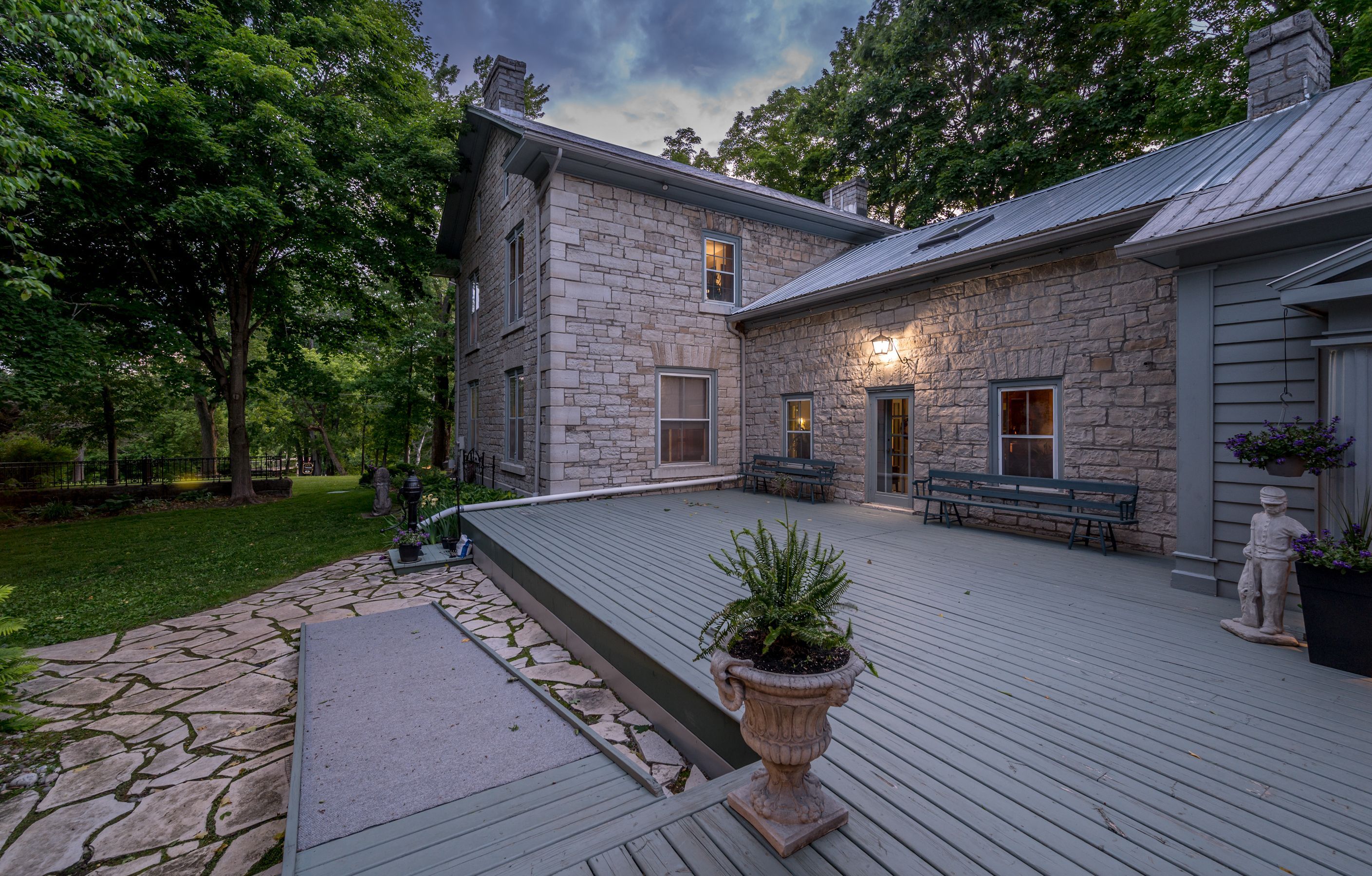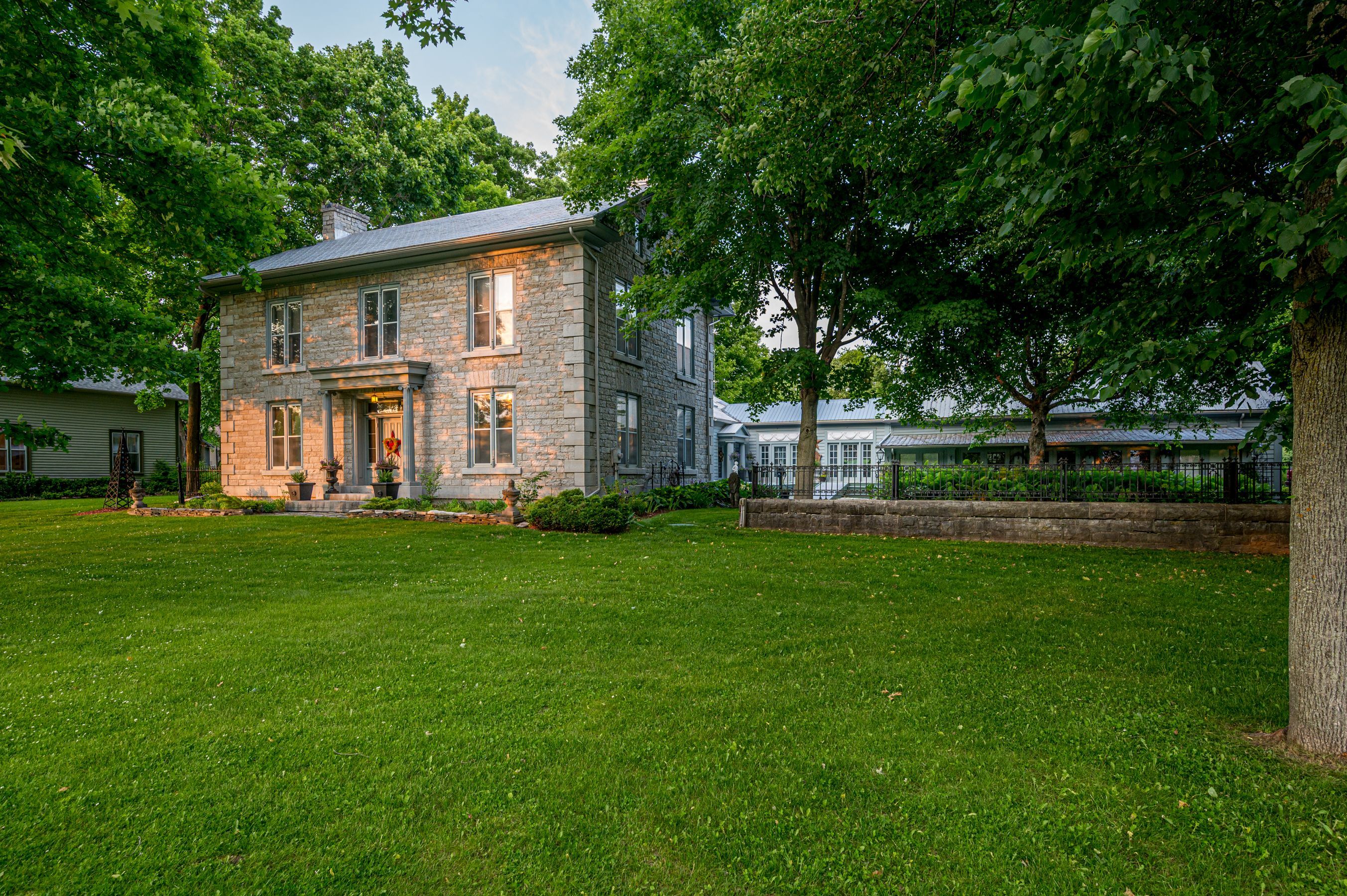 Welcome to warnerheim, a breathtaking limestone estate built in 1855. This stunning 5-bedroom, 6-bath home sits on over 3 acres of land across from the tranquil napanee river, complete with soothing waterfalls. With over 7,000 square feet of living space, this exquisite residence offers mesmerizing views, accessible features, soaring ceilings, wide plank floors, and elegant architectural details. The main level features two gracious bedrooms, each with a 3-piece ensuite, a stylish powder room, and a convenient laundry room. Discover the cozy fireplace in the living room, which opens onto the deck, while the sunroom beckons you to relax. The massive great room features a cathedral ceiling, hand-hewn beams, a fireplace, and skylights, inspiring moments of joy and creativity. The main floor is further enhanced by a screened-in porch featuring a hot tub, as well as a spacious eat-in kitchen that includes a walk-in pantry and access to the deck. Additionally, there is a sitting room that connects to the carriage house, which contains an office, inside entry to a two-bay garage with a loft, and an enclosed porch. Upstairs, three additional bedrooms await, including the primary suite featuring a 2-piece bath. Two full bathrooms, a finished living space with a 2-piece bath, and a bonus room that opens to the family room below complete this remarkable level. The outdoor space is nothing short of inspiring, featuring a large deck, perennial gardens, limestone walkways, mature trees, and expansive areas for play and exploration. Located just a 20-minute drive to kingston or napanee, this property truly embodies peace and serenity. Included in the sale is the property at 310 colebrook rd, a detached 2-storey home that presents the perfect opportunity for a guest house awaiting restoration. The unmatched elegance and tranquility of this estate make it a rare gem that must be experienced to be believed!