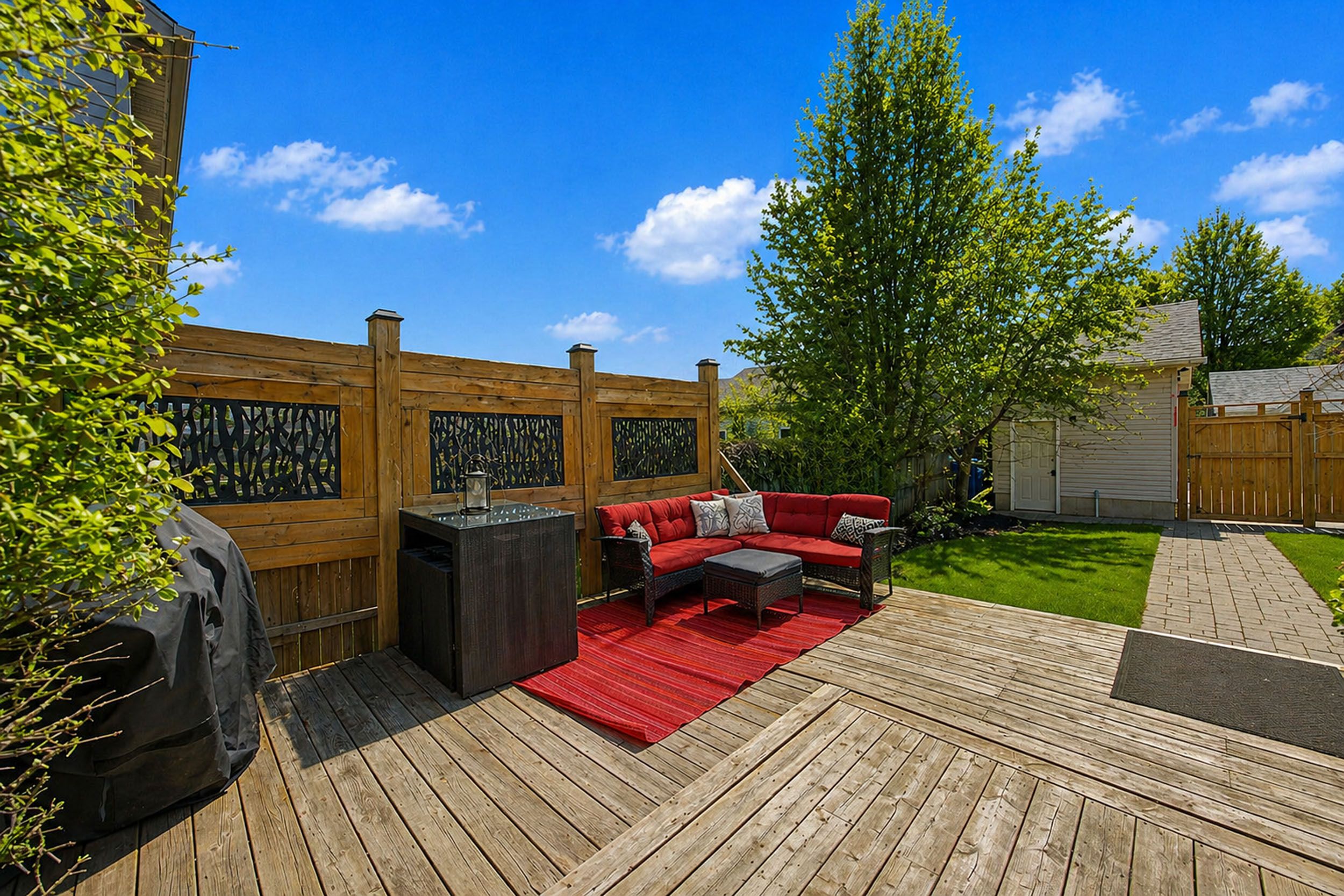 • Private backyard oasis with a deck, garden shed, and gas BBQ hookup.