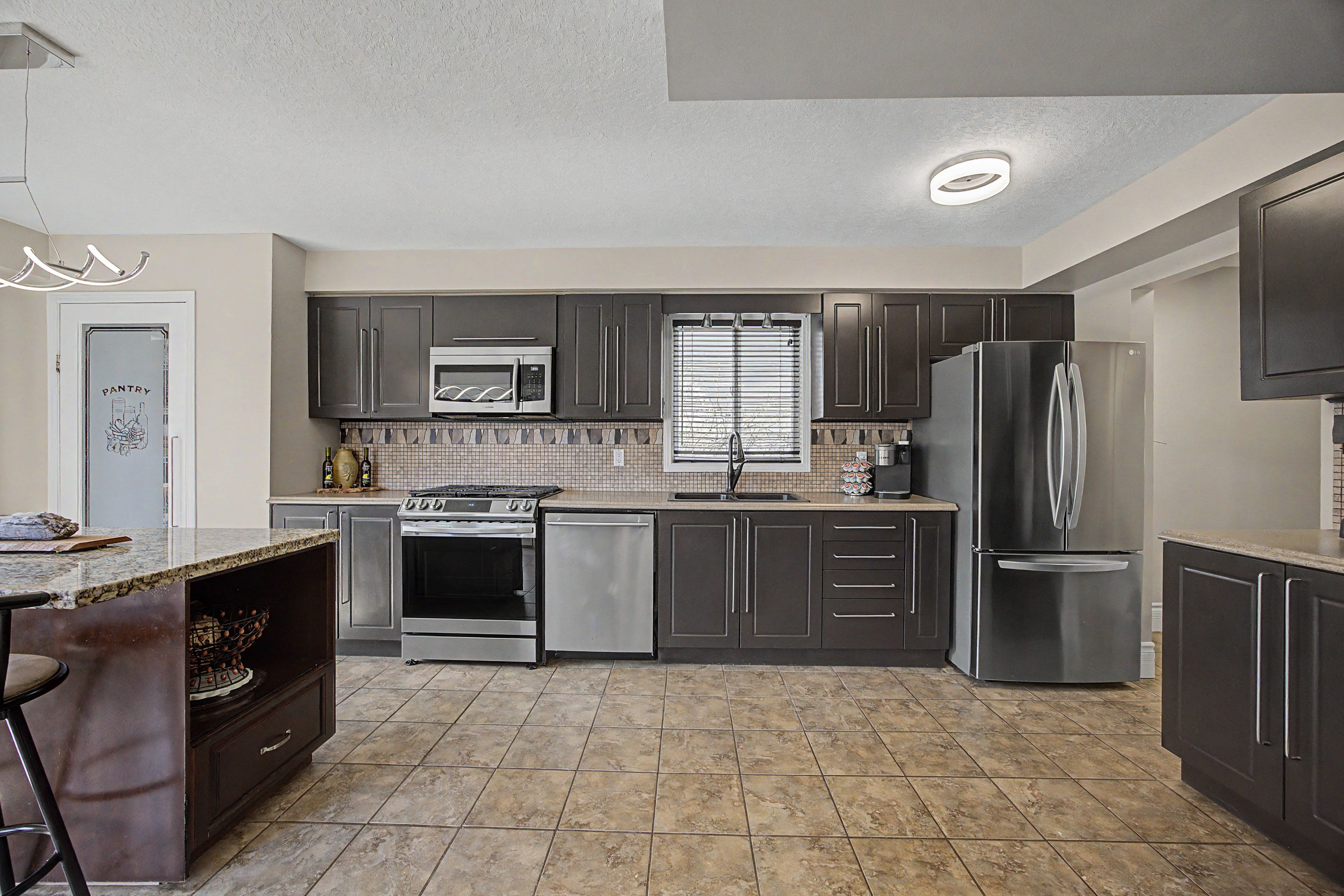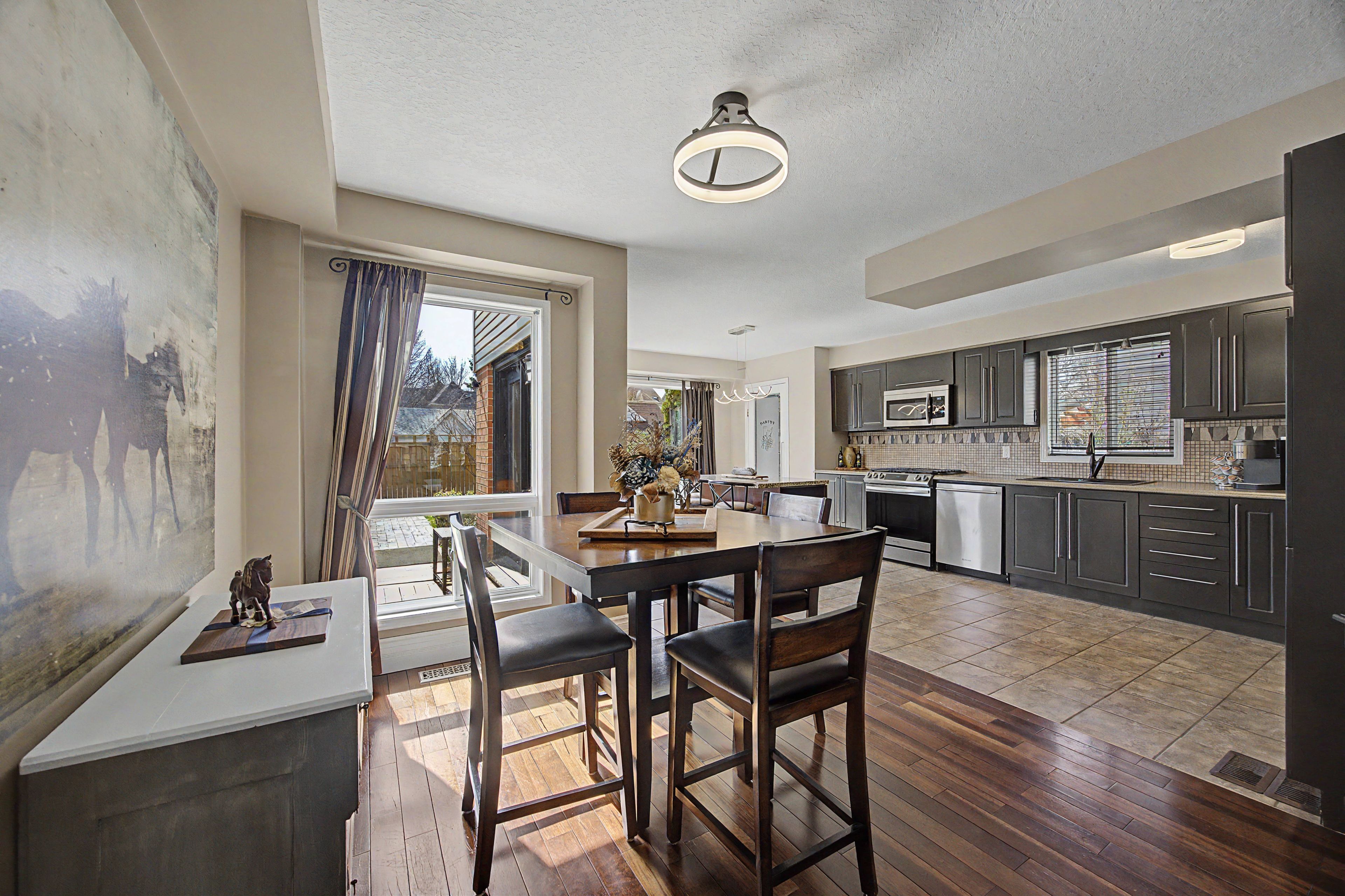A rare blend of family comfort, walkable convenience, and everyday ease. Welcome to this beautifully maintained 3-bedroom, 4-bathroom detached home in the heart of orangeville, offering the perfect blend of comfort, functionality, and lifestyle. Complete with a detached single-car garage with a new insulated garage door with built in camera and parking for up to four vehicles, this property is ideal for families and commuters alike. Step inside to discover a bright and inviting layout featuring hardwood floors throughout the main and upper levels. The spacious kitchen with tile flooring is designed for both everyday living and entertaining, showcasing a centre island with a granite countertop, ample cabinetry, and a large pantry. A convenient walkout leads to your large private backyard oasis-fully fenced and complete with a deck, garden shed, and a natural gas bbq hookup, perfect for relaxing or hosting with ease. Upstairs, the generous primary suite offers a peaceful retreat with a 3-piece ensuite and his-and-her closets. Two additional well-sized bedrooms provide plenty of space for family or guests. The finished basement adds valuable living space, featuring laminate flooring, a 2-piece bathroom, and a versatile area ideal for a family room and home office, or potential fourth bedroom. Enjoy quiet mornings on the charming front porch or unwind in your private backyard. Ideally located within walking distance to public schools, parks, alder recreation centre, shopping, and dining, with easy access for commuters. A fantastic opportunity to own a move-in ready home in a highly desirable, family-friendly neighbourhood of montgomery village.