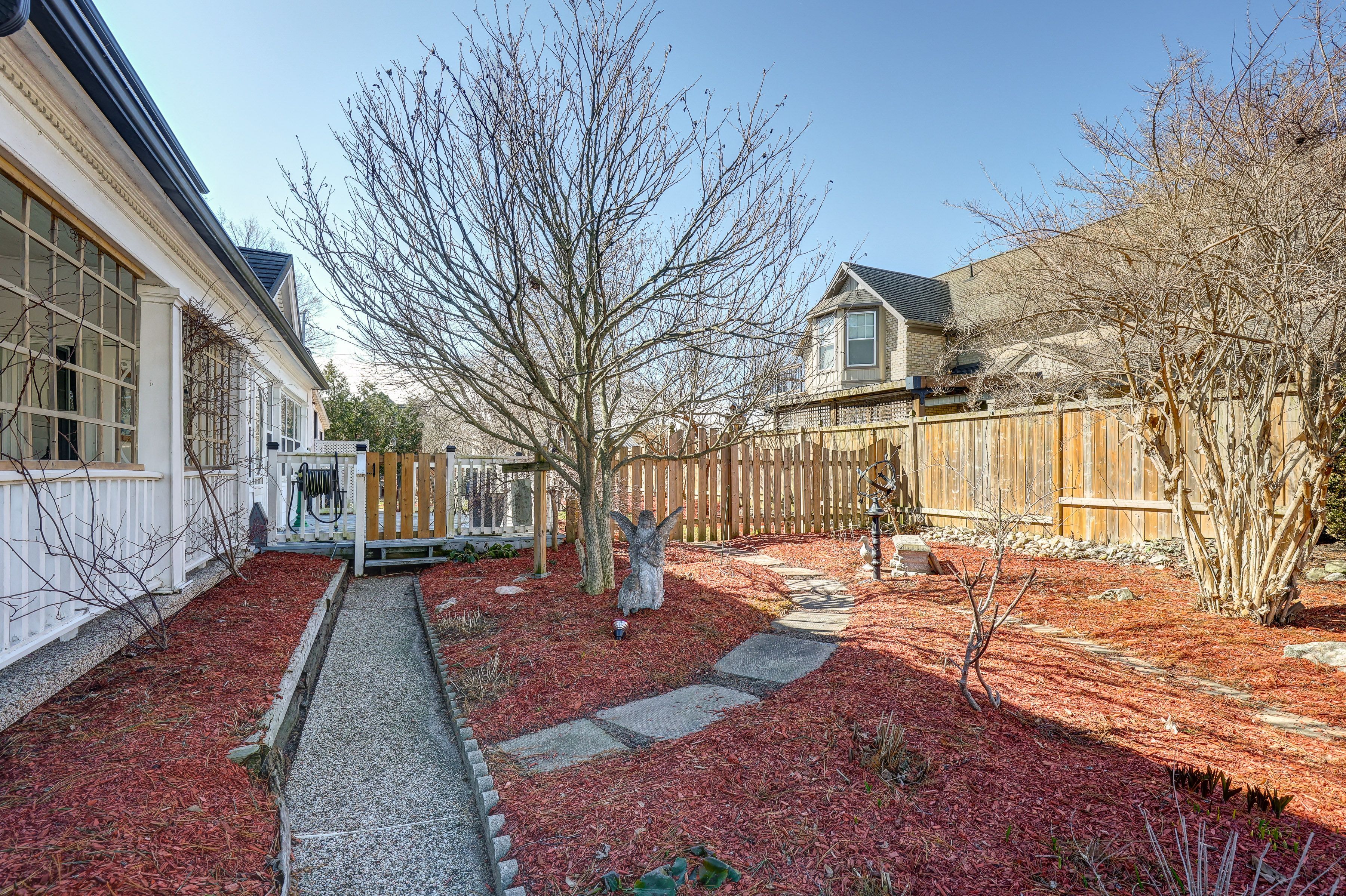 • Large private yard with garden sheds and oversized two-car garage.