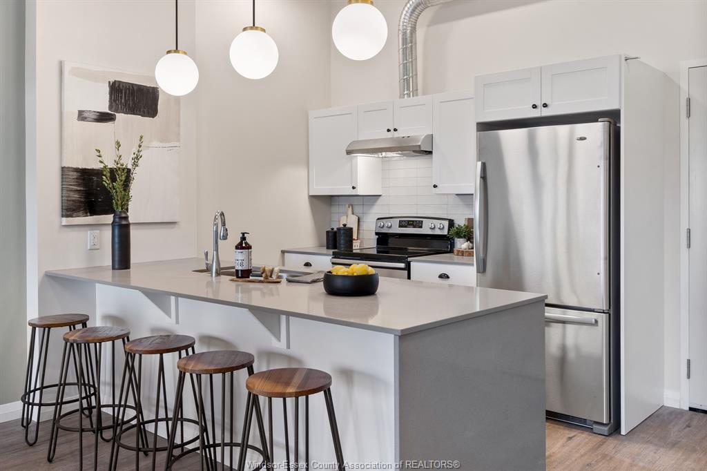 Second floor with a bright and sunny southern exposure and a view of the golf course! Your carefree lifestyle awaits. Luxury can be affordable too! 2 year new extraordinary loft apartments. The quality of construction will certainly impress. Block and concrete construction helps afford peaceful living. Popular forest glade community. Close to new battery plant and amazon warehouse. Short walk to bus stop, park, arena, pickleball courts and schools. Grocer 2 km away. Inside enjoy countless upgrades. Bright, open concept interior. Soaring 12 ft ceilings and massive windows. Gorgeous designer kitchen. Quartz counters. Luxury vinyl and ceramic floors. Sizable in suite laundry with sink. Upgraded lighting. 5 new appliances. Private balcony. Advanced security features. Individual forced air gas heating, c/air & hrv units. Ev charging. New bbq pavilion patio. 1 designated parking included at no charge. Rent does not include utilities. 1 yr min term with first and last. Note: photos are of our staged identical layout model unit. Paint colours vary. Call now!