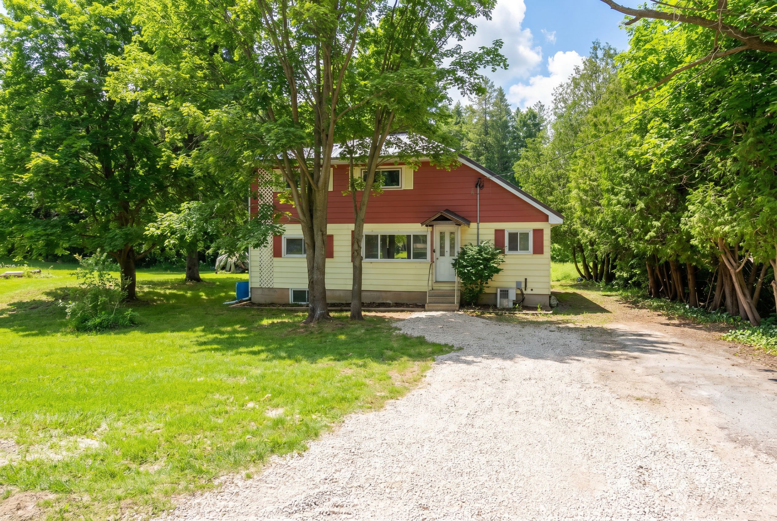 Welcome to this spacious 5-bedroom, 1. 5-bathroom home offering approximately 1,921 sq ft of above ground living space, set on a large, private lot in the charming community of williamsford. With plenty of room inside and out, this property presents an excellent opportunity for families, investors, or contractors looking to renovate and make this their own. The existing layout includes a large kitchen with maple cabinetry and island, separate dining area, living room with wood-burning fireplace, and a lower-level family room with a second wood fireplace. The home offers a generous footprint with multiple living areas, providing flexibility for redesign and modernization. Additional features include some updated windows, a durable steel roof, and a propane furnace with central air conditioning . Step outside to enjoy the fairly private, tree-lined lot with ample space for gardening, outdoor activities, or future enhancements. Offering great value and endless potential, this property is ready for its next chapter.