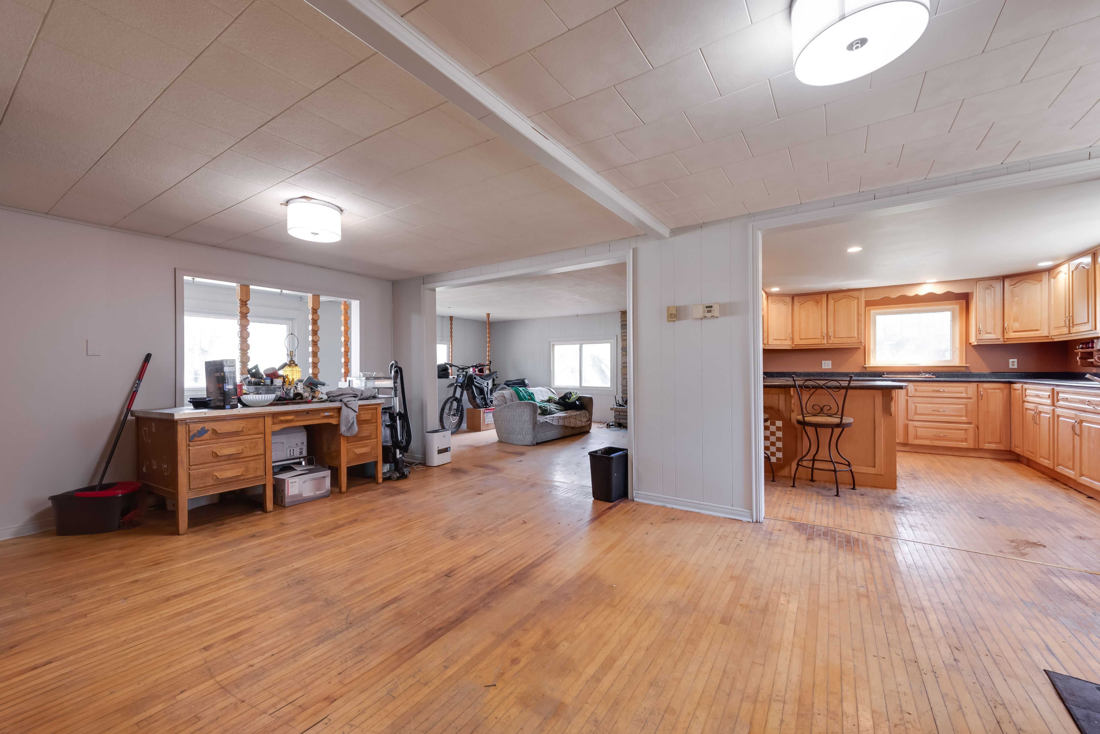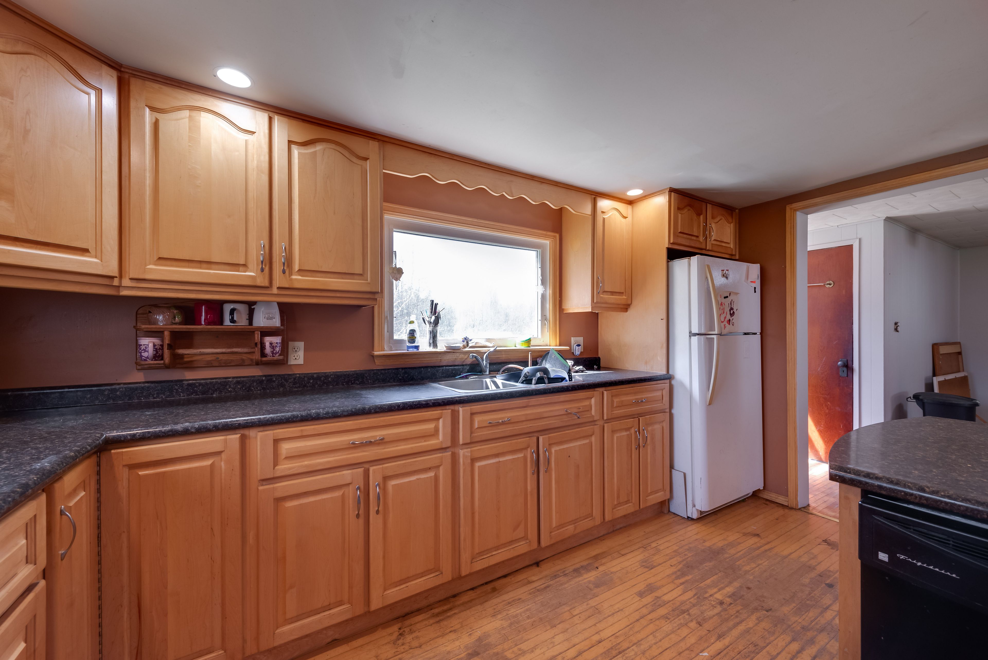 • Large kitchen with maple cabinetry and an island for cooking enthusiasts.