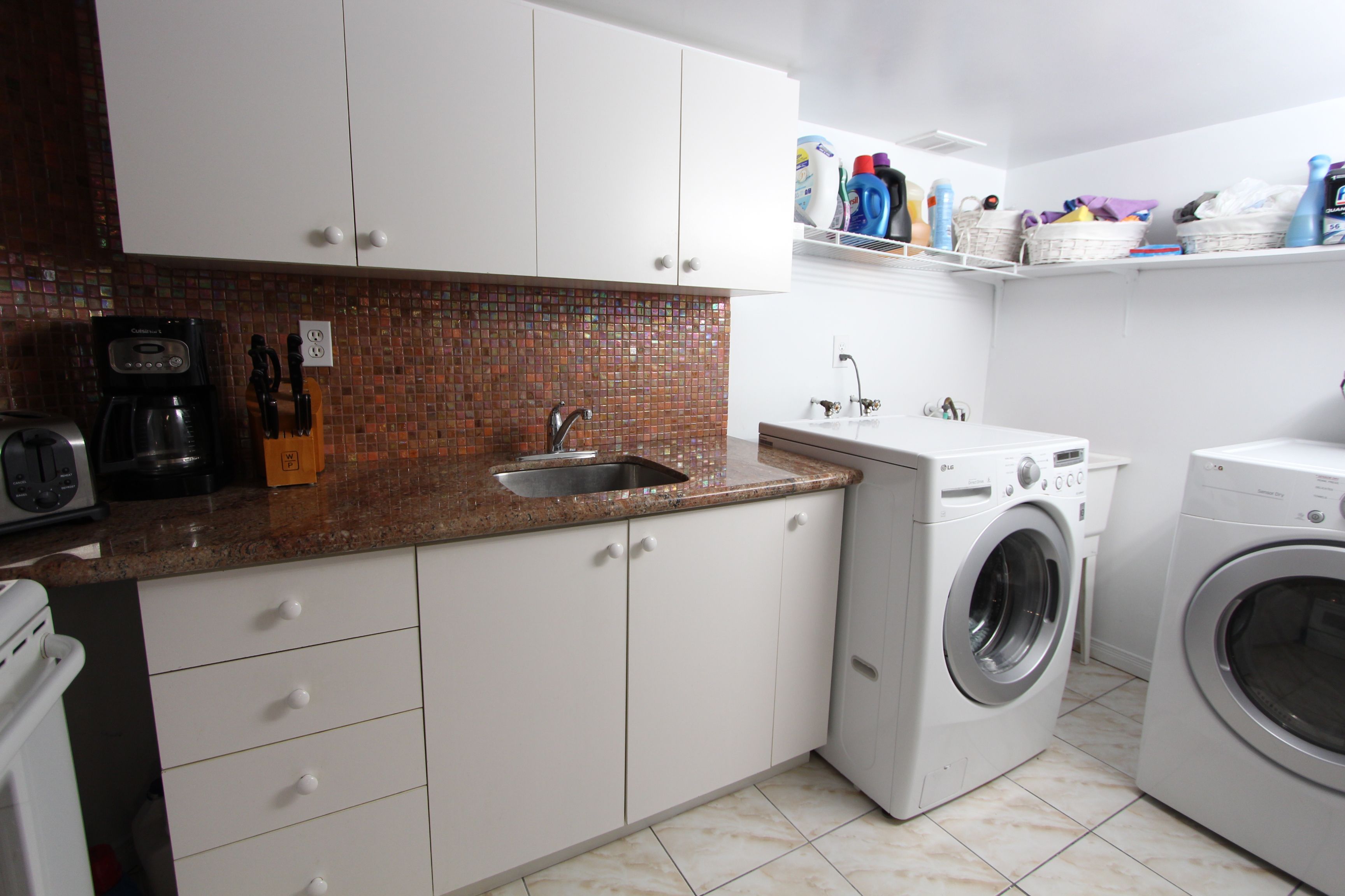 • Finished basement with kitchenette and extra storage for convenience.