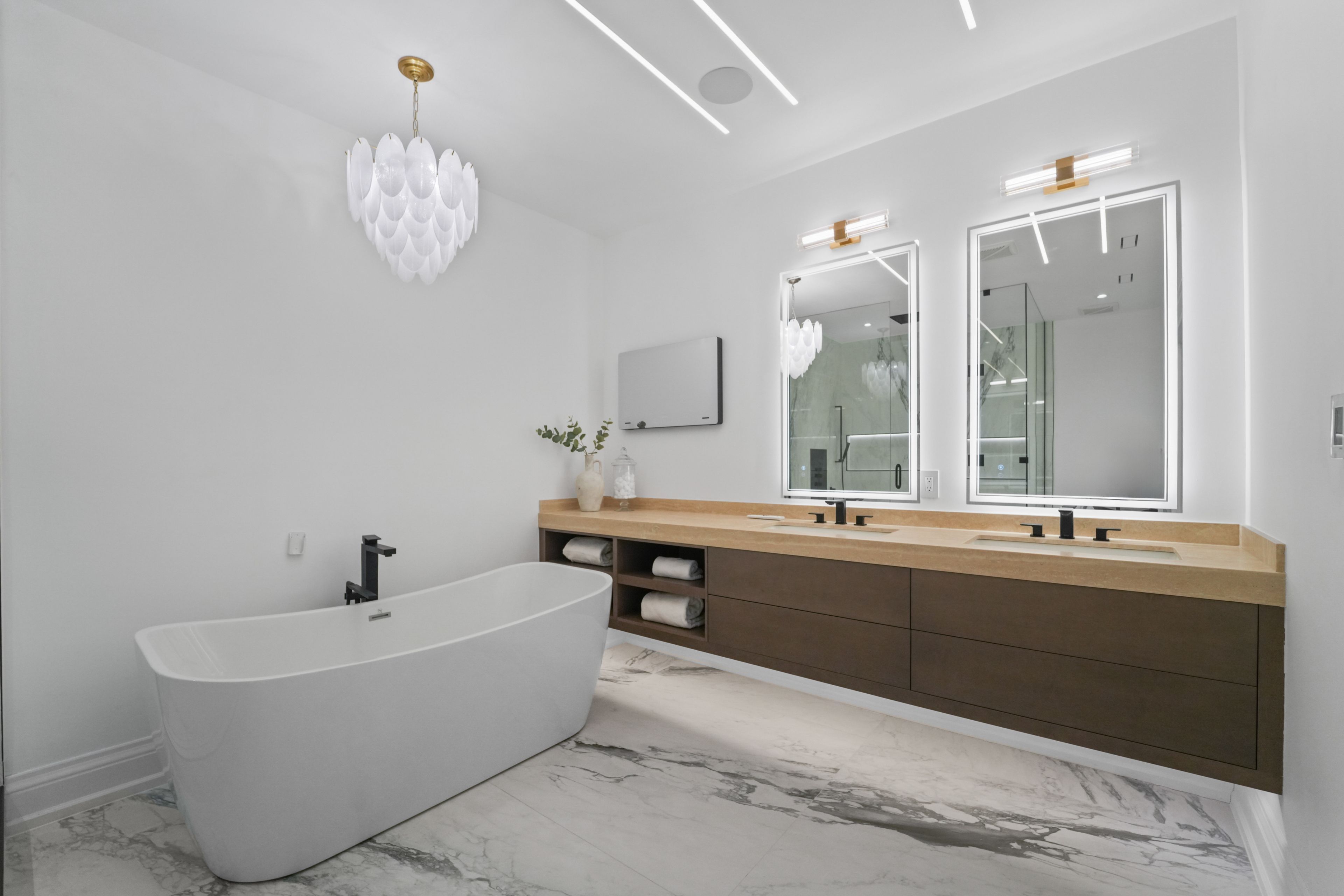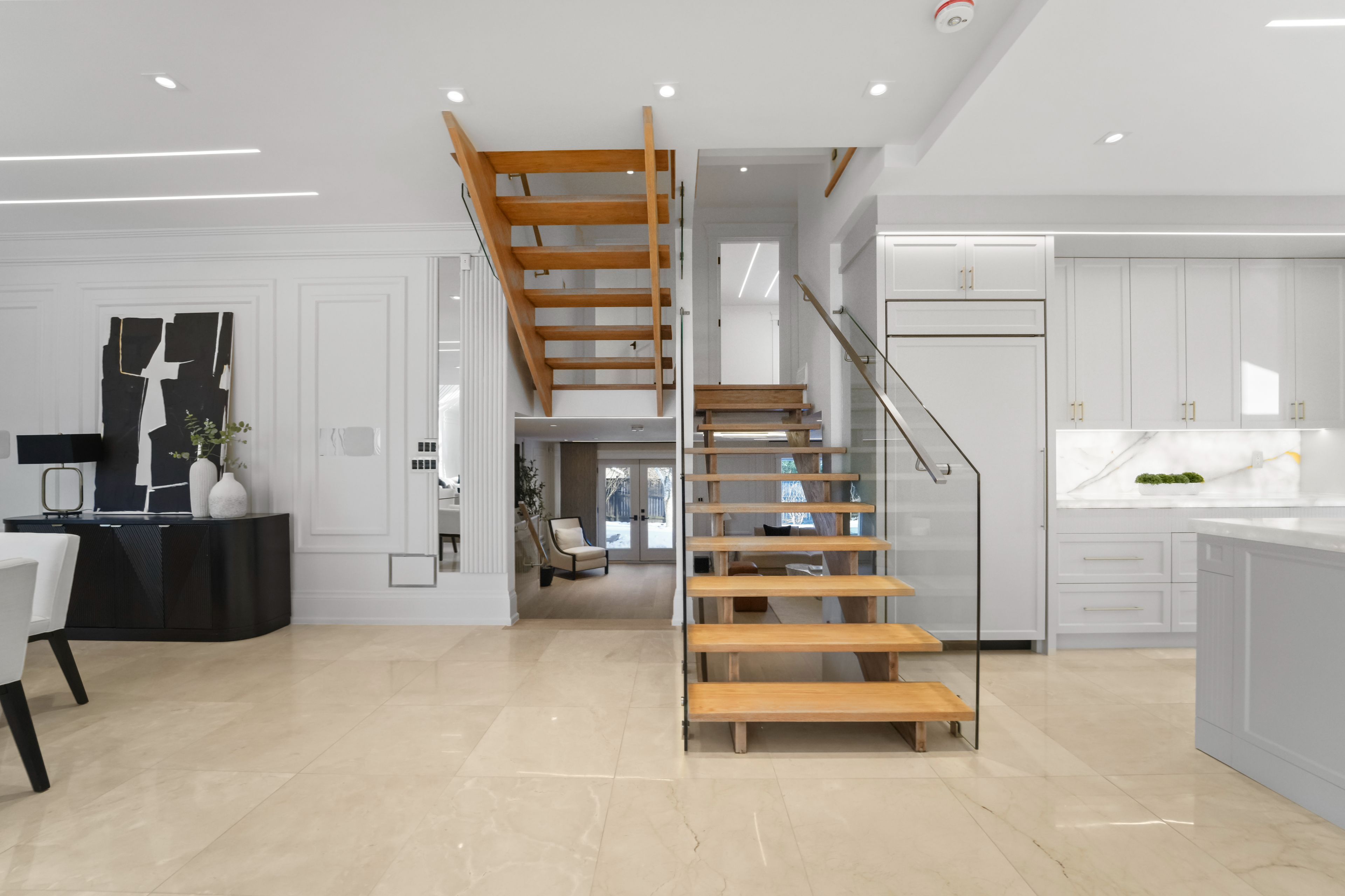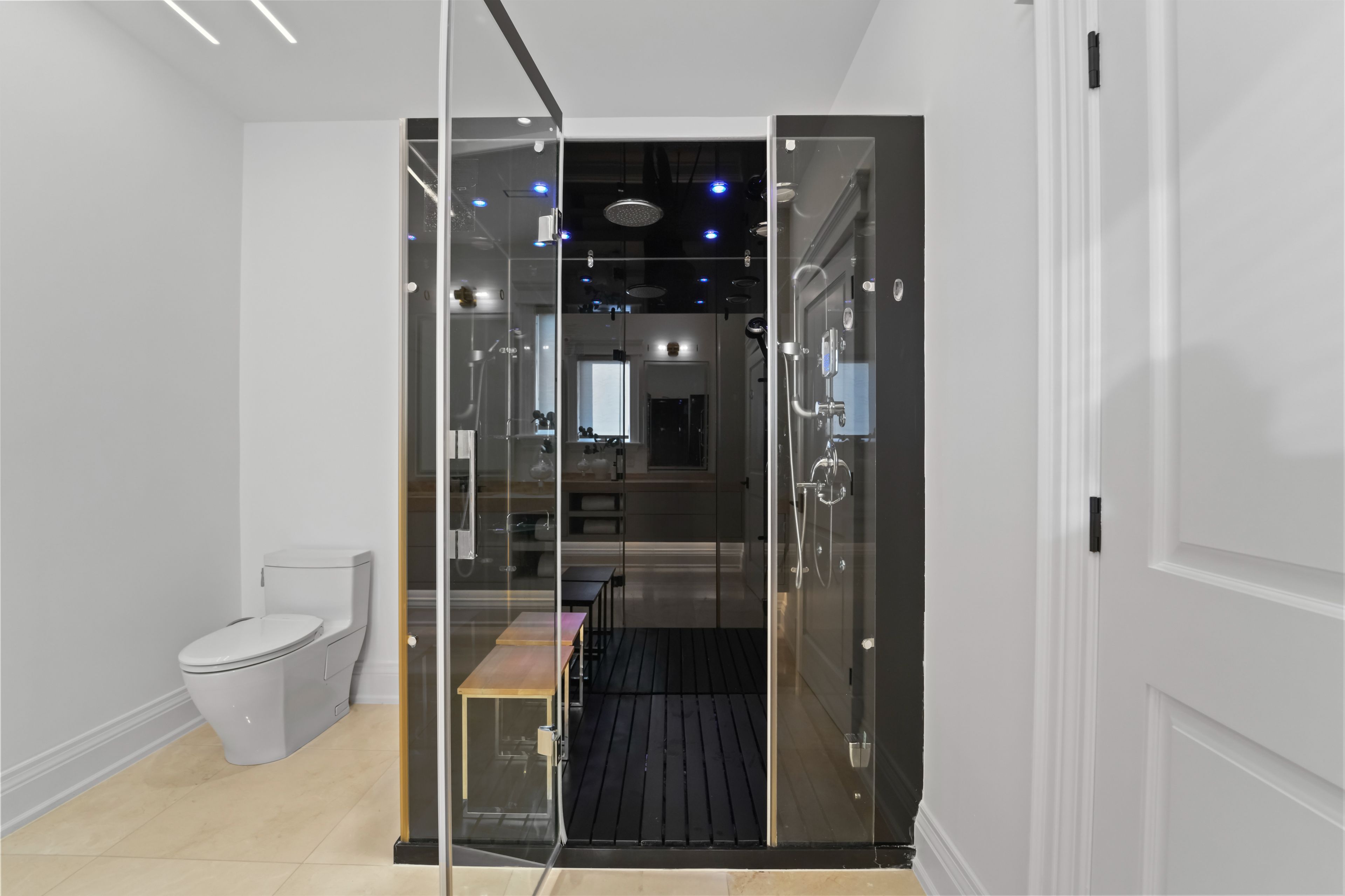 Positioned along south oakville's most prestigious lakeshore corridor on a deep 177-ft lot, this extraordinary custom residence offers over 6,500 sf of refined living space where craftsmanship and materiality take precedence. The main level unfolds from the moment you enter w/ immediate architectural impact: natural crema marfil marble floors w/ underfoot heating, soaring cathedral ceilings, gallery-style wainscoting, and statement chandeliers throughout. The chef's kitchen is a showpiece w/ backlit onyx marble surfaces, a sub-zero fridge & freezer, full miele suite, and an oversized centre island w/ direct walkout to the deck. A designer powder room in matching onyx w/ a smart toilet completes the level. Four bedroom suites plus a versatile office convertible to a 5th bedroom offer luxurious accommodation. Each boasting custom-fitted walk-in closets and private ensuites; two upper ensuites feature heated floors. The third-level primary retreat rivals a five-star hotel w/ illuminated boutique dressing room and spa-inspired 5pc ensuite featuring a freestanding soaker tub, travertine marble vanities, and heated porcelain floors. The lower level offers a family room w/ handcrafted fluted travertine marble gas fireplace, custom media wall, and walkout to a private backyard w/ stone patio & a pergola. A circular driveway accommodates 12+ vehicles for hosting friends and family. Control4 governs 28 individually controlled ceiling speakers, motorized shades, dual-zone hvac, all lighting, tvs, and security. Built w/ teflon-coated aluminum roofing, 5" spray foam insulation throughout all exterior walls and roof sheathing, copper and brass plumbing made of the highest quality, and hrv ventilation for exceptional year-round efficiency. Steps to the bustling bronte village waterfront with an endless variety of exciting new dining and boutiques options, top-ranked schools, parks, easy access to downtown toronto & gta via bronte go or the qew.