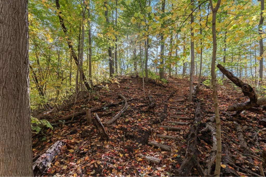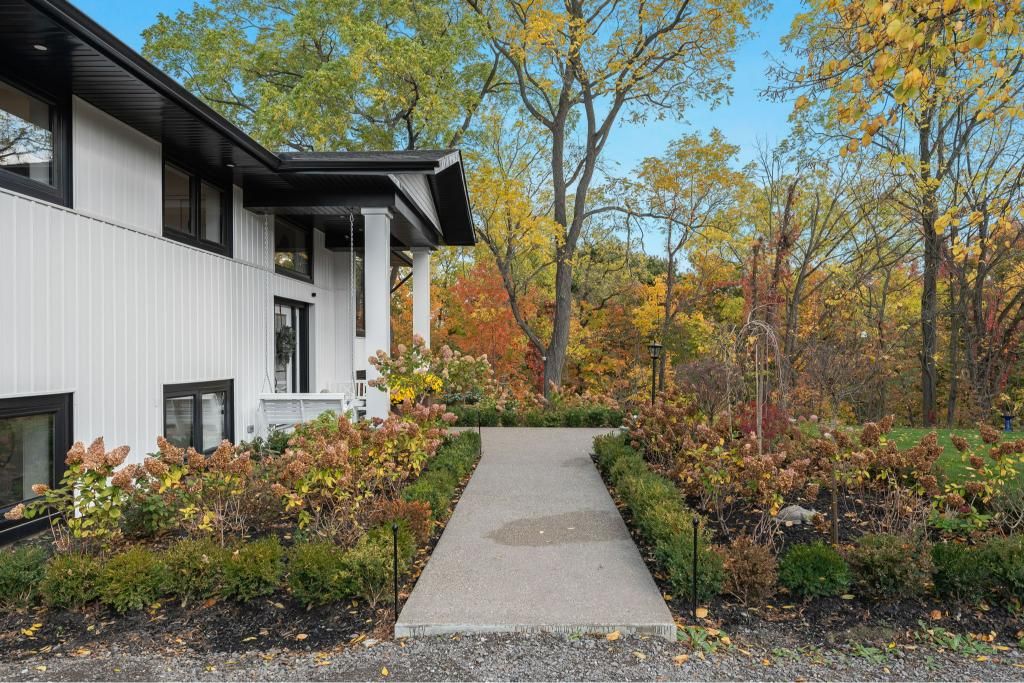 • Spacious 5-acre ravine lot with private trails and stunning views.