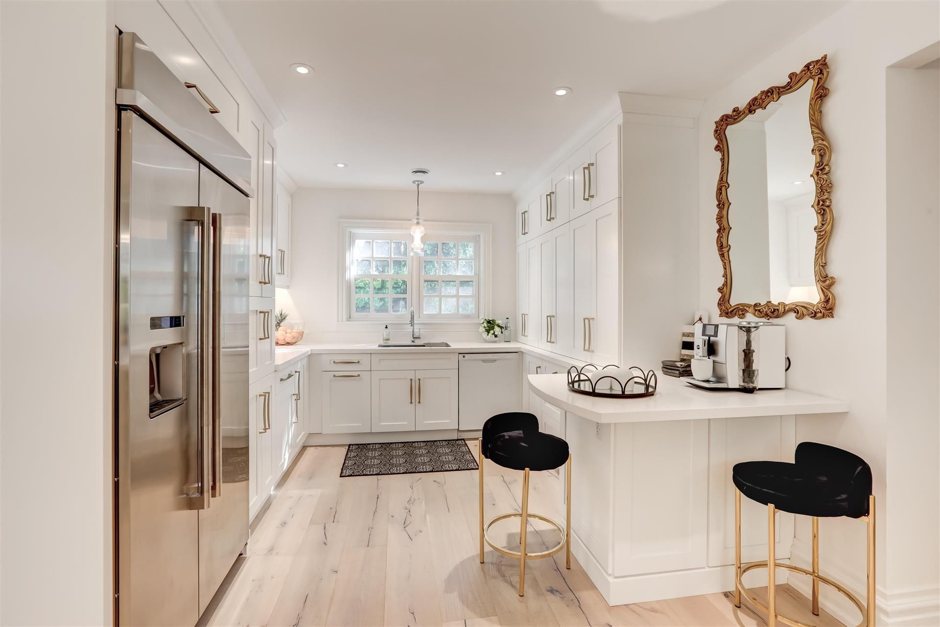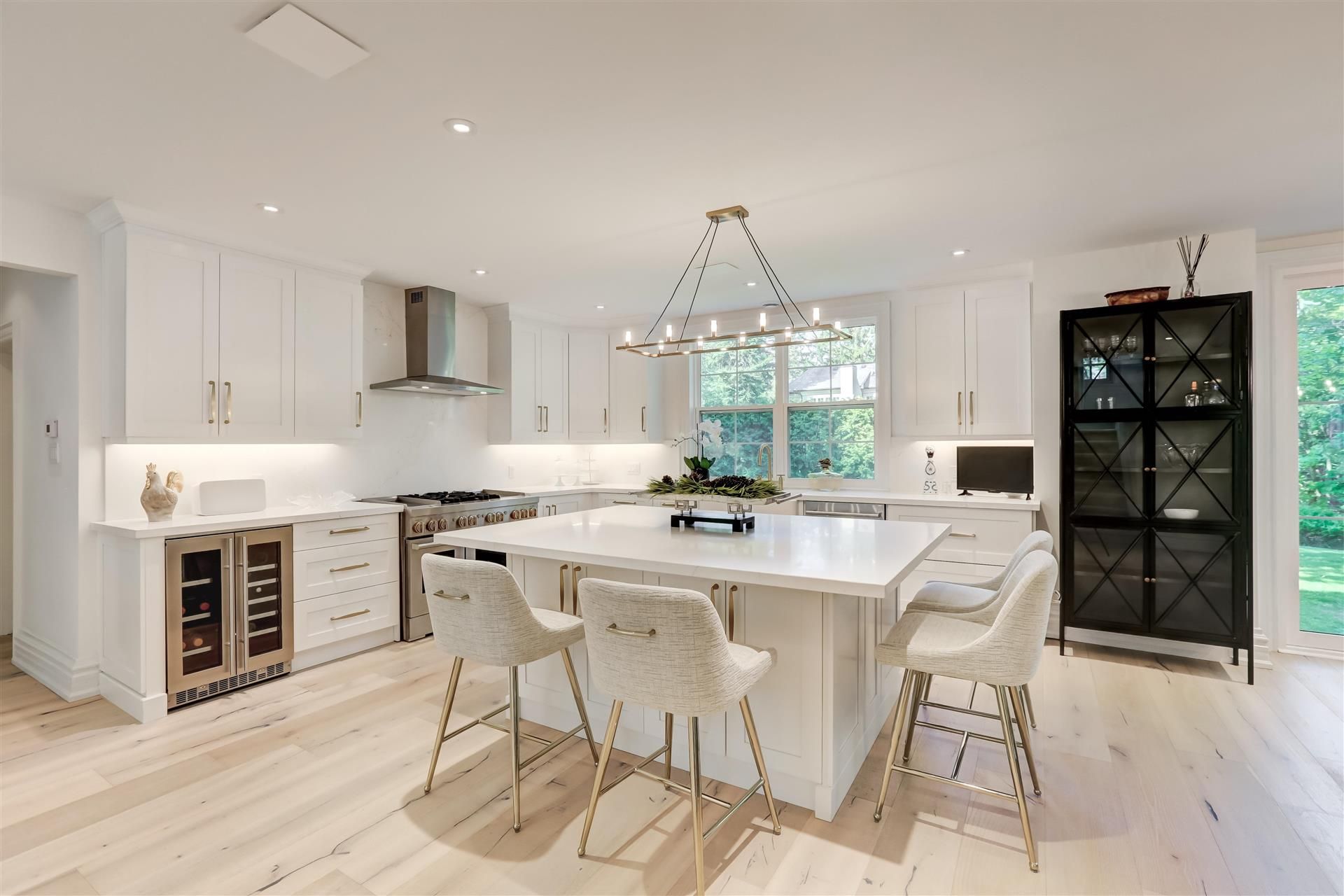 • Impressive brand-new designer kitchen with ample storage and a coffee bar.