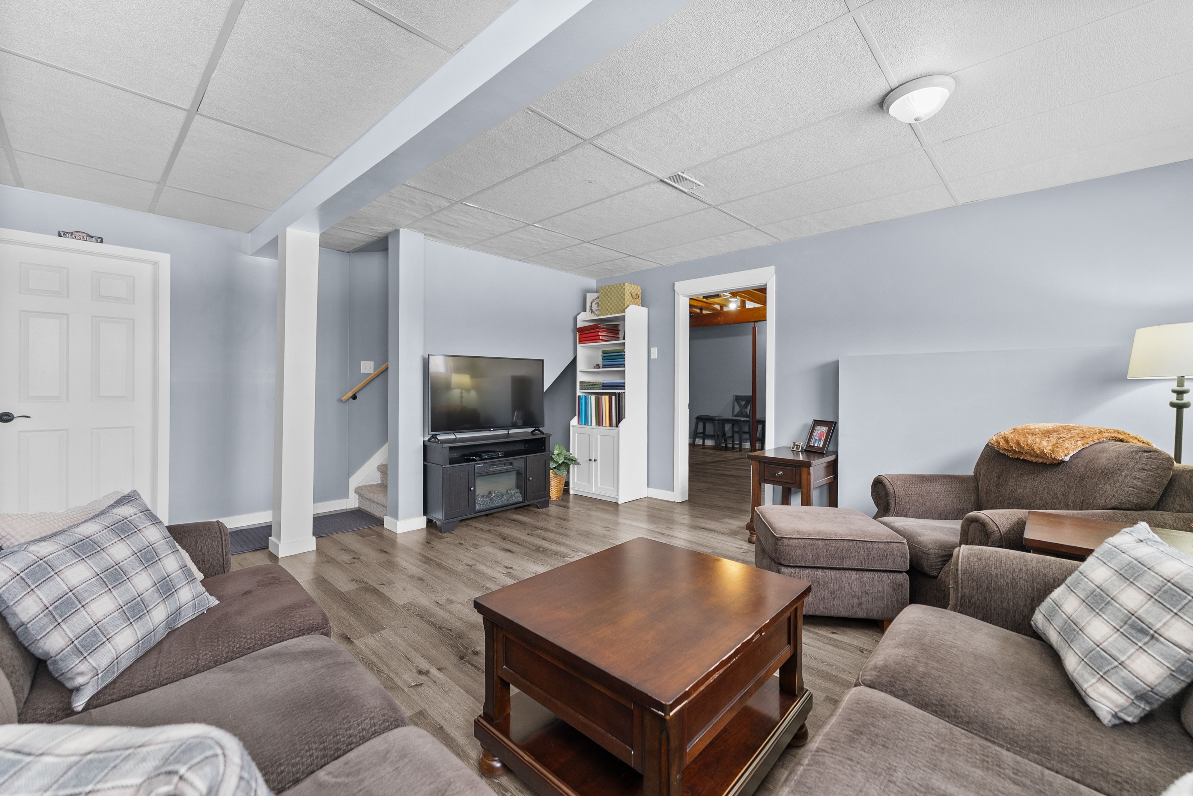 • Finished basement offers versatility for recreation or hobbies.