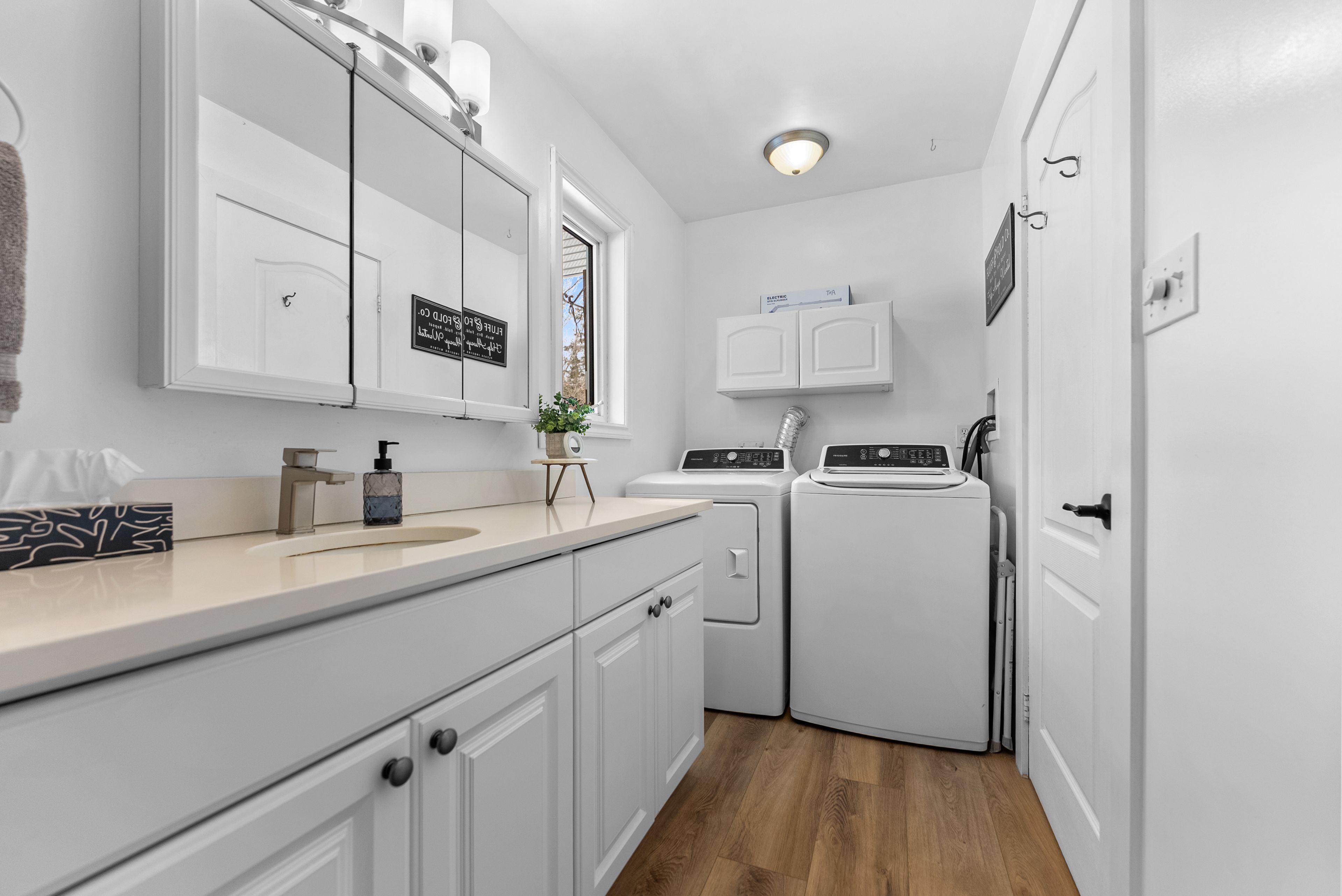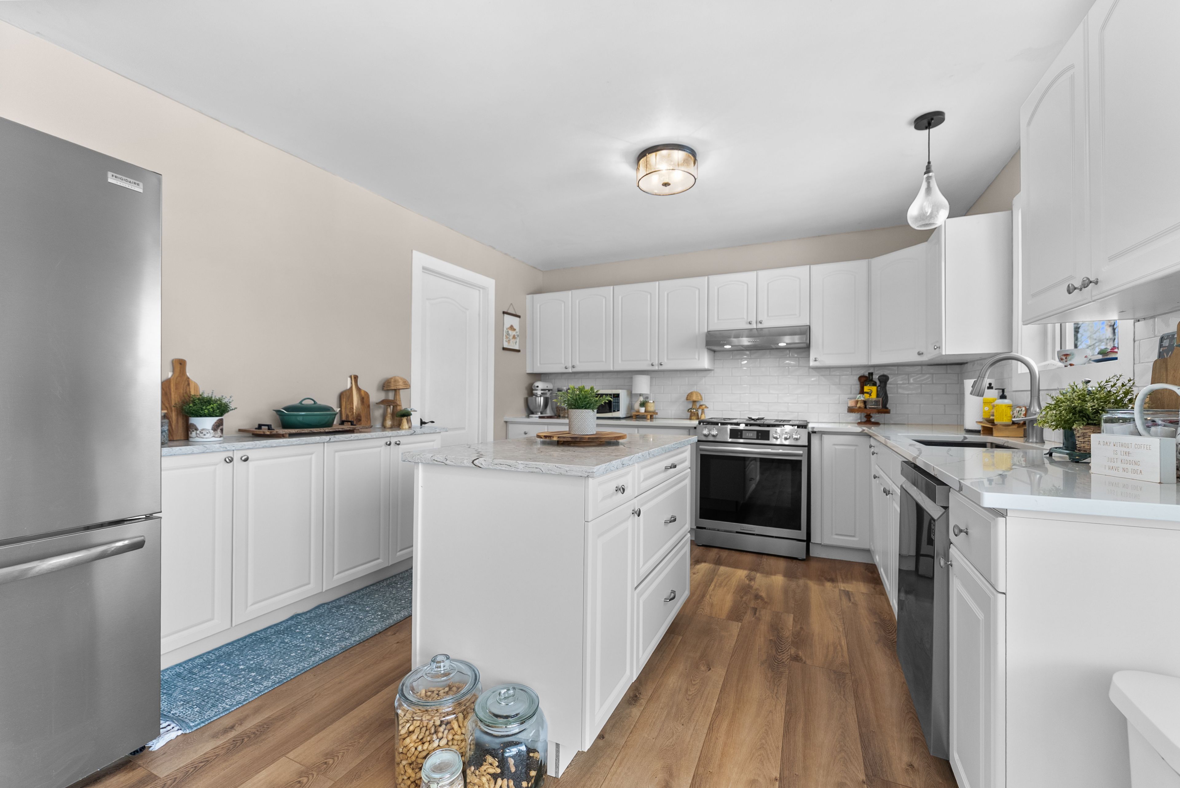 • Remodeled kitchen with quartz countertops and open concept design.