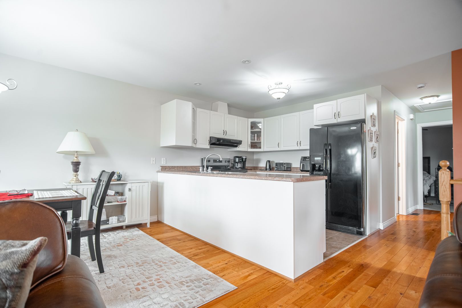 • Bright open concept main floor with hardwood flooring and modern kitchen.