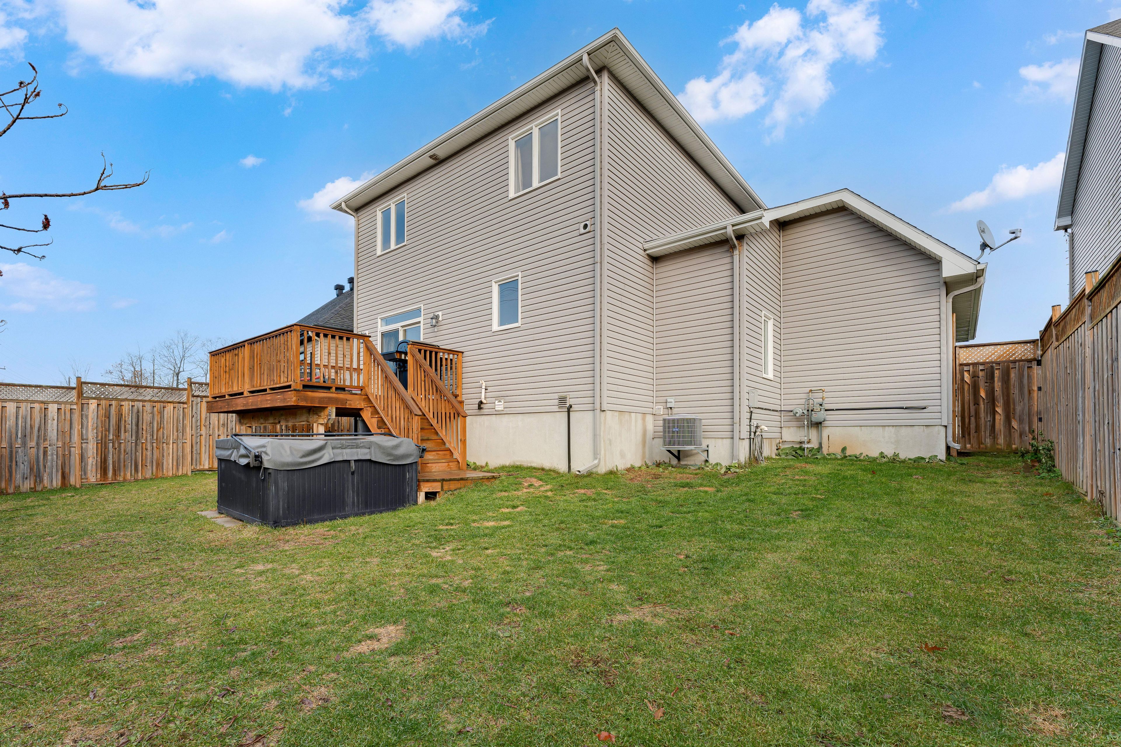 Welcome to 317 nalon road. This beautiful home sits on a quiet cul-de-sac in the west end of gananoque, steps from the walking trails and gananoque river, and short commute to the 401. This 2 storey home offers an inviting main floor with 9 foot ceilings, hardwood flooring, open concept kitchen and dining area, main floor laundry, spacious living room, inside entry to the garage, and patio door to the back deck. The second floor provides 2 spare bedrooms, a main 4 pc bathroom, primary suite with walk-in-closet and 4 pc en-suite bathroom with a soaker tub and separate shower. The basement is a blank canvas and ready to be finished into a spare bedroom, half bath, and rec-room. The yard is fully fenced and offers privacy and plenty of room for activities. Take a short drive to nalon road and see what this home has to offer.