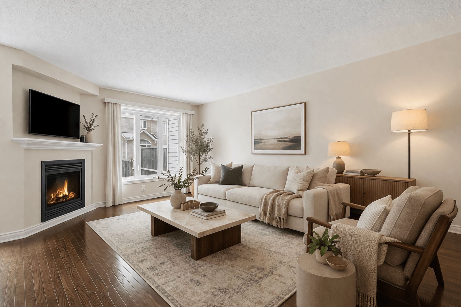 Welcome to 317 ravenswood way, a beautifully maintained 3-bedroom, 3-bathroom townhouse nestled in the sought-after avalon community of orléans. This inviting home offers the perfect blend of comfort, functionality, and style. Ideal for first-time buyers, down-sizers, or growing families alike. Step inside to discover a warm and welcoming main floor featuring elegant hardwood flooring and a spacious layout designed for everyday living and entertaining. The bright kitchen offers ample cabinetry and workspace, creating a functional and inviting area for cooking and gathering, while the living room, complete with a cozy natural gas fireplace provides the perfect spot to relax and unwind. The fully finished basement provides exceptional additional living space which is perfect for family movie nights, a children's playroom, home office, or gym. With plenty of natural light, it feels like a true extension of the home. Upstairs, you'll find three generously sized bedrooms and two full bathrooms, including a private ensuite in the primary retreat. The primary bedroom also features a great sized walk-in closet, offering both comfort and convenience. Pride of ownership is evident throughout this well cared for home, making it truly move-in ready. Located close to excellent schools, shopping, public transit, and parks, this is a fantastic opportunity to settle into a vibrant, family-friendly neighbourhood. A wonderful place to call home! Don't miss your chance to make it yours! Photos virtually staged.