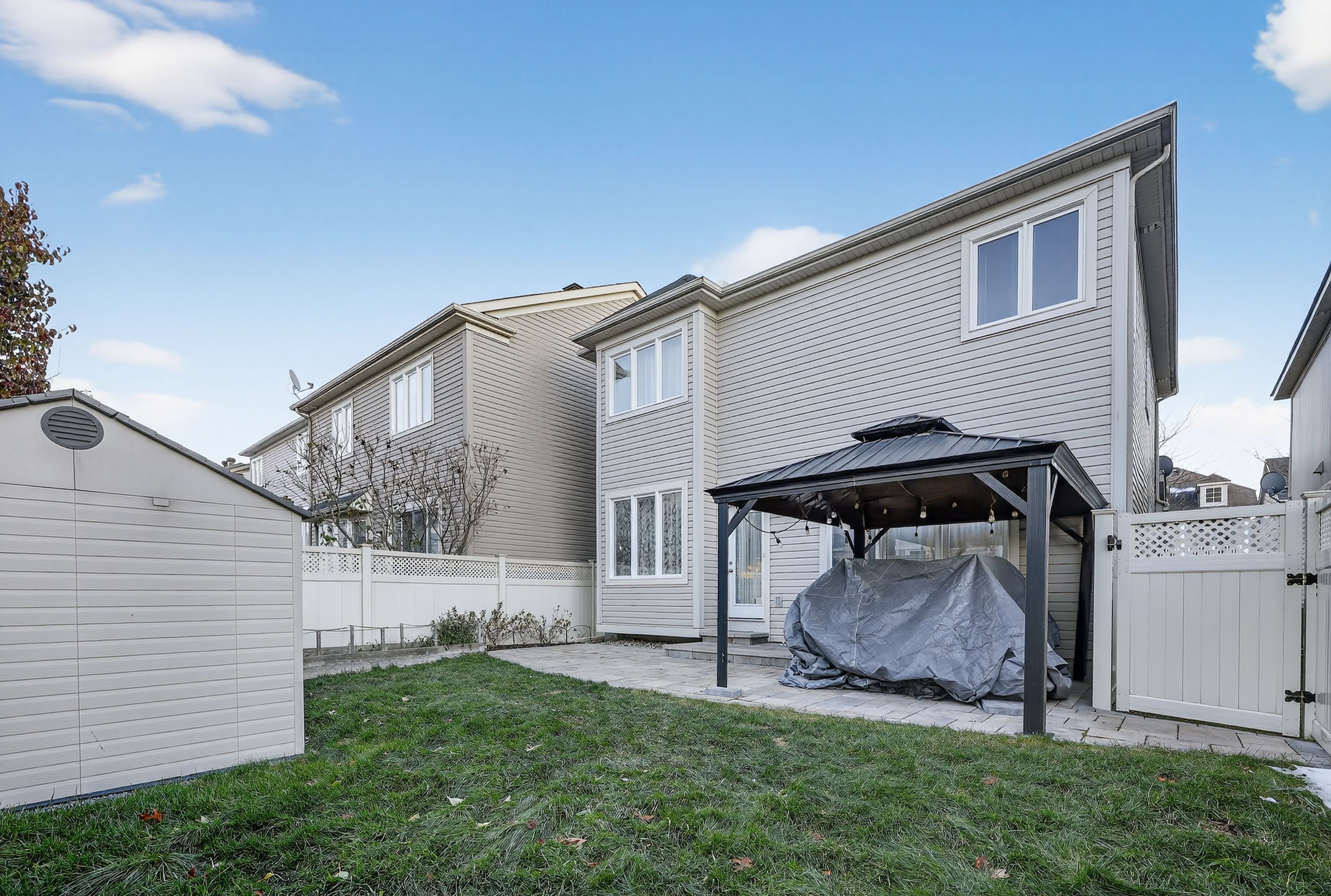 Welcome to this exceptionally functional and well-designed home, where every square foot is thoughtfully utilized - no wasted space, just smart and comfortable living! Located on a quiet, low-traffic street, this home offers peace and privacy, while being steps away from everything you need. This energy star certified home (approx 20% more efficient than standard homes), features 9' ceilings, crown moulding on main and 2nd levels, open concept layout with a gas fireplace in the living room, 2nd floor laundry, sound-proofed upstairs bedrooms, upgraded kitchen w/ blue star gas stove, electrolux fridge, bosch dw, ancona hood fan, plus lg w/d and plenty of cupboard space. Primary ensuite has a roman tub & large shower; and there is a jack & jill bath for the kids. The stairs and 2nd level have high-grade carpet, with wood floors on the main level; central vac ready. The home comes with a finished basement (2023), w/ full bath (2024) & lots of storage (bsmt freezer included). Painted garage w/ pot lights, built-in shelves & new door spring/wiring (sept 2025). There is a spacious front porch and a backyard oasis w/ patio stones (2021), 15x8 shed, 10x12 steel gazebo w/ netting & winter cover, organic veggie garden, and vinyl fence (2013, lifetime warranty). Prime location & unmatched convenience - schools, oc transpo bus stop, minto rec centre (swimming, skating, gym), w. C. Levesque park/stonebridge trail (24+ acres of trails, playgrounds, sports fields), river run park (playground, gazebo, and outdoor skating rink in winter) are all within walking distance. Marketplace bus terminal and shopping/amenities within 5 min drive. The half moon bay community association hosts events year-round, including a christmas lights competition, easter egg hunt, the annual june community garage sale and halloween is a community affair! Whether you're raising a family, downsizing, or buying your first home, here you can truly settle in and thrive!