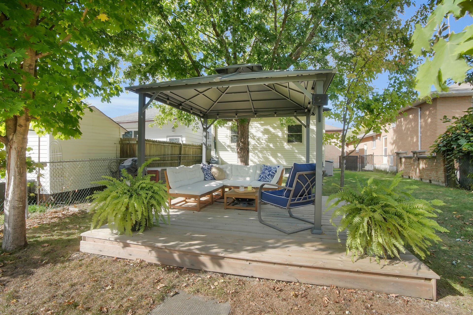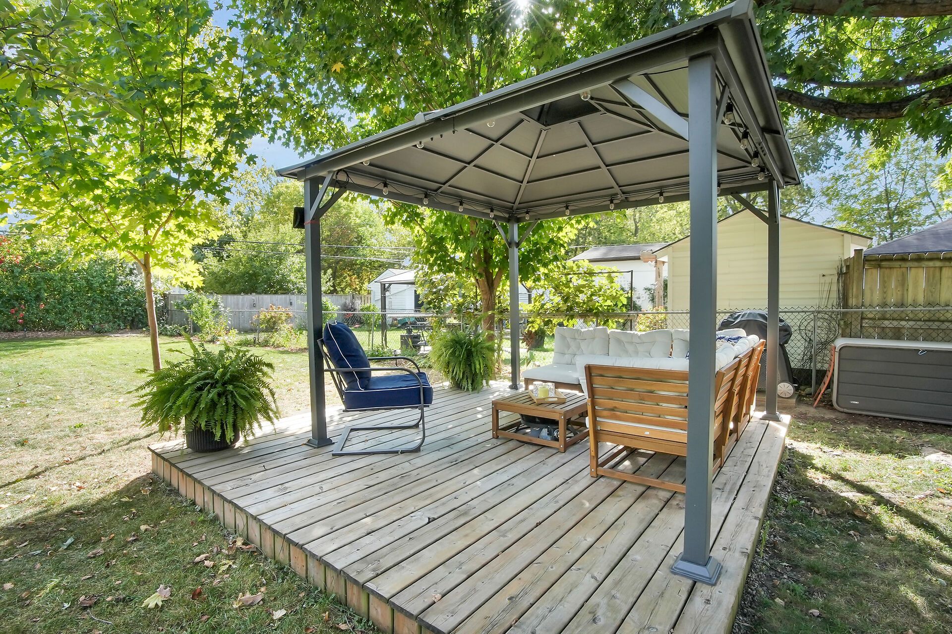 • Park-like backyard oasis with gardens, deck, and new gazebo for relaxation.