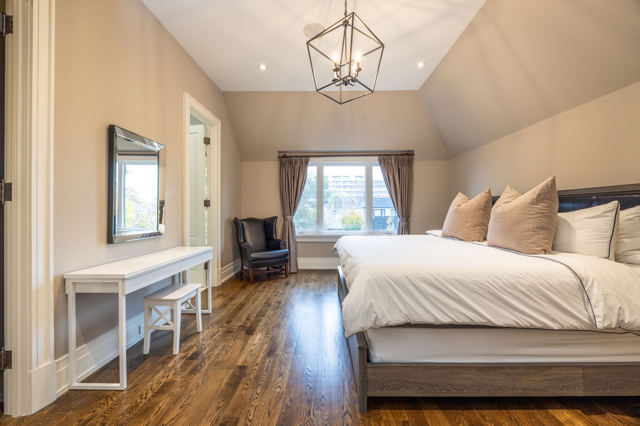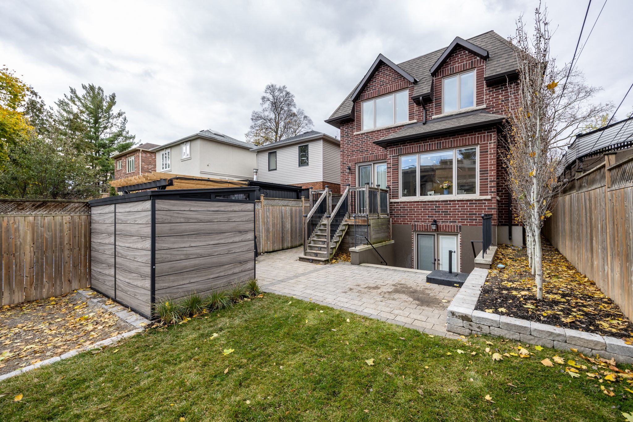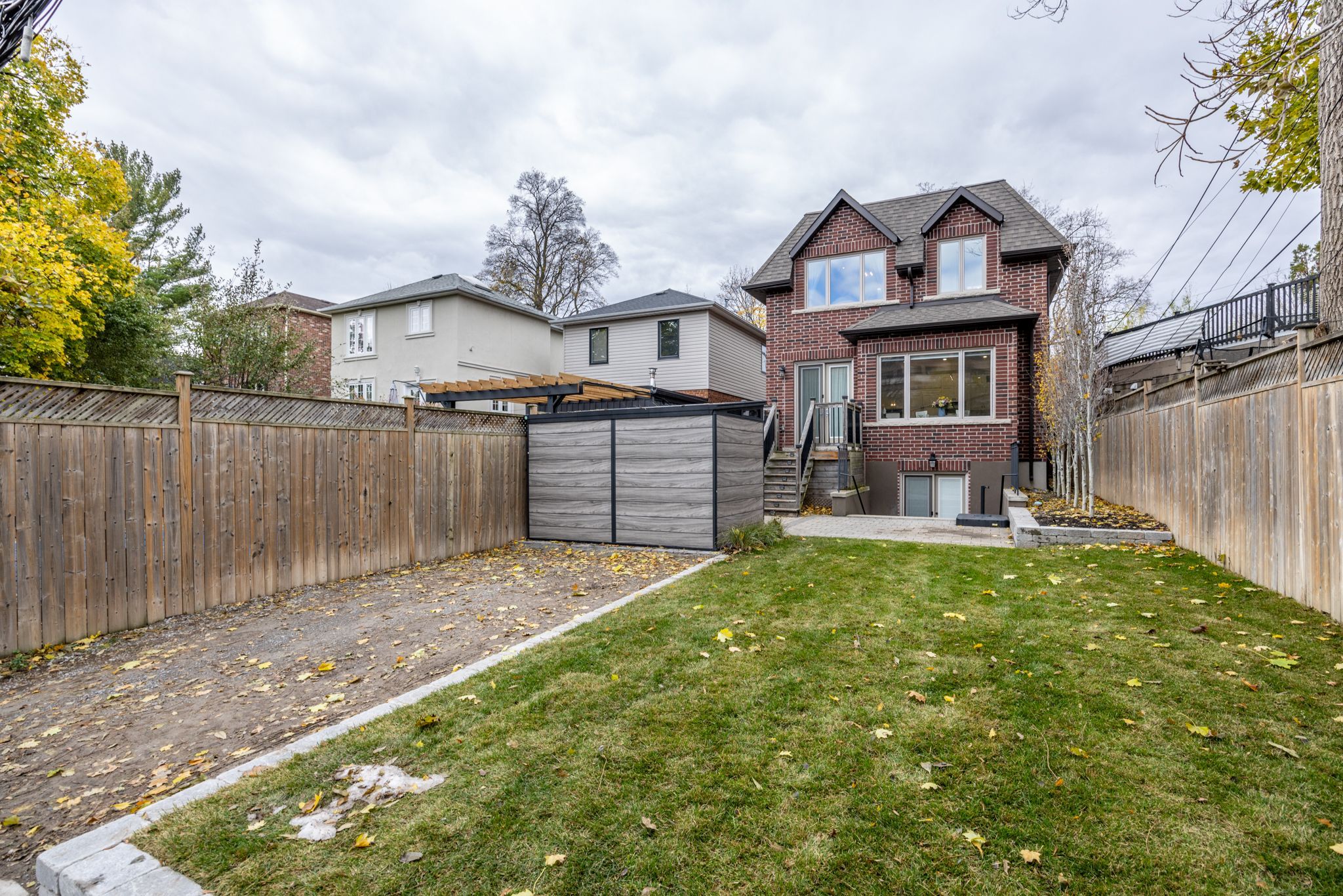 Impeccably designed and custom-built leaside home. This stunning 4+1 bedroom, 5-bathroom home offers nearly 3,700 sq. Ft. Of meticulously crafted living space in the heart of leaside. Designed with timeless elegance and modern functionality, the home features soaring ceilings, refined millwork, premium hardwood floors, and a spacious open-concept layout ideal for both everyday living and sophisticated entertaining. The chef's kitchen showcases high-end appliances, custom cabinetry, an oversized island, and seamless flow to a sun-filled family room with walkout to a beautifully landscaped backyard. The upper level offers generous bedrooms including a luxurious primary retreat with walk-in closet and spa-inspired ensuite. The fully finished lower level includes a large recreation room, additional bedroom, full bathroom, and ample storage. With exceptional attention to detail and finishes that rival a model home, this property delivers turnkey luxury in one of toronto's most sought-after neighbourhoods, steps to top-rated schools, parks, shopping, and transit. Intangibles that you wouldn't know unless you lived here: the neighbours are incredible, ultra quiet, the dead end laneway means no through traffic, gives an additional 600sq. Ft. Of backyard space ideal for kids play area. Permitted laneway usage, you can build an additional 1600sq. Ft. In the backyard, or scale it down to a 450sq. Ft office/flex space, plans have been approved and are transferrable.