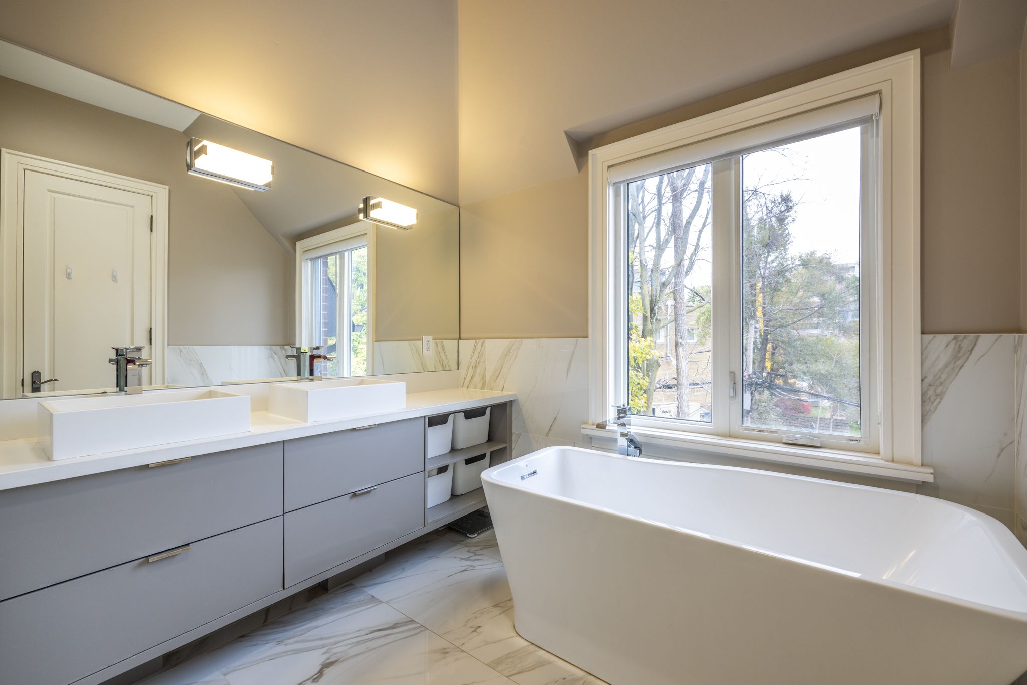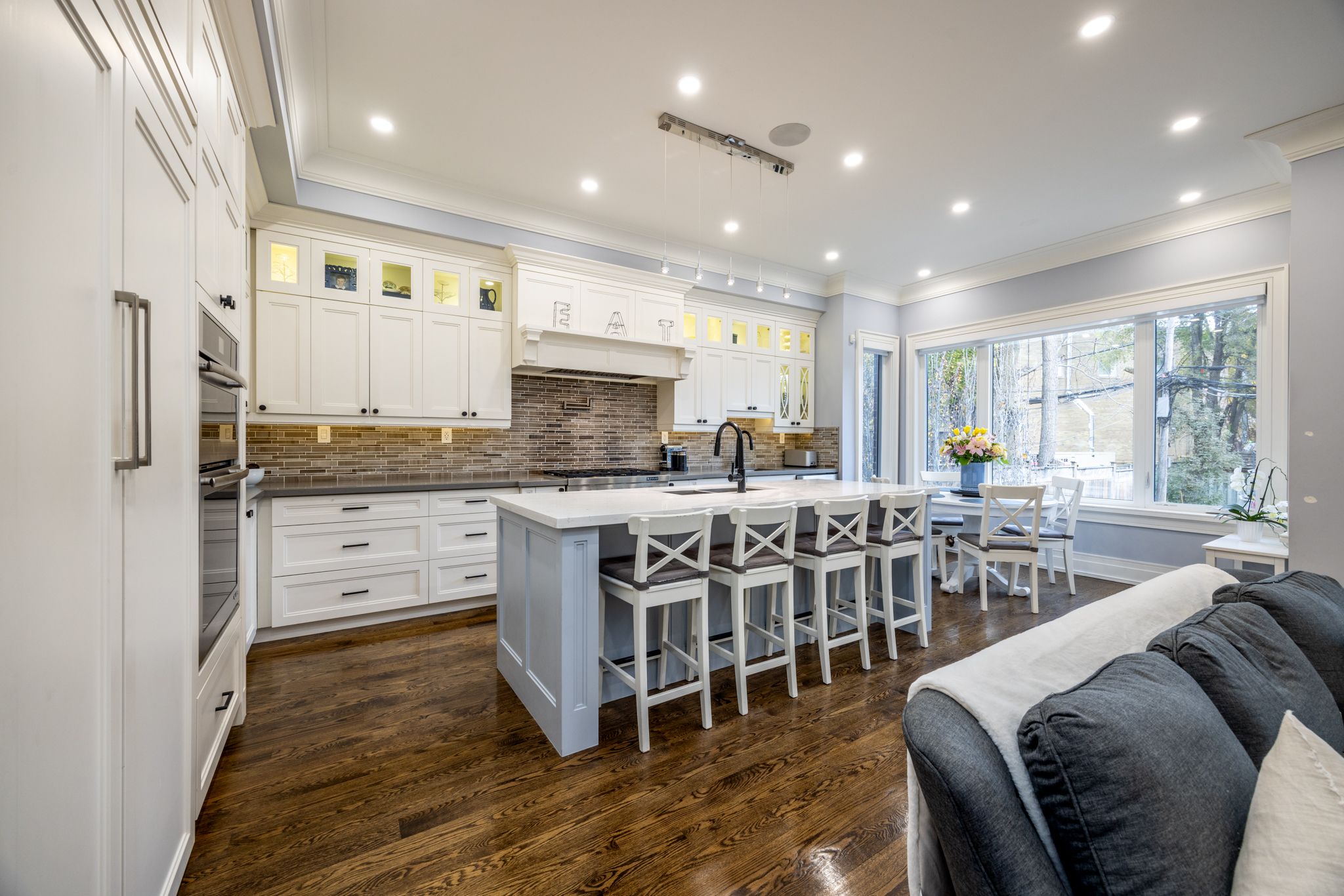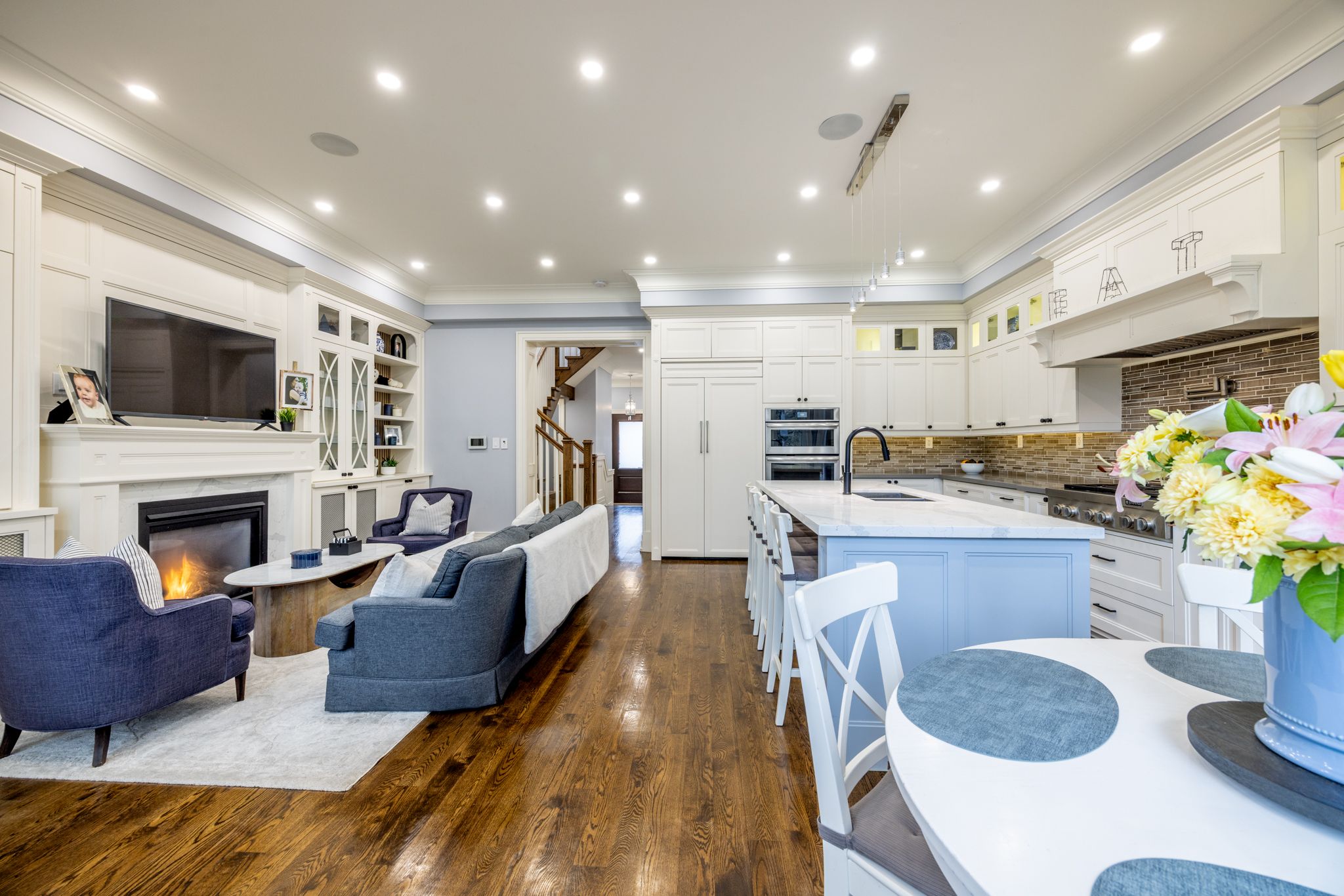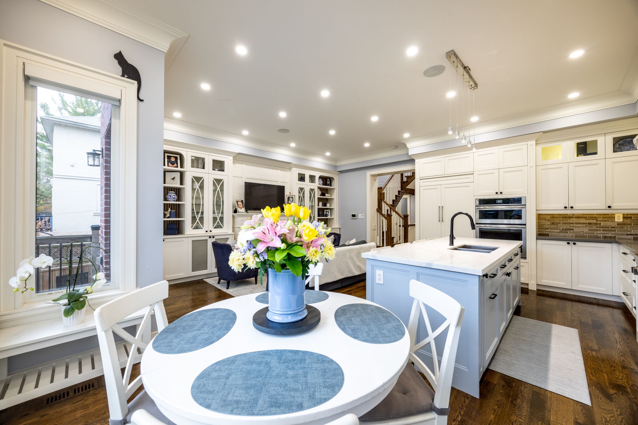 Impeccably designed and custom-built leaside home. This stunning 4+1 bedroom, 5-bathroom home offers nearly 3,700 sq. Ft. Of meticulously crafted living space in the heart of leaside. Designed with timeless elegance and modern functionality, the home features soaring ceilings, refined millwork, premium hardwood floors, and a spacious open-concept layout ideal for both everyday living and sophisticated entertaining. The chef's kitchen showcases high-end appliances, custom cabinetry, an oversized island, and seamless flow to a sun-filled family room with walkout to a beautifully landscaped backyard. The upper level offers generous bedrooms including a luxurious primary retreat with walk-in closet and spa-inspired ensuite. The fully finished lower level includes a large recreation room, additional bedroom, full bathroom, and ample storage. With exceptional attention to detail and finishes that rival a model home, this property delivers turnkey luxury in one of toronto's most sought-after neighbourhoods, steps to top-rated schools, parks, shopping, and transit. Intangibles that you wouldn't know unless you lived here: the neighbours are incredible, ultra quiet, the dead end laneway means no through traffic, gives an additional 600sq. Ft. Of backyard space ideal for kids play area. Permitted laneway usage, you can build an additional 1600sq. Ft. In the backyard, or scale it down to a 450sq. Ft office/flex space, plans have been approved and are transferrable.