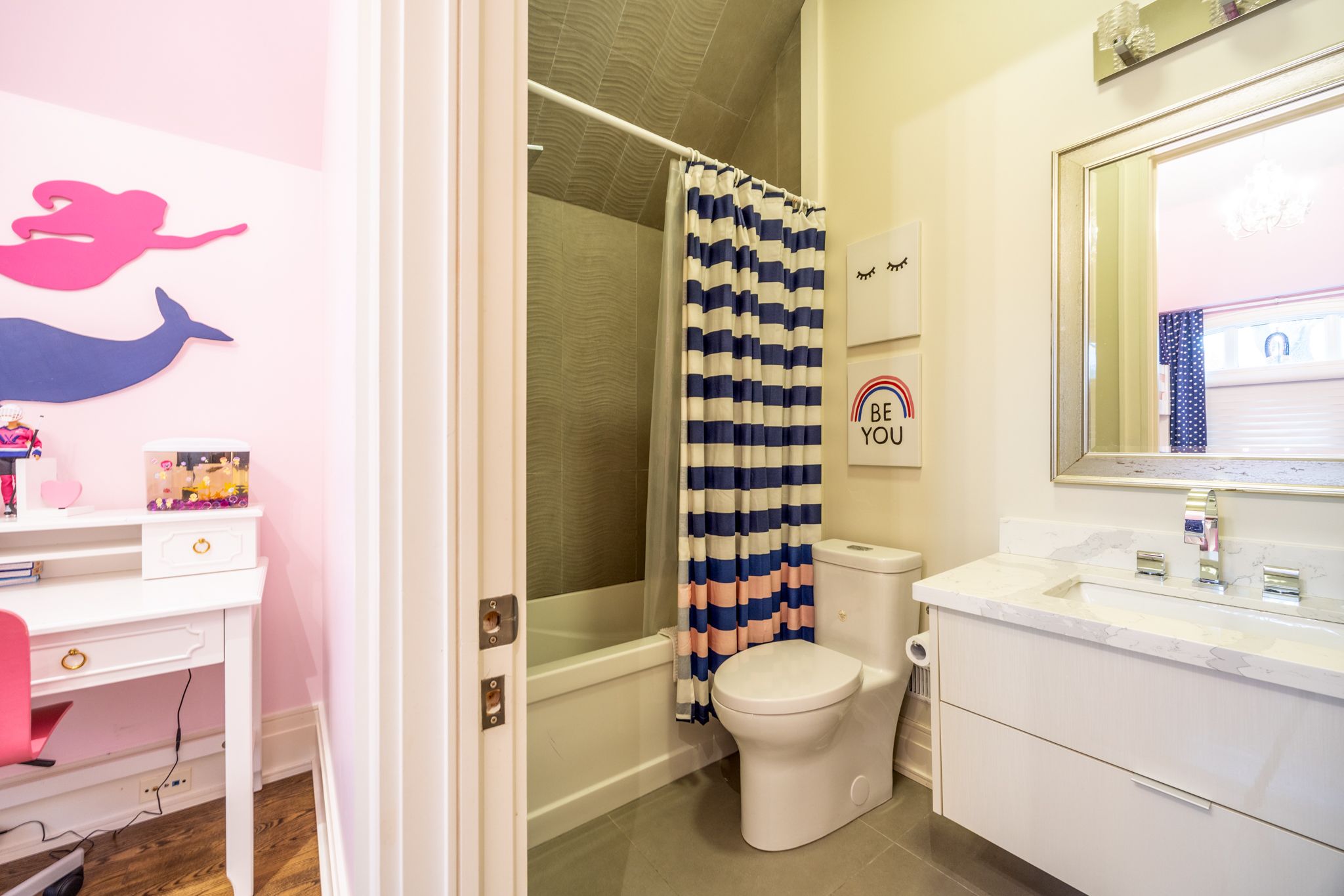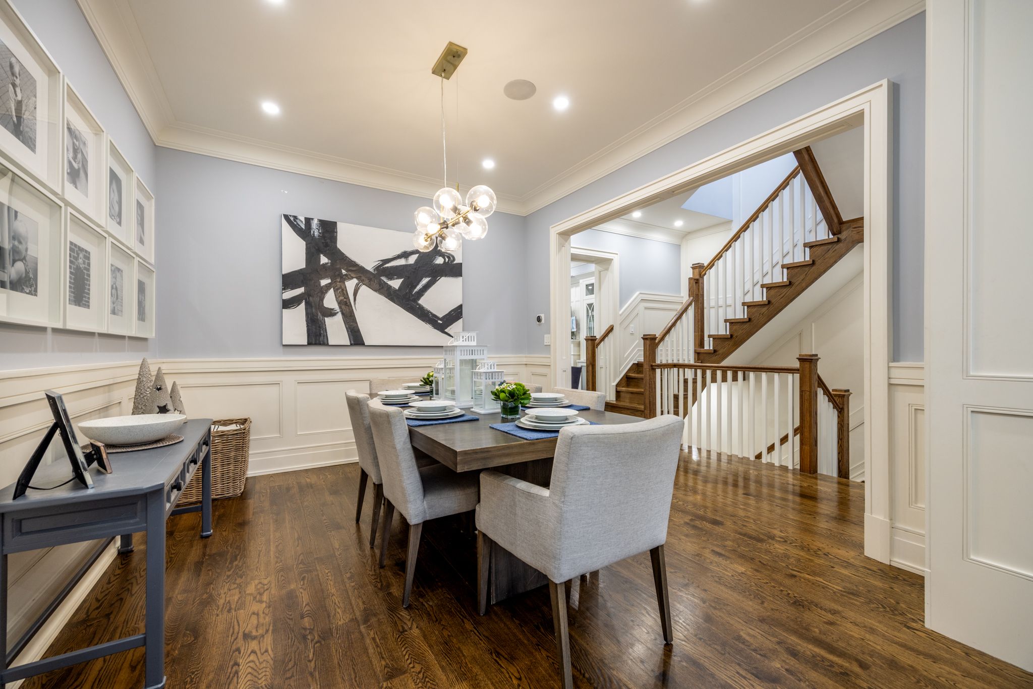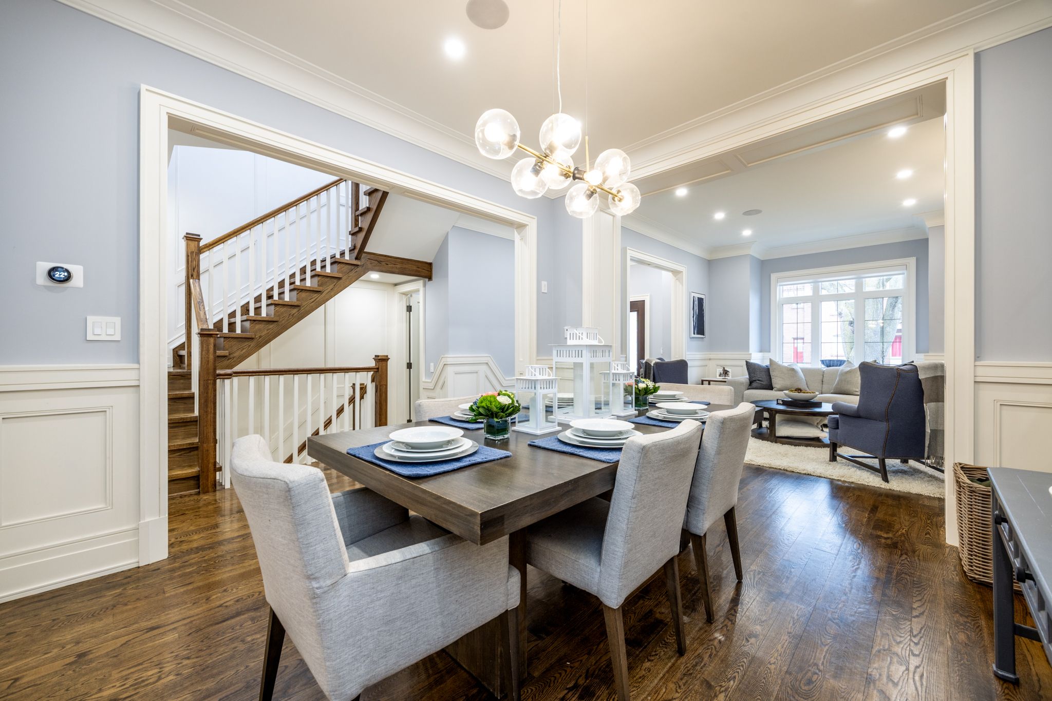 Impeccably designed and custom-built leaside home. This stunning 4+1 bedroom, 5-bathroom home offers nearly 3,700 sq. Ft. Of meticulously crafted living space in the heart of leaside. Designed with timeless elegance and modern functionality, the home features soaring ceilings, refined millwork, premium hardwood floors, and a spacious open-concept layout ideal for both everyday living and sophisticated entertaining. The chef's kitchen showcases high-end appliances, custom cabinetry, an oversized island, and seamless flow to a sun-filled family room with walkout to a beautifully landscaped backyard. The upper level offers generous bedrooms including a luxurious primary retreat with walk-in closet and spa-inspired ensuite. The fully finished lower level includes a large recreation room, additional bedroom, full bathroom, and ample storage. With exceptional attention to detail and finishes that rival a model home, this property delivers turnkey luxury in one of toronto's most sought-after neighbourhoods, steps to top-rated schools, parks, shopping, and transit. Intangibles that you wouldn't know unless you lived here: the neighbours are incredible, ultra quiet, the dead end laneway means no through traffic, gives an additional 600sq. Ft. Of backyard space ideal for kids play area.