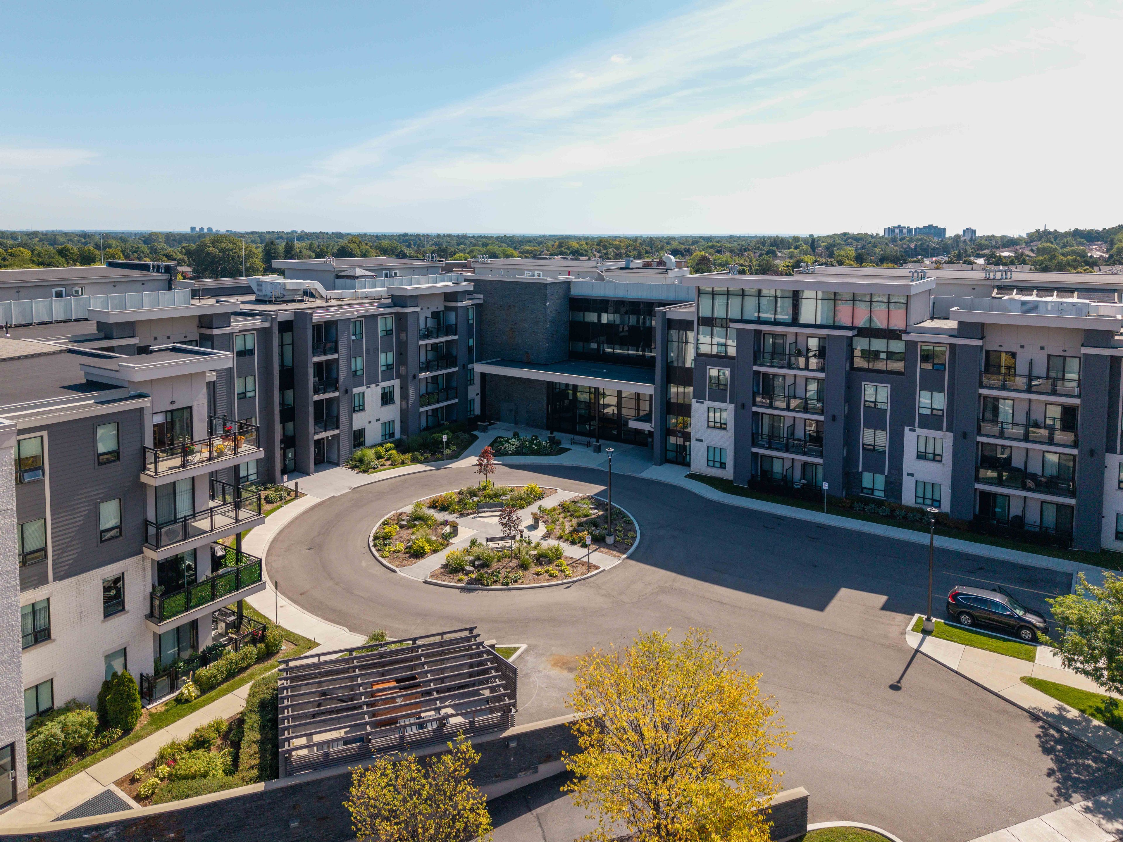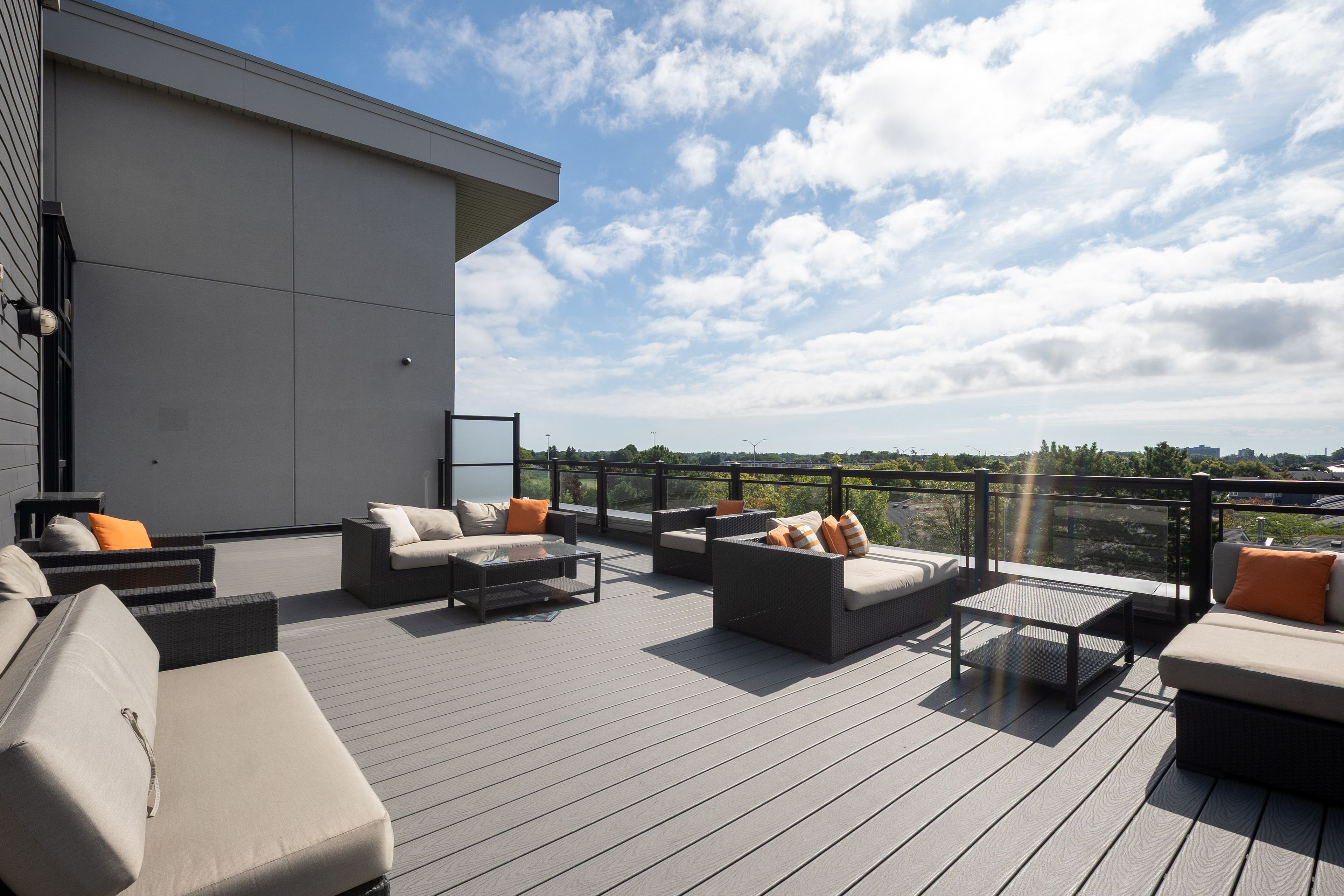 • Resort-style amenities include rooftop terrace, fitness center, and lounges.