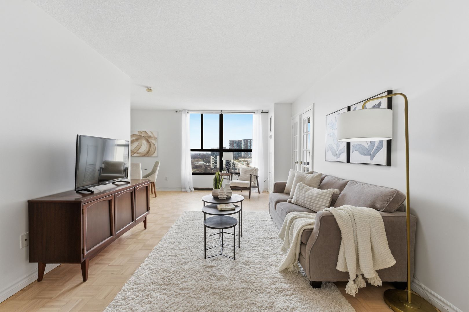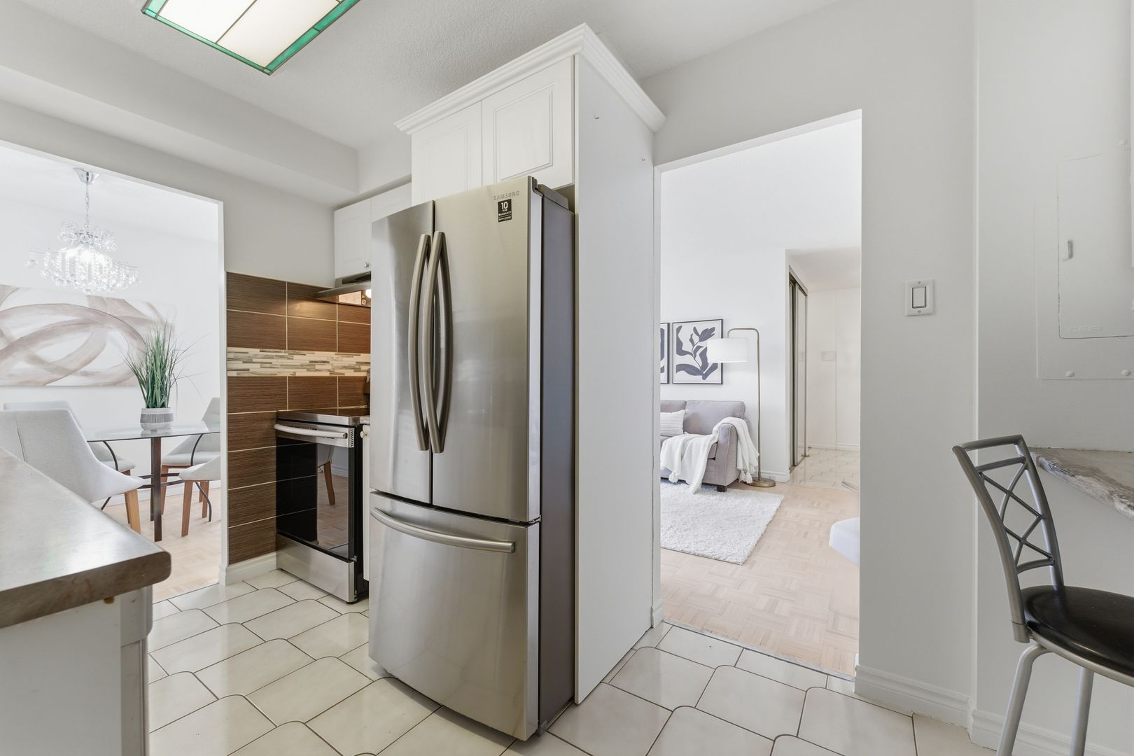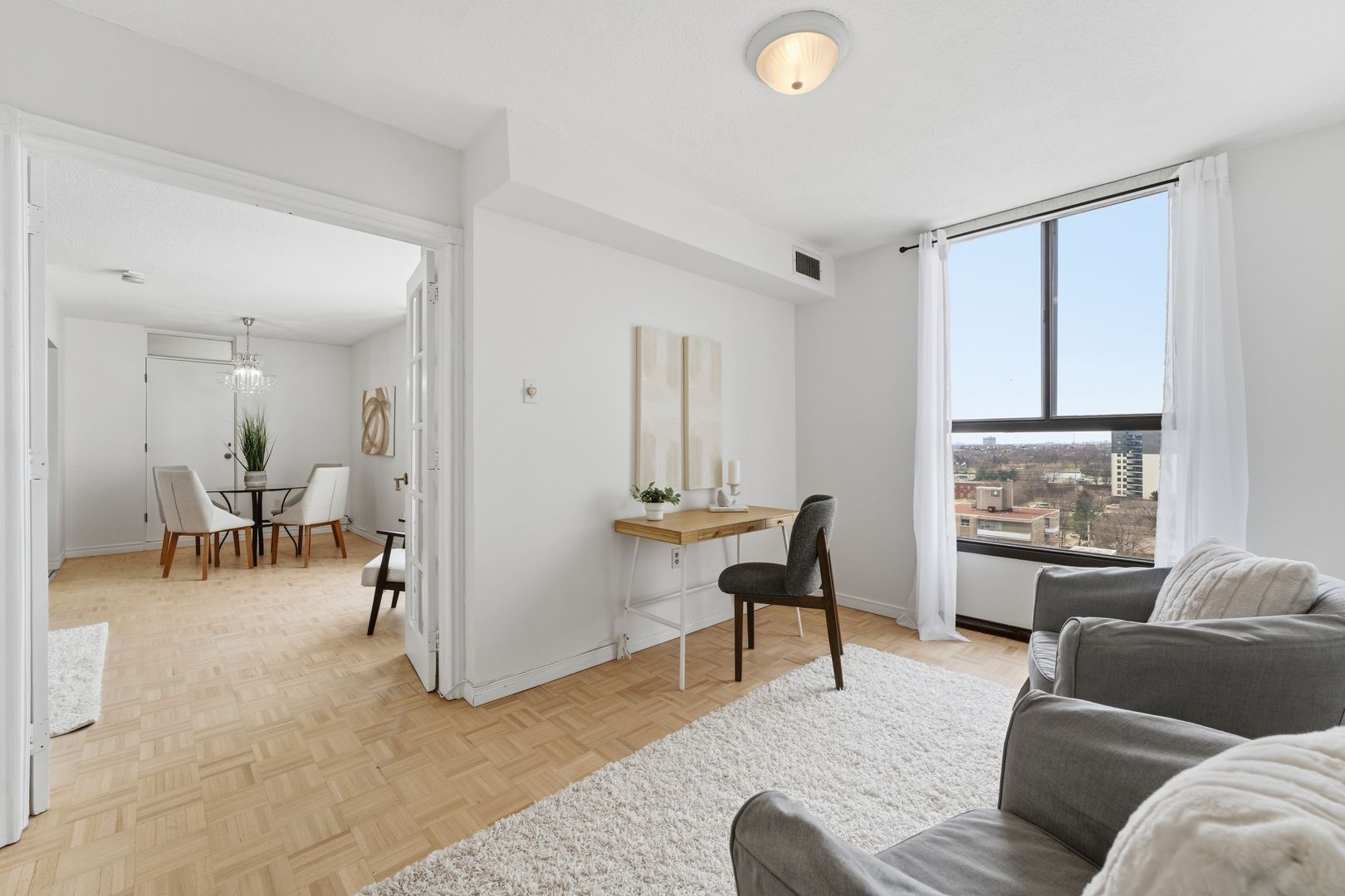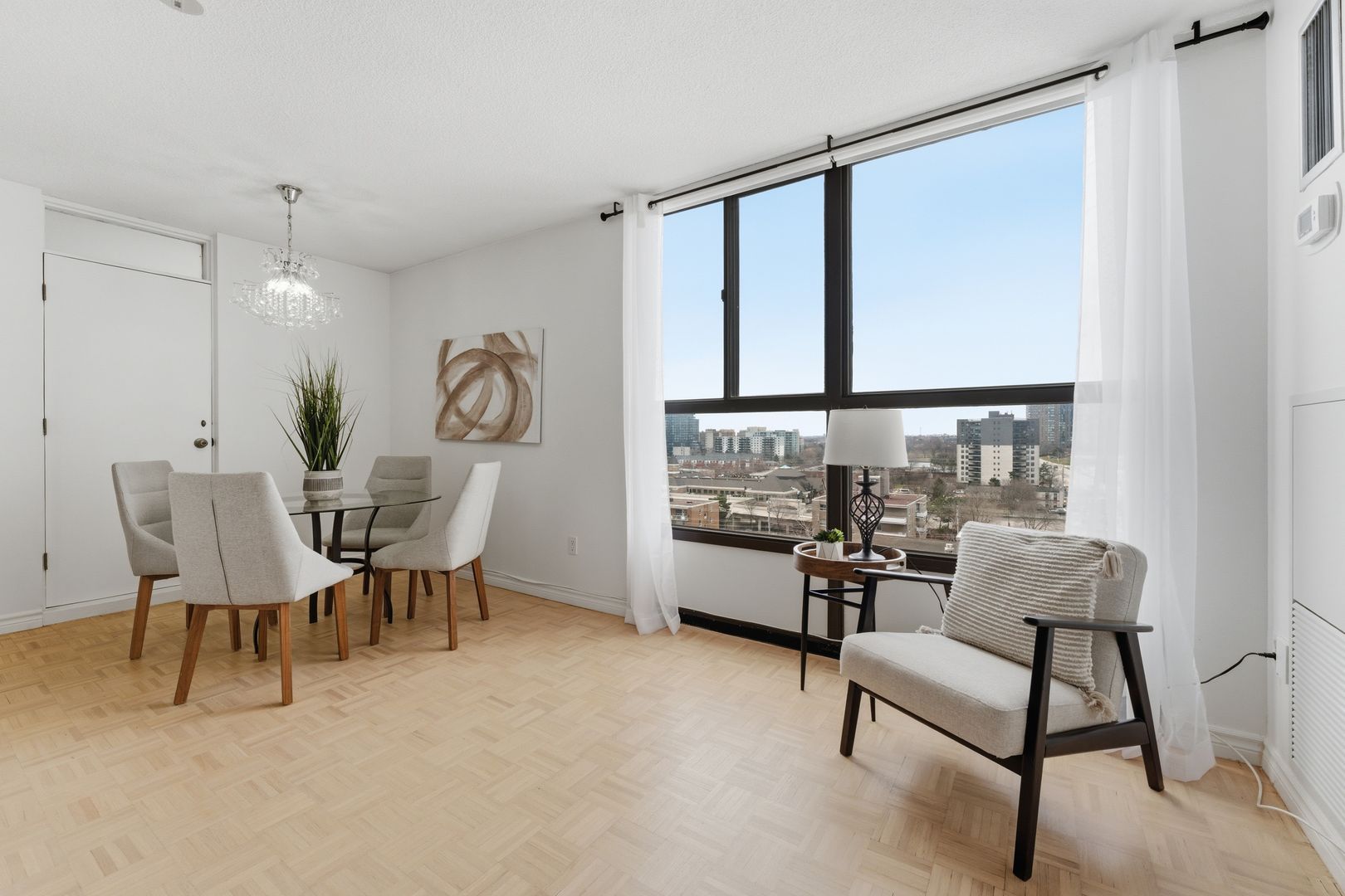 With 1265 square feet, 2 large bedrooms and a huge den graced with double french doors, this spacious and bright unit is just what you've been looking for! The kitchen features modern white cabinetry, stainless steel appliances, ceramic floors, tile backsplash, double sink and lots of storage. Perfect for creating those wonderful holiday meals! The open concept living/dining space features large windows for lots of natural light, warm parquet floors and a walkout to the lovely balcony - a wonderful place to relax at the end of the day. The bedrooms include hardwood floors, big windows and large closets and the oversize den can easily serve as a third bedroom. Both washrooms have been updated with modern finishes, soft-close cabinets and ceramic flooring. There's an ensuite storage room and a massive ensuite laundry room with even more storage space! Public transit options are plentiful with nearby cooksville go, numerous bus routes and the upcoming hurontario lrt. Easy access to the qew or 403 and just 16 minutes to pearson airport. Trillium hospital is close by and there are fantastic shopping and restaurant options all along dundas and hurontario. Explore the numerous parks and trails in the vicinity, pop over to cooksville library for a good read or enjoy skating, fitness and swimming at mississauga valley community centre. This neighbourhood has everything you and your family need!