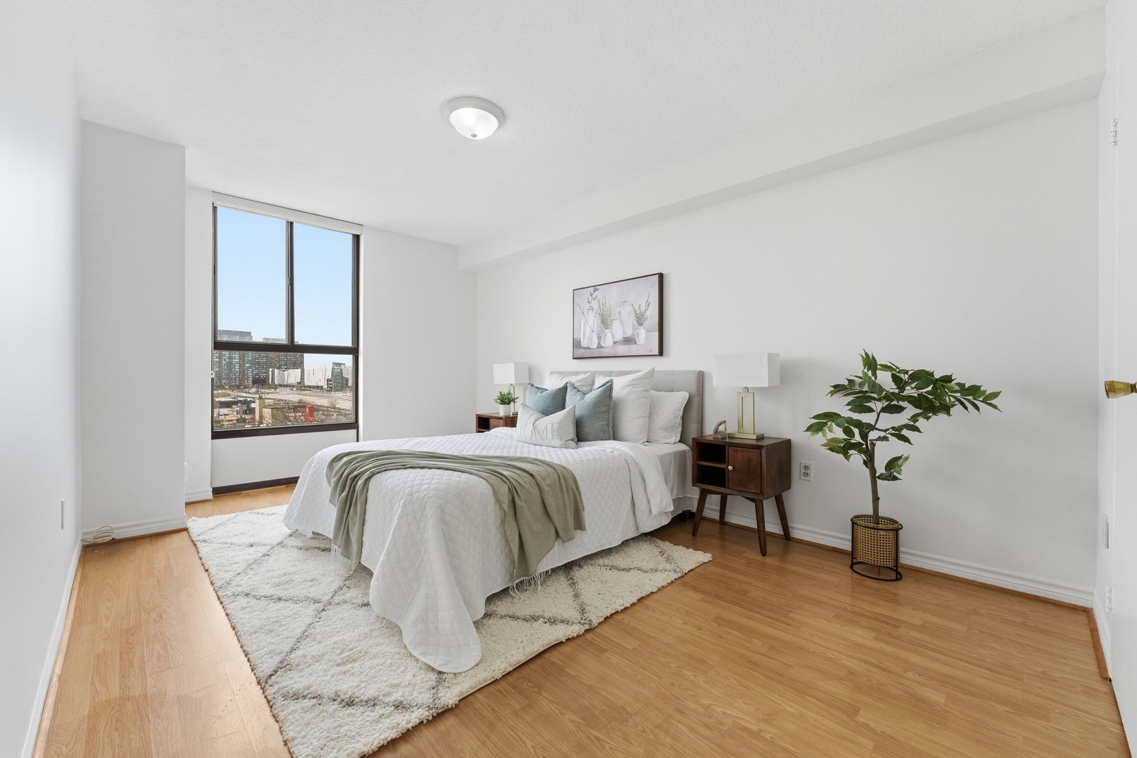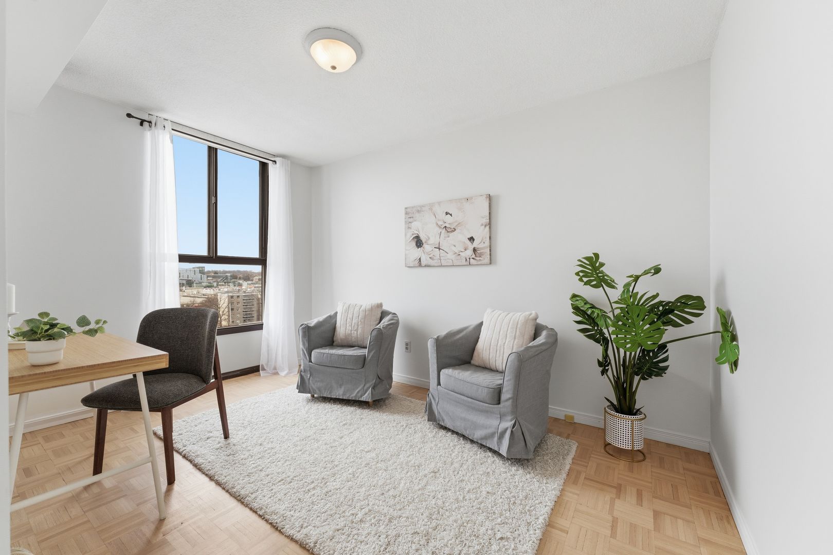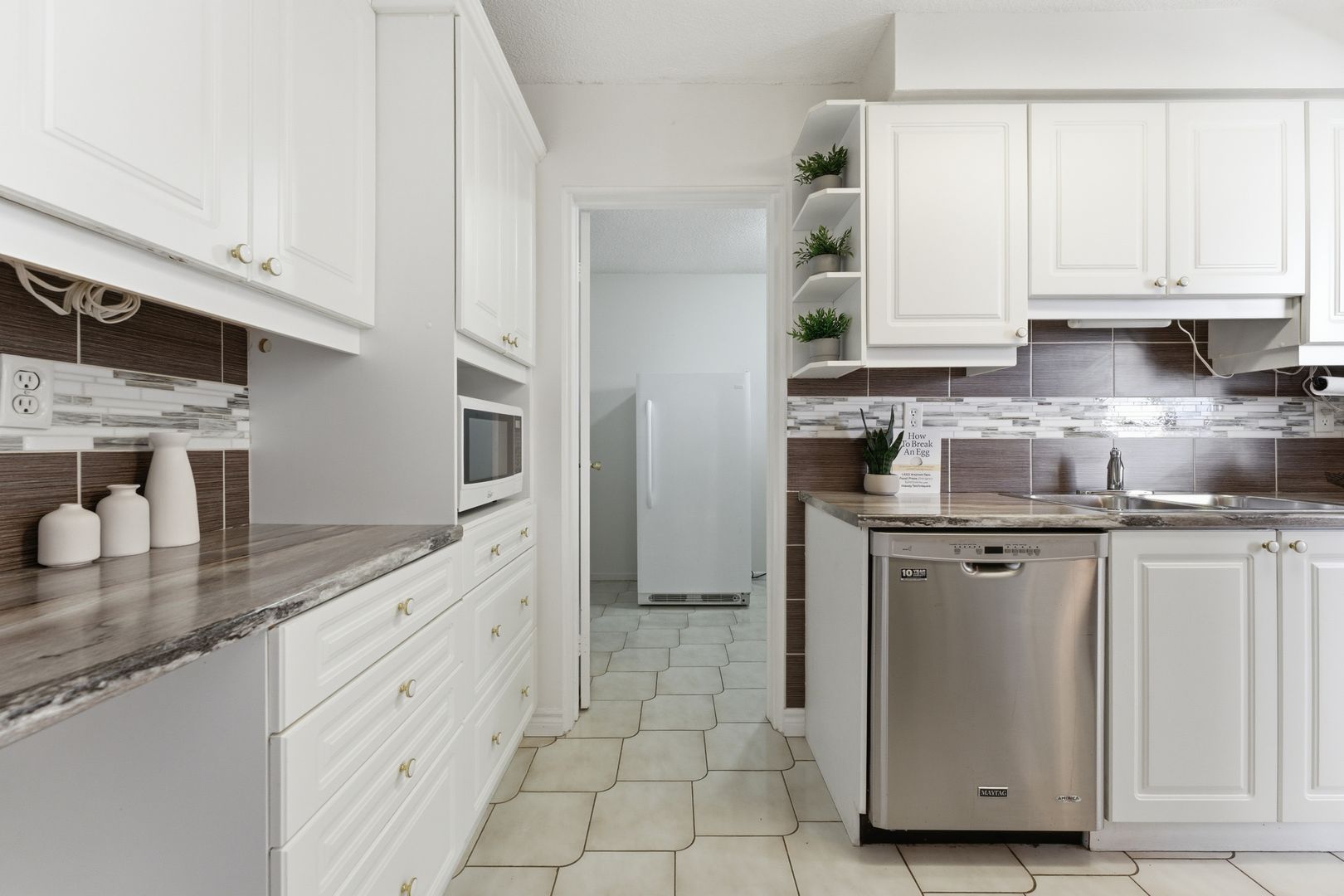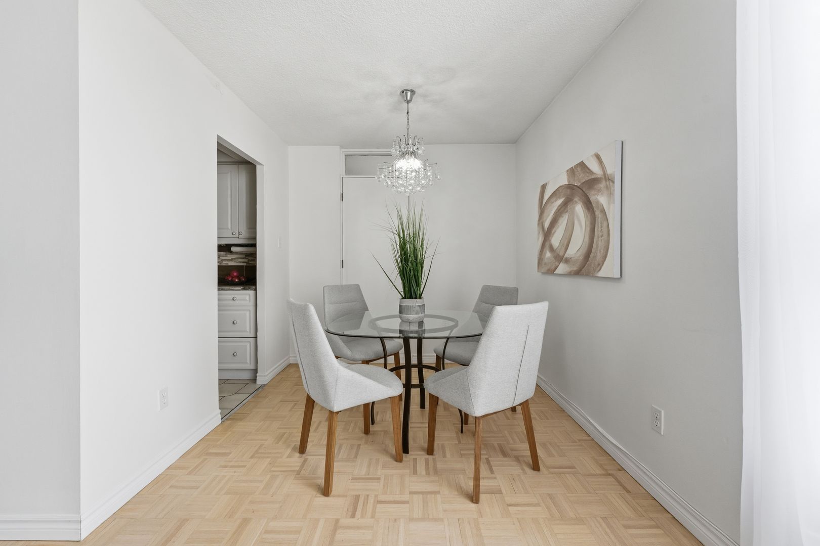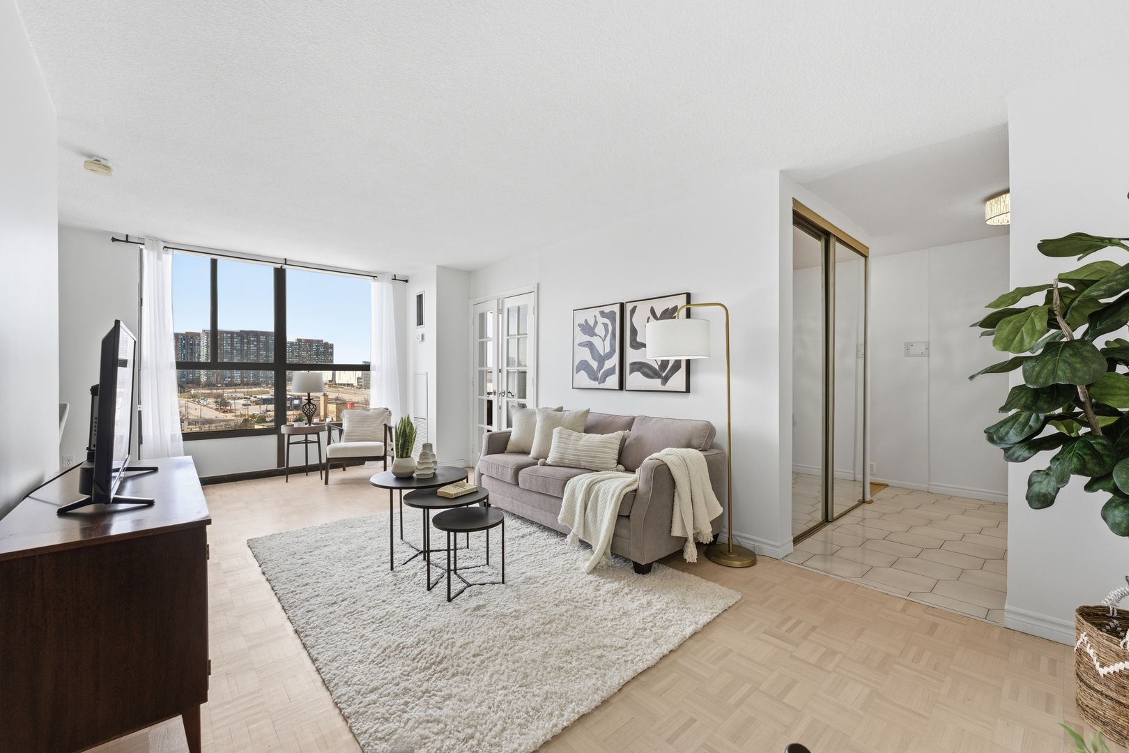 With 1265 square feet, 2 large bedrooms and a huge den graced with double french doors, this spacious and bright unit is just what you've been looking for! The kitchen features modern white cabinetry, stainless steel appliances, ceramic floors, tile backsplash, double sink and lots of storage. Perfect for creating those wonderful holiday meals! The open concept living/dining space features large windows for lots of natural light, warm parquet floors and a walkout to the lovely balcony - a wonderful place to relax at the end of the day. The bedrooms include hardwood floors, big windows and large closets and the oversize den can easily serve as a third bedroom. Both washrooms have been updated with modern finishes, soft-close cabinets and ceramic flooring. There's an ensuite storage room and a massive ensuite laundry room with even more storage space! Public transit options are plentiful with nearby cooksville go, numerous bus routes and the upcoming hurontario lrt. Easy access to the qew or 403 and just 16 minutes to pearson airport. Trillium hospital is close by and there are fantastic shopping and restaurant options all along dundas and hurontario. Explore the numerous parks and trails in the vicinity, pop over to cooksville library for a good read or enjoy skating, fitness and swimming at mississauga valley community centre. This neighbourhood has everything you and your family need!