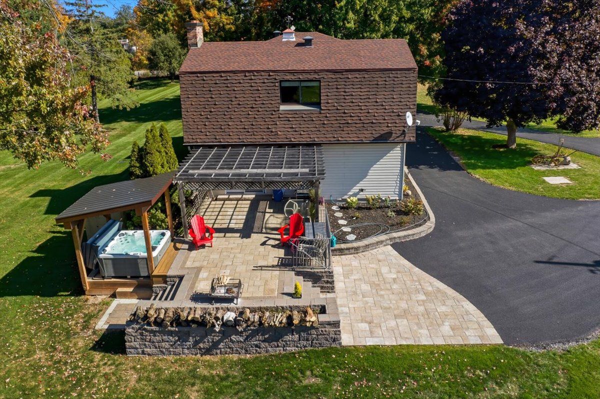Welcome to 3172 8th line rd where you will experience the perfect blend of the peace & tranquility of country living, combined w/the elevated tastes of premium updates. This home truly has it all. From the manicured lawn, to the perfectly placed landscaped beds; the outdoor appeal radiates. The kitchen has been completely reimagined to include finishes that are magazine worthy. Including crisp, white cabinetry w/pot & pan drawers, stylish backsplash, dedicated coffee station, 10. 5' island w/breakfast bar seating, ss appliances & charming farmhouse sink. The dining rm pays tribute to century old finishes w/beautiful tin ceiling. An original door leads to the covered front porch. At the back of the home is the spacious great room. It includes a lrg family room area for relaxing & striking, 2 storey brick & barn board accent wall behind the wood stove that enhances the space beautifully. A pinterest worthy powder rm completes this lvl. The hw staircase leads to the 2nd lvl & a spacious loft space that is open to the great rm below. The spacious primary bedroom features a custom wardrobe & wic & access to the beautifully updated 3pc ensuite complete w/glass shower & custom vanity. Both secondary bedrms are generous in size & feature ample closet spc. The updated main bath features a beautifully tiled tub/shower, custom vanity & beautifully tiled floors. The ll is unspoiled & currently allows for 2 separate workshop or hobby spcs, lrg closet & an abundance of storage spc. This home sits on a post-card worthy, 3. 78-acre lot. The back stone interlock patio features a dining area under the pergola w/space to bbq & luxurious hot tub. A sizeable detached garage makes for a fantastic separate workshop or home-based business. It allows for ample storage of your outdoor maintenance tools & can also accommodate small to full size vehicles. The rolling lawn is dotted with perfectly placed trees to allow for exceptional privacy.