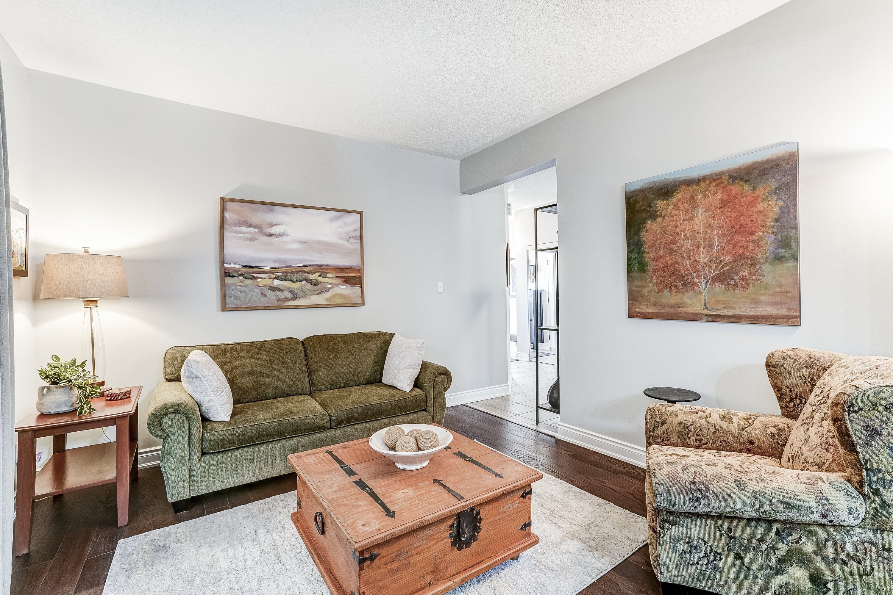 • Spacious open layout with 9' ceilings and hardwood floors throughout.