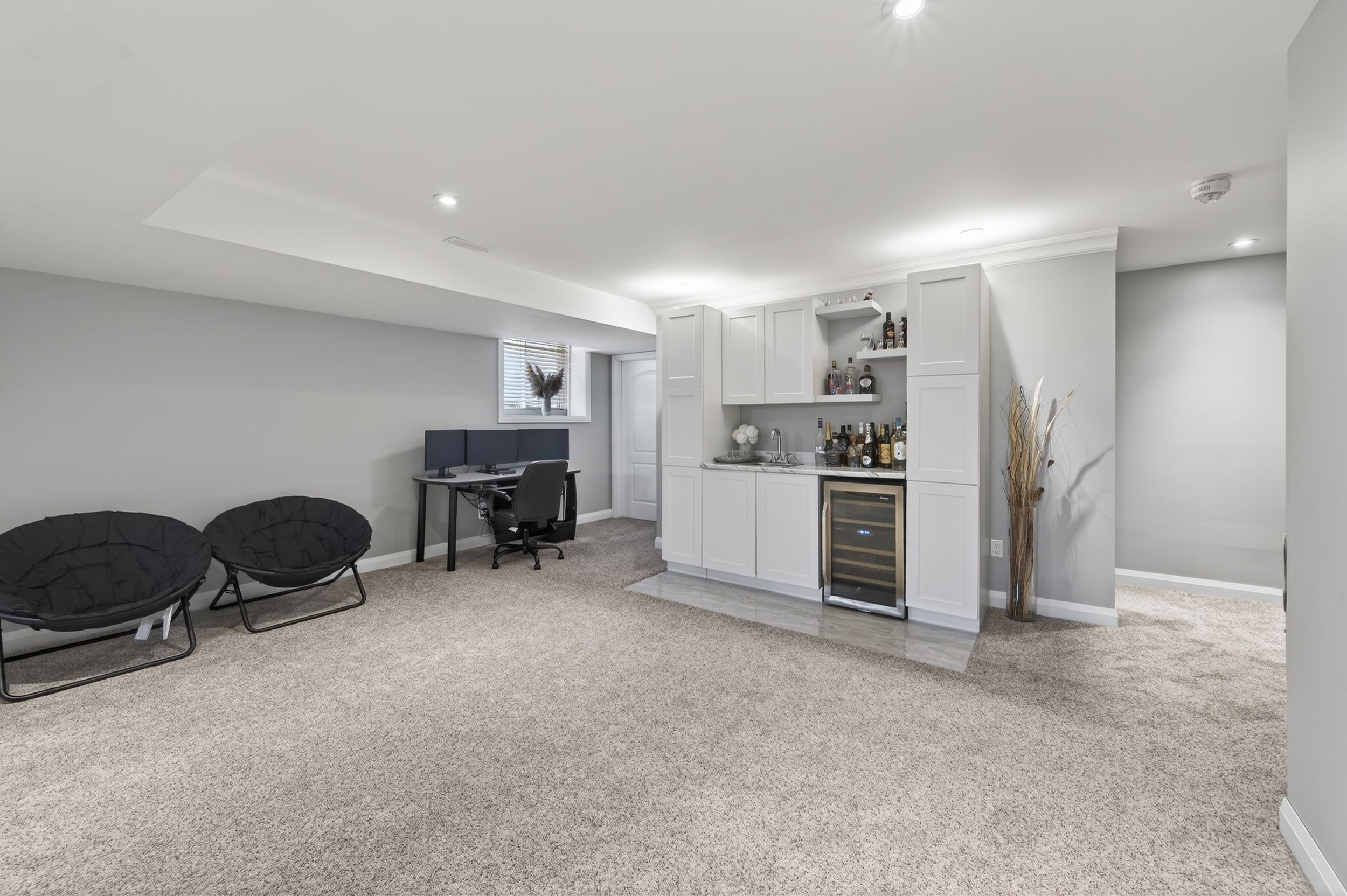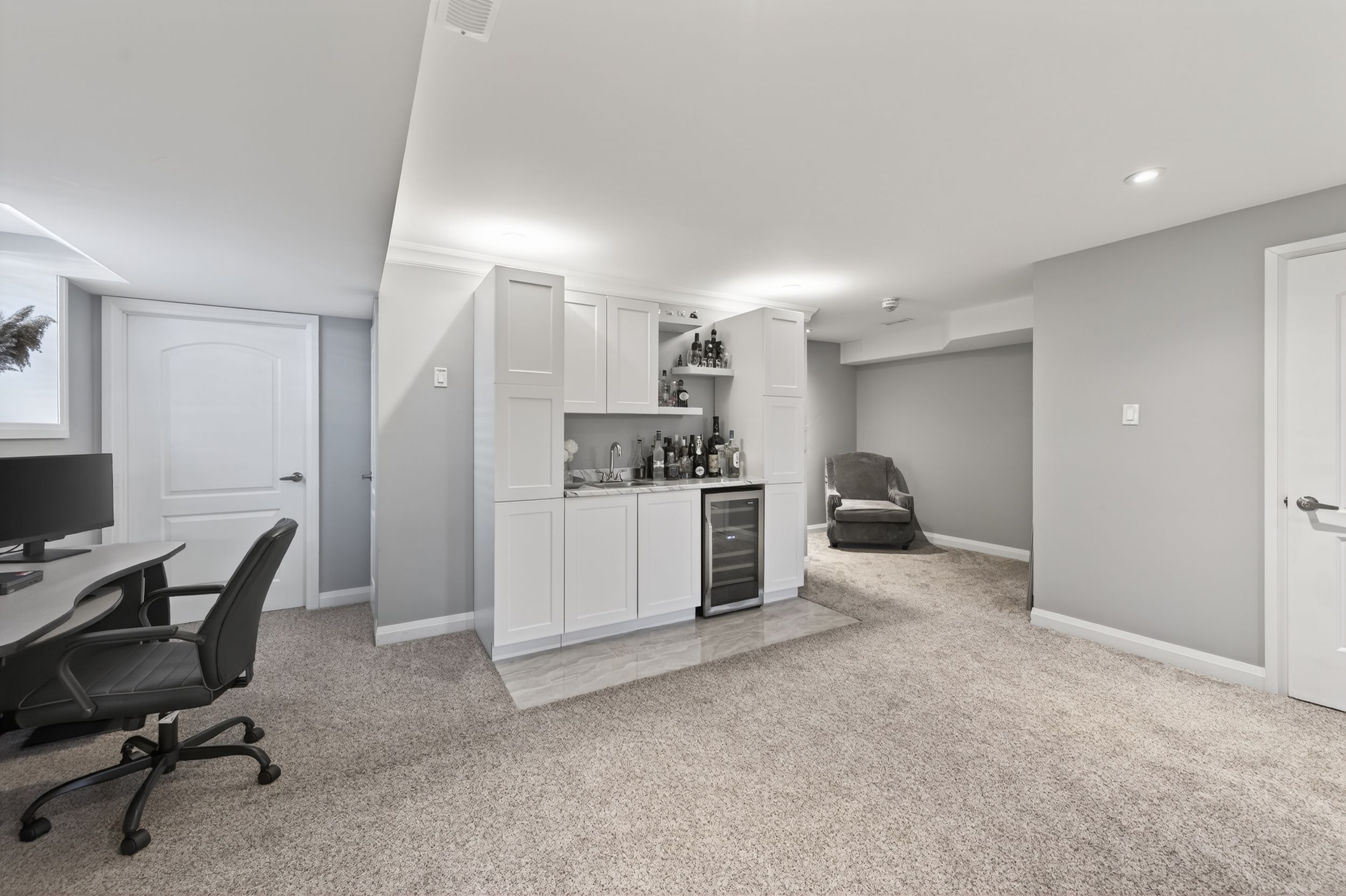 • Finished basement with wet bar, mini-fridge, and great entertainment potential.