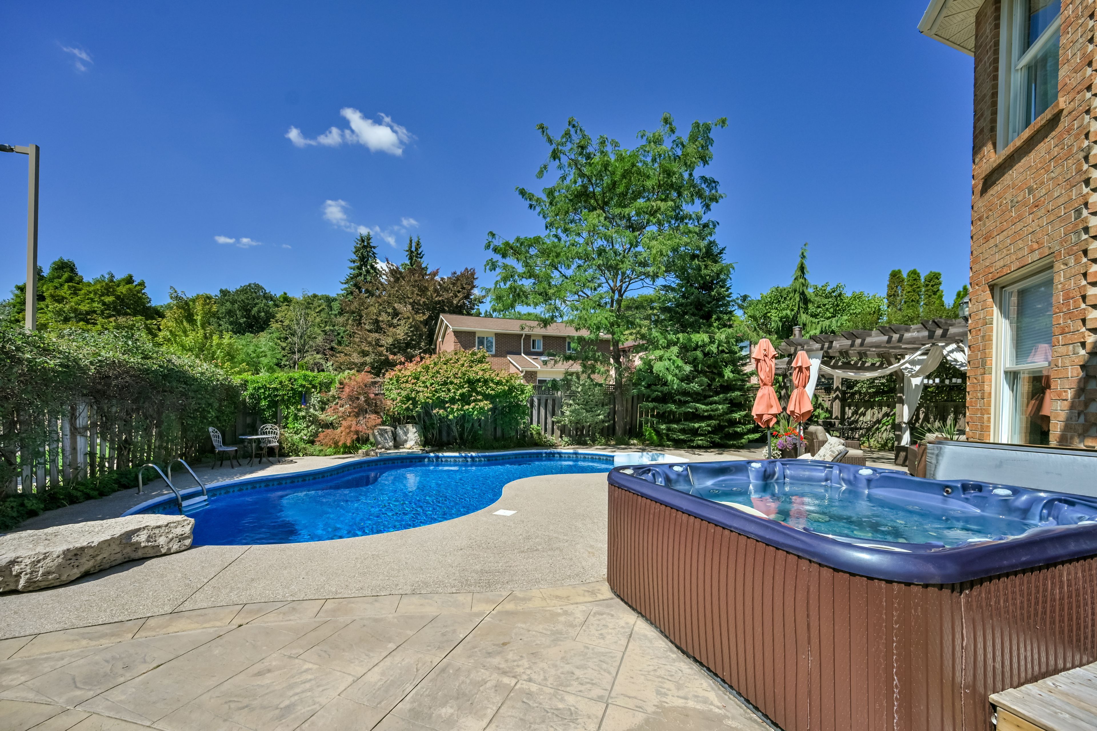 Welcome to 3173 spring creek crescent, a stunning 4+1 bedroom, 3. 5 bath, home located in a prestigious meadowvale enclave. Set on a premium corner lot in a quiet, family-friendly neighbourhood, this property offers a private backyard oasis ideal for entertaining & family living. A grand foyer with a curved staircase & natural stone tile welcomes you inside. Off the entry, a bright formal living room features a beautiful double-sided gas fireplace that is shared with the spacious dining room. The two-tone open-concept eat-in chef's kitchen offers quartz countertops, designer appliances & flows seamlessly into the dining area, complete with extended pantry space & warmed by the shared double-sided fireplace. The sunken family room adds warmth and character with hardwood flooring and a wood-burning fireplace, while the main level is completed by a powder room & a functional laundry mudroom with access to both the garage & backyard. Upstairs, the expansive primary retreat features a private sitting area, a spa-inspired ensuite with clawfoot tub and glass shower, along with a walk-in closet for her and an additional closet for him. Three additional bright bedrooms, hardwood flooring throughout, and a four-piece bathroom complete the upper level. The finished basement is ideal for entertaining, offering a built-in wet bar, recreation room, sitting area with gas fireplace, a large three-piece bathroom, and an additional bedroom with ample storage. Step outside to your private fully fenced backyard retreat, complete with a kidney-shaped inground pool with diving rock, hot tub, pergola, concrete patio, and generous green space. Move in and enjoy from day one. Convenient meadowvale location close to highly sought after plum tree, st. John of the cross schools, eden woods, parks, places of worship, walking trails, lake aquitaine and everyday shopping/amenities. Minutes to meadowvale town centre, community centre, library, public transit, and major highways for easy commuting.