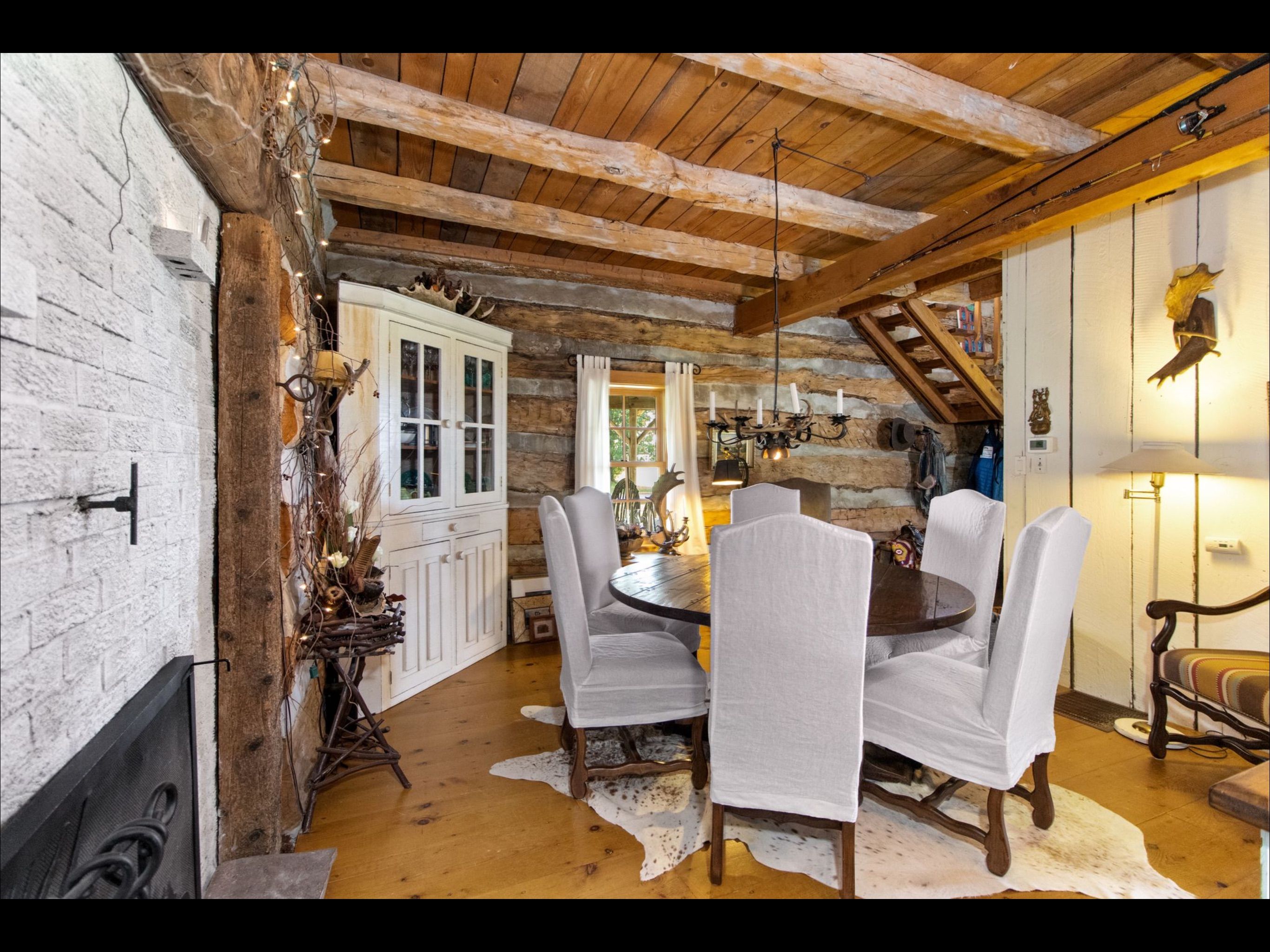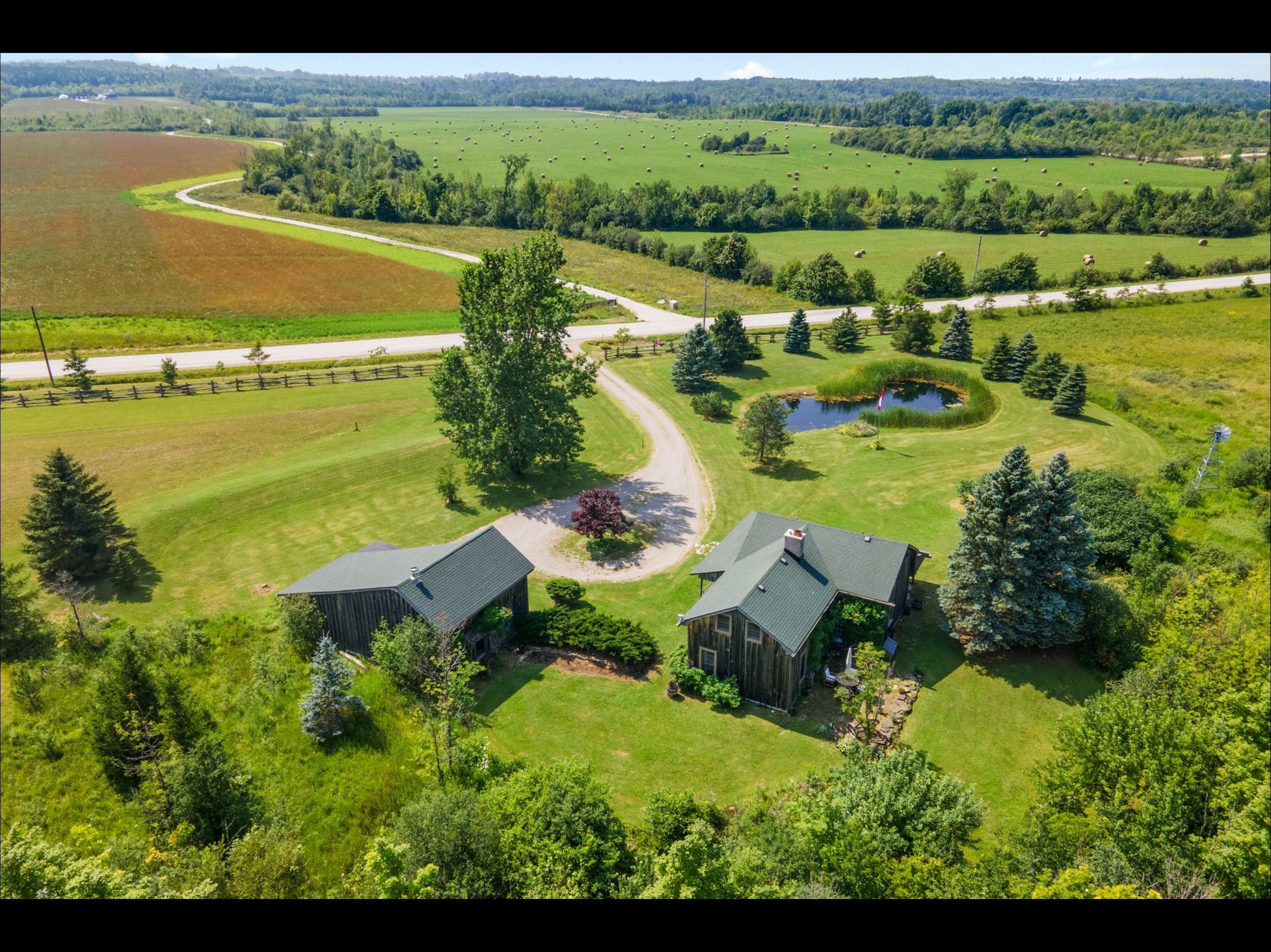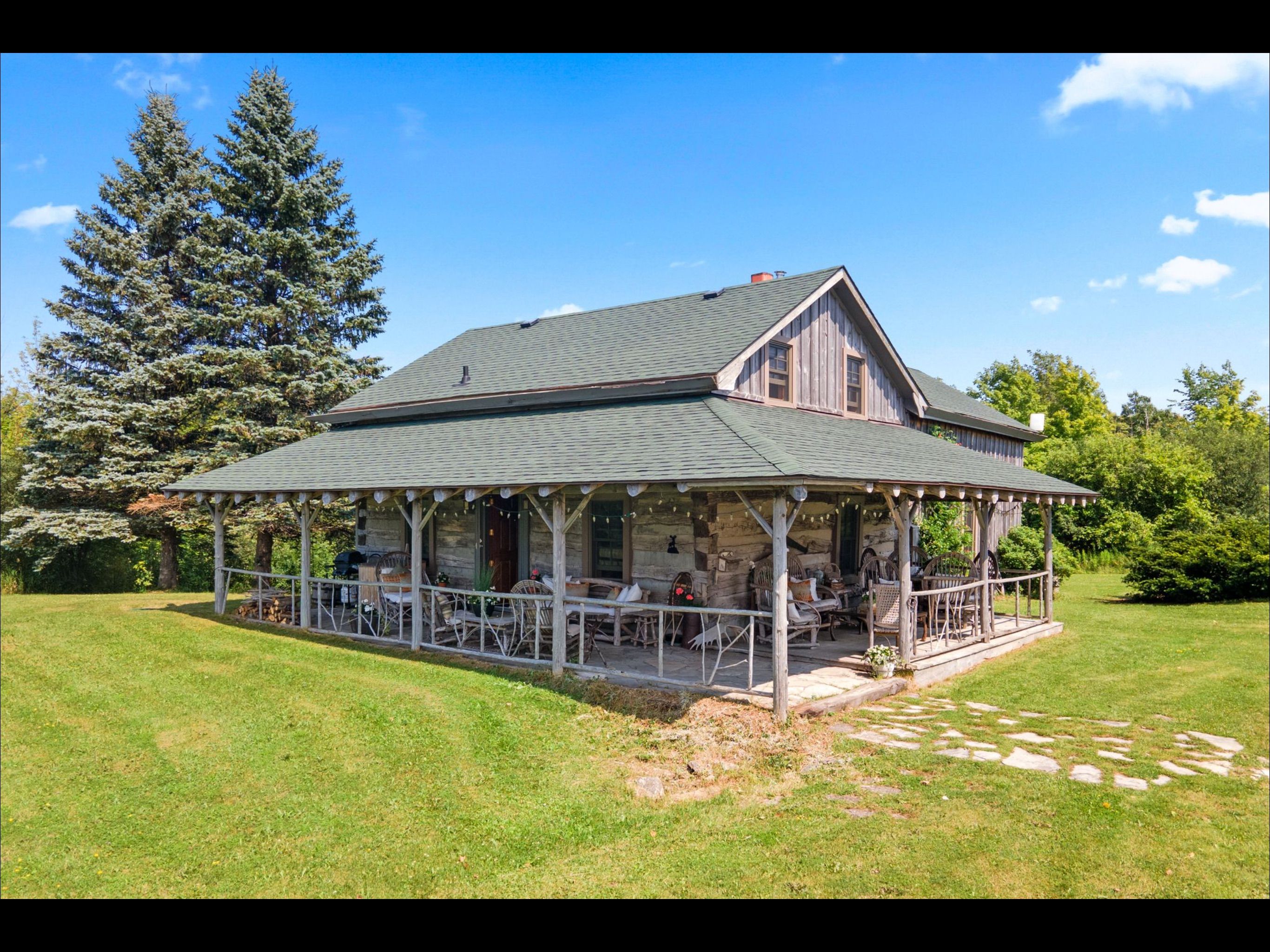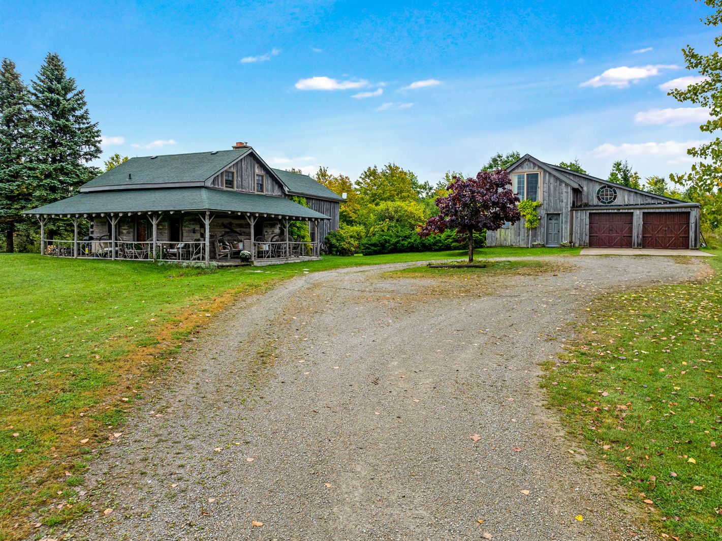 Rustic charm meets nature's serenity! Situated on 5. 3 acres, just south east of meaford, this home was reconstructed on this site, bringing together a local heritage dwelling with a cabin from quebec. The current owner oversaw this reconstruction, insisting on strict adherence to detail. Over the years, modern influences were added but not at the expense of history. This special home offers two bedroom and 2 baths, with a loft above the living room that could be used as a third bedroom or home office. A flagstone entrance and hand finished wooden floors add to the historical charm. The open concept kitchen/dining area lends itself to family gatherings and intimate dinners. The two-sided fireplace services both the dining area and living room. The primary bedroom and ensuite and a second bedroom are located on the second floor. The owner has carefully chosen furniture and accessories to enhance the character of the residence. A wrap around covered porch borders the house on two sides, adding outdoor sitting area for entertaining or relaxing. Steps away from the house is the studio--another historical building that, with renovations, would increase the living space on the property. Attached to the studio is a double car garage. The property has many features---a pond, aerated by an authentic windmill, a ravine with trails and mature oak and maple trees, and pastoral vistas that add to the serenity of this uniqueness of this place. The property is situated between meaford and thornbury, just a short drive to the many special activities taking place in these communities all year long. This property is ideal for both full time living and a perfect weekend retreat. Skiing, boating, golf, biking and hiking are also closeby. This is truly an ideal place to enjoy the lifestyle that the georgian bay area has to offer.