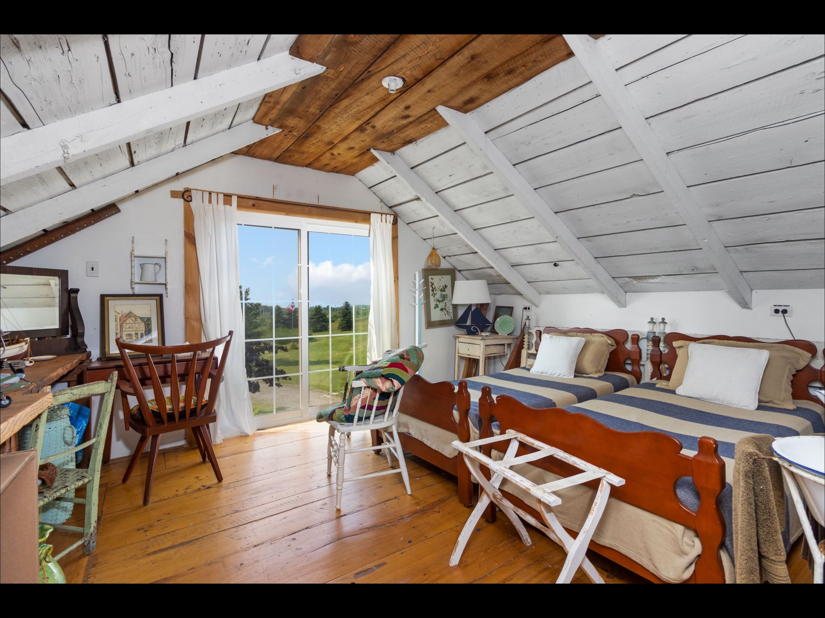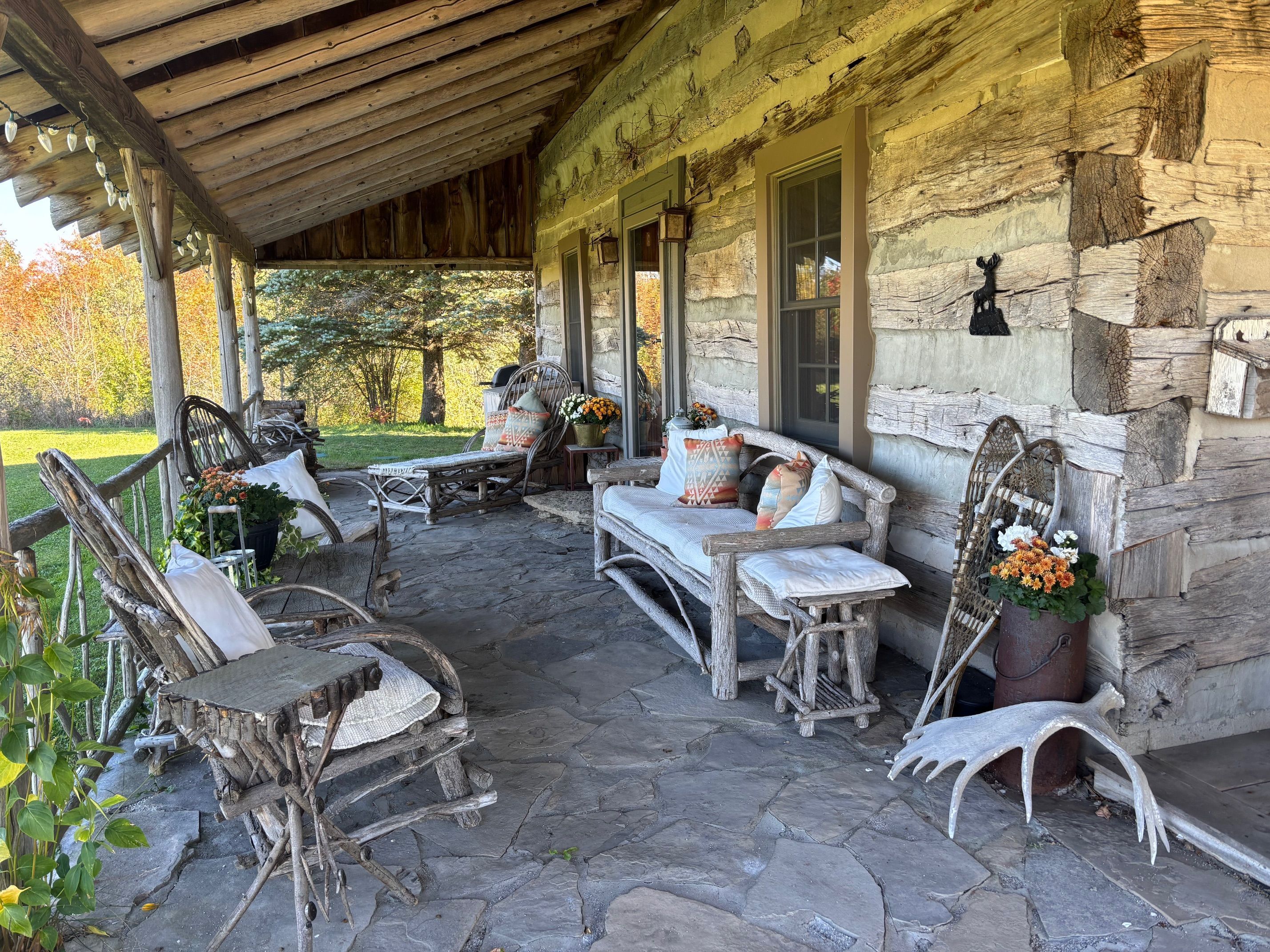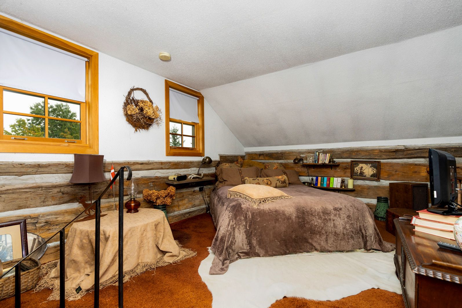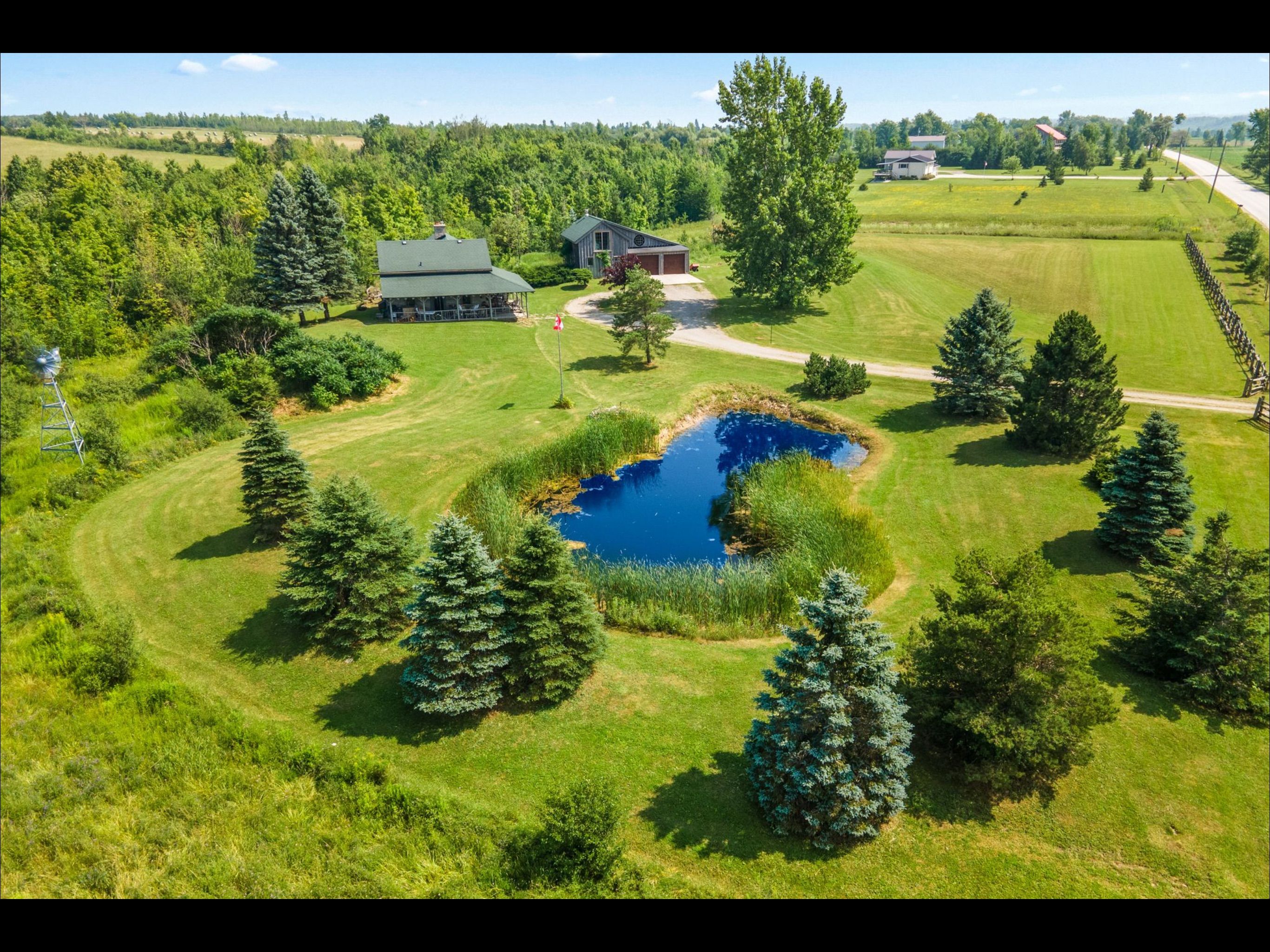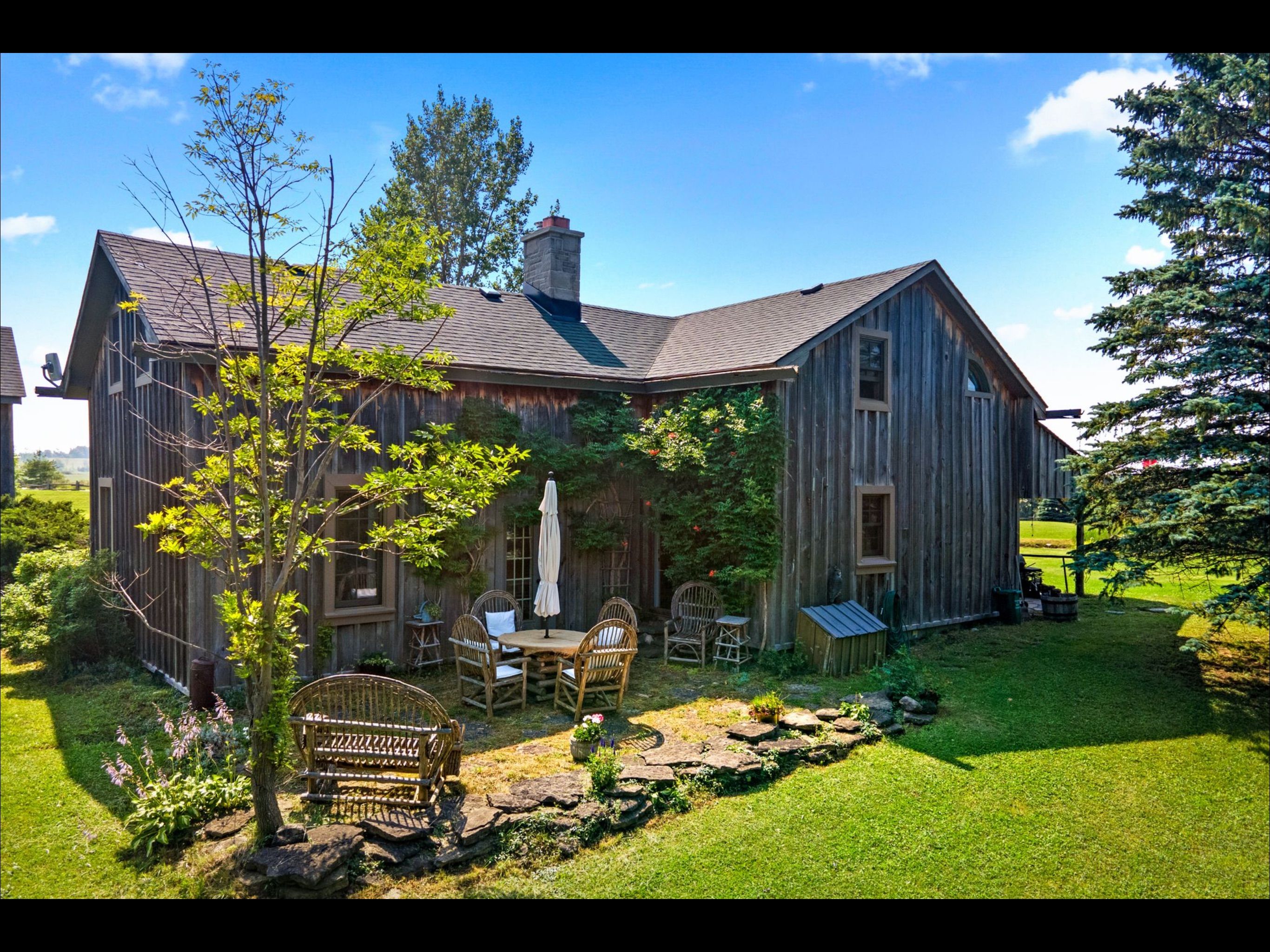 Rustic charm meets nature's serenity! Situated on 5. 3 acres, just south east of meaford, this home was reconstructed on this site, bringing together a local heritage dwelling with a cabin from quebec. The current owner oversaw this reconstruction, insisting on strict adherence to detail. Over the years, modern influences were added but not at the expense of history. This special home offers two bedroom and 2 baths, with a loft above the living room that could be used as a third bedroom or home office. A flagstone entrance and hand finished wooden floors add to the historical charm. The open concept kitchen/dining area lends itself to family gatherings and intimate dinners. The two-sided fireplace services both the dining area and living room. The primary bedroom and ensuite and a second bedroom are located on the second floor. The owner has carefully chosen furniture and accessories to enhance the character of the residence. A wrap around covered porch borders the house on two sides, adding outdoor sitting area for entertaining or relaxing. Steps away from the house is the studio--another historical building that, with renovations, would increase the living space on the property. Attached to the studio is a double car garage. The property has many features---a pond, aerated by an authentic windmill, a ravine with trails and mature oak and maple trees, and pastoral vistas that add to the serenity of this uniqueness of this place. The property is situated between meaford and thornbury, just a short drive to the many special activities taking place in these communities all year long. This property is ideal for both full time living and a perfect weekend retreat. Skiing, boating, golf, biking and hiking are also closeby. This is truly an ideal place to enjoy the lifestyle that the georgian bay area has to offer.