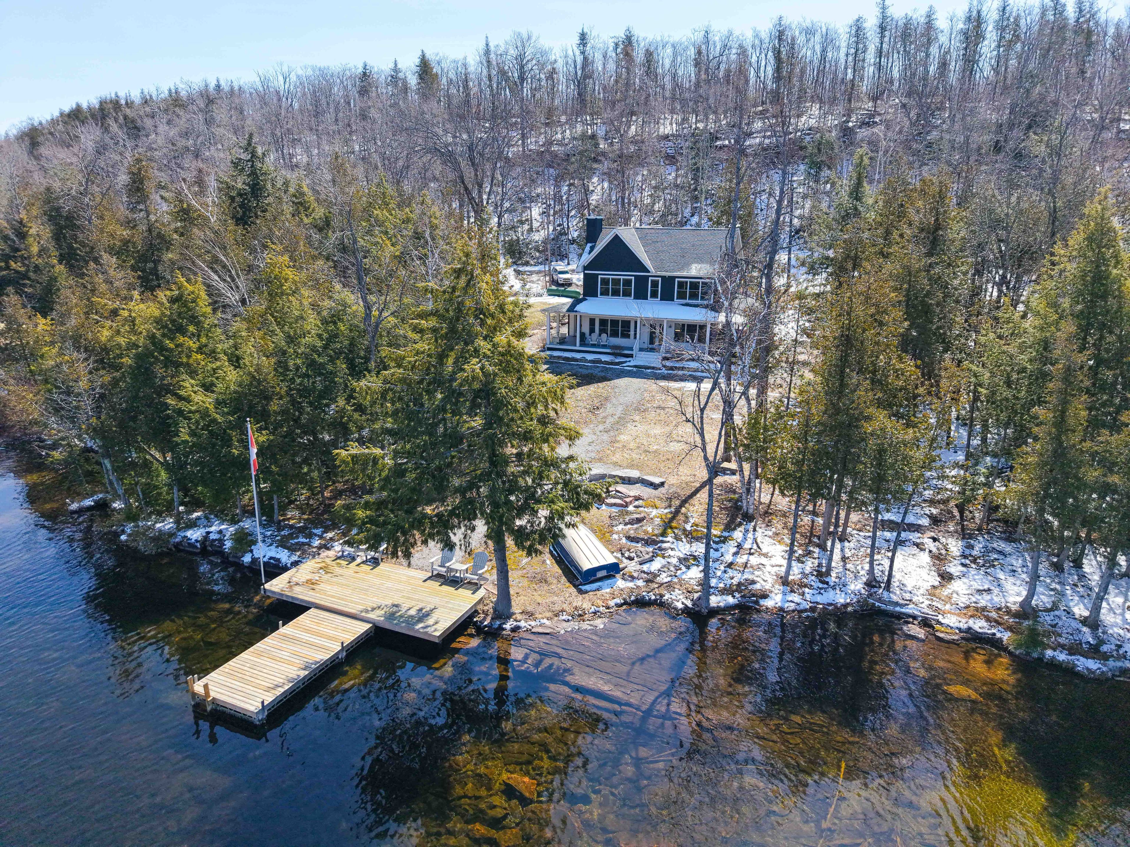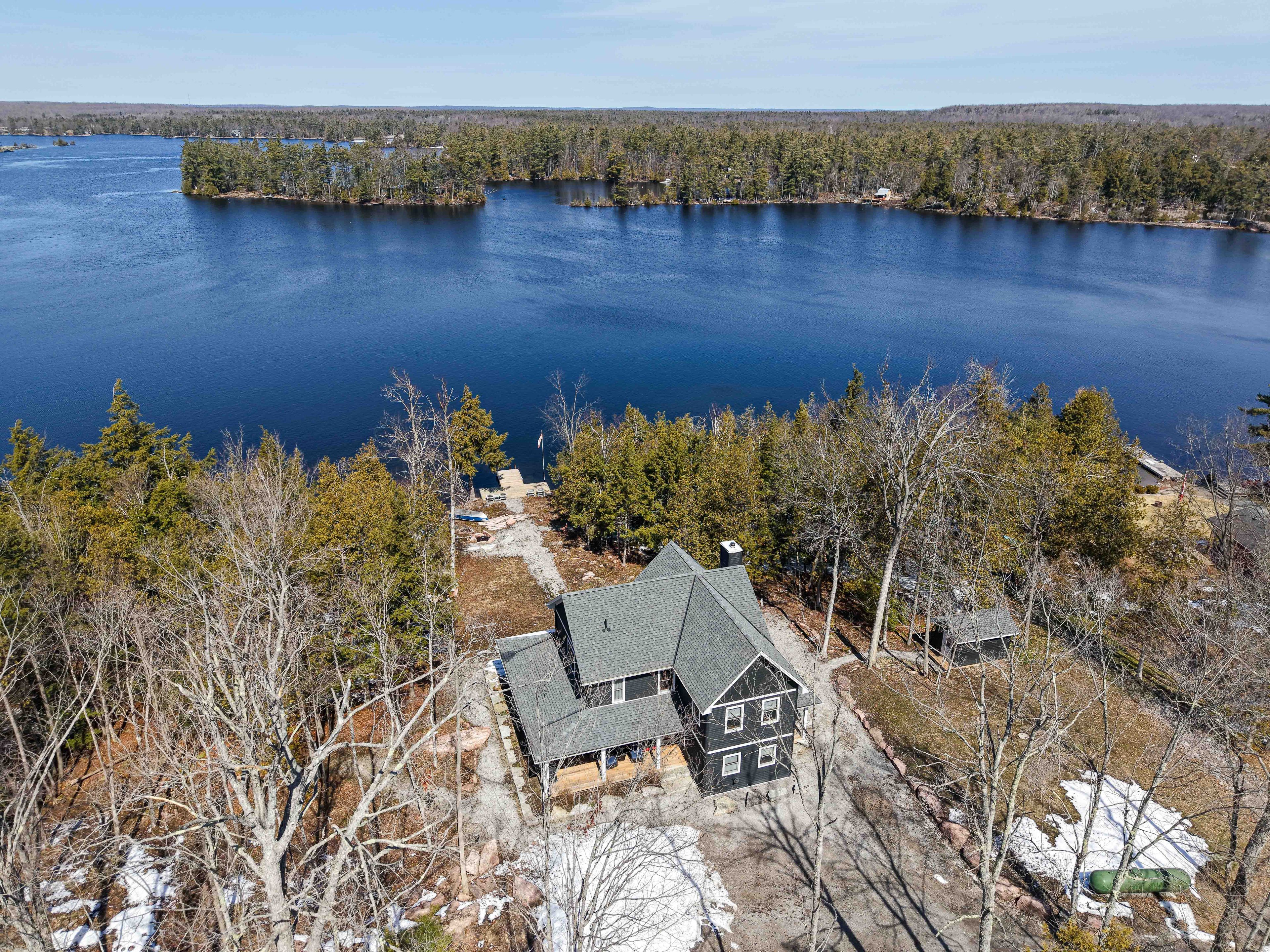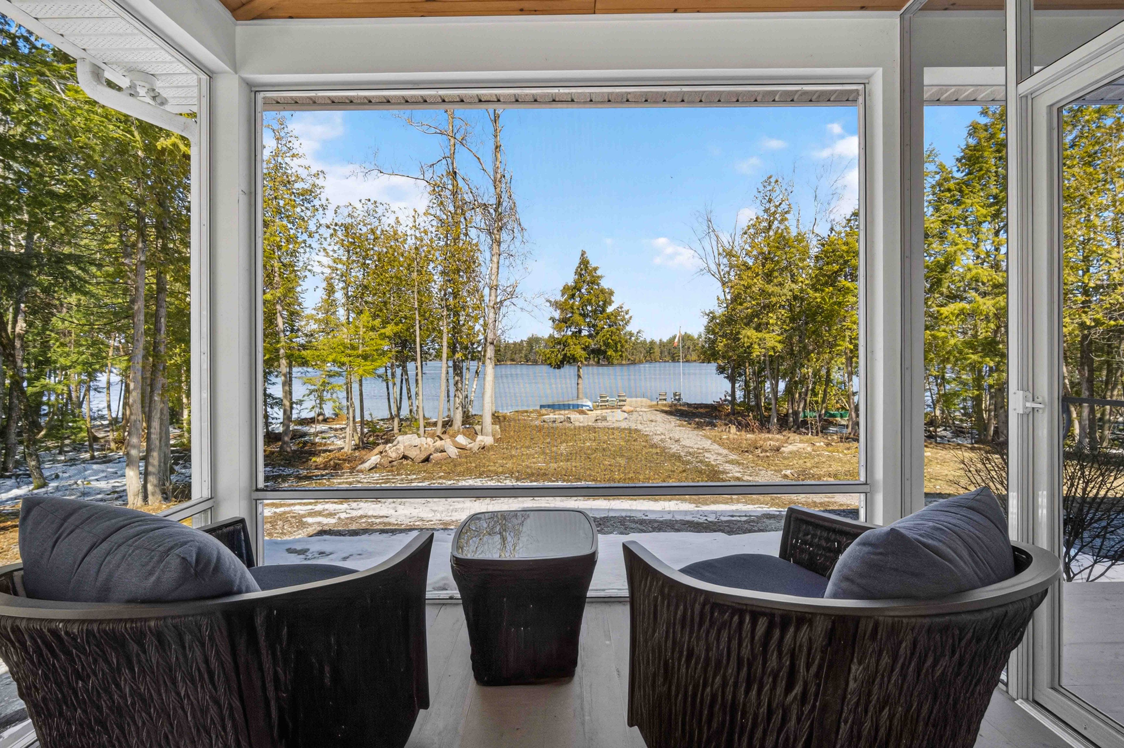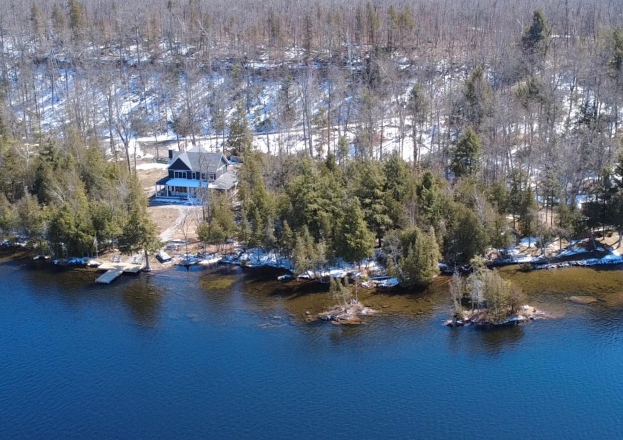 Pristine 2020 custom lakehouse on lovesick lake. Exceptionally rare double lot nestled between stony and buckhorn lakes offering 380ft of prime weed-free waterfront, 4. 4 acres of mixed hard/soft forest and stunning panoramic sunset views! Quality 6-year-new, custom home featuring outstanding local craftsmanship, top-of-the-line smart home technology, timeless finishes and porches with captivating lake and forest views throughout. Exceptional opportunity to own 2 adjoining waterfront lots, including a forested vacant lot next door. Offering incredible privacy, gleaming granite rock, deep clean swimming off the dock, and sandy beach wade-in area overlooking two natural islands & picturesque lovesick lake. Ultimate 4 season waterfront living, featuring open concept kitchen with quartz counters, large closed pantries and butcher-block island, open to lakefront dining and living room with natural stone-set fireplace & hearth. Hardwood 5x3/4 hickory flooring throughout with fully custom oak staircase. Pella double-hung metal clad exterior/wood interior windows and doors including an impressive tri-fold door that opens the living space into this dream screened-in porch overlooking peaceful lake & forest views. Thoughtfully designed for ground floor living with bedroom, bathroom with full walk-in shower and laundry/mudroom on the main level. 3 more large bedrooms and full bathroom upstairs, with heated floors & quartz counters in both bathrooms. Walkout to wrap-around front porch overlooking private level waterfront lot with lakeside fire pit, excellent storage shed, armour stone landscaping & gardens, and large dock for endless swimming, fishing & boating through the sought-after trent severn waterway. Live year-round with ease with full auto-generac, propane furnace, central air, smart controls throughout & much more. Convenient to amenities, just 15m to lakefield, 25m to peterborough, and under 1. 5h to gta! Once-in-a-lifetime waterfront living on desirable lovesick lake!