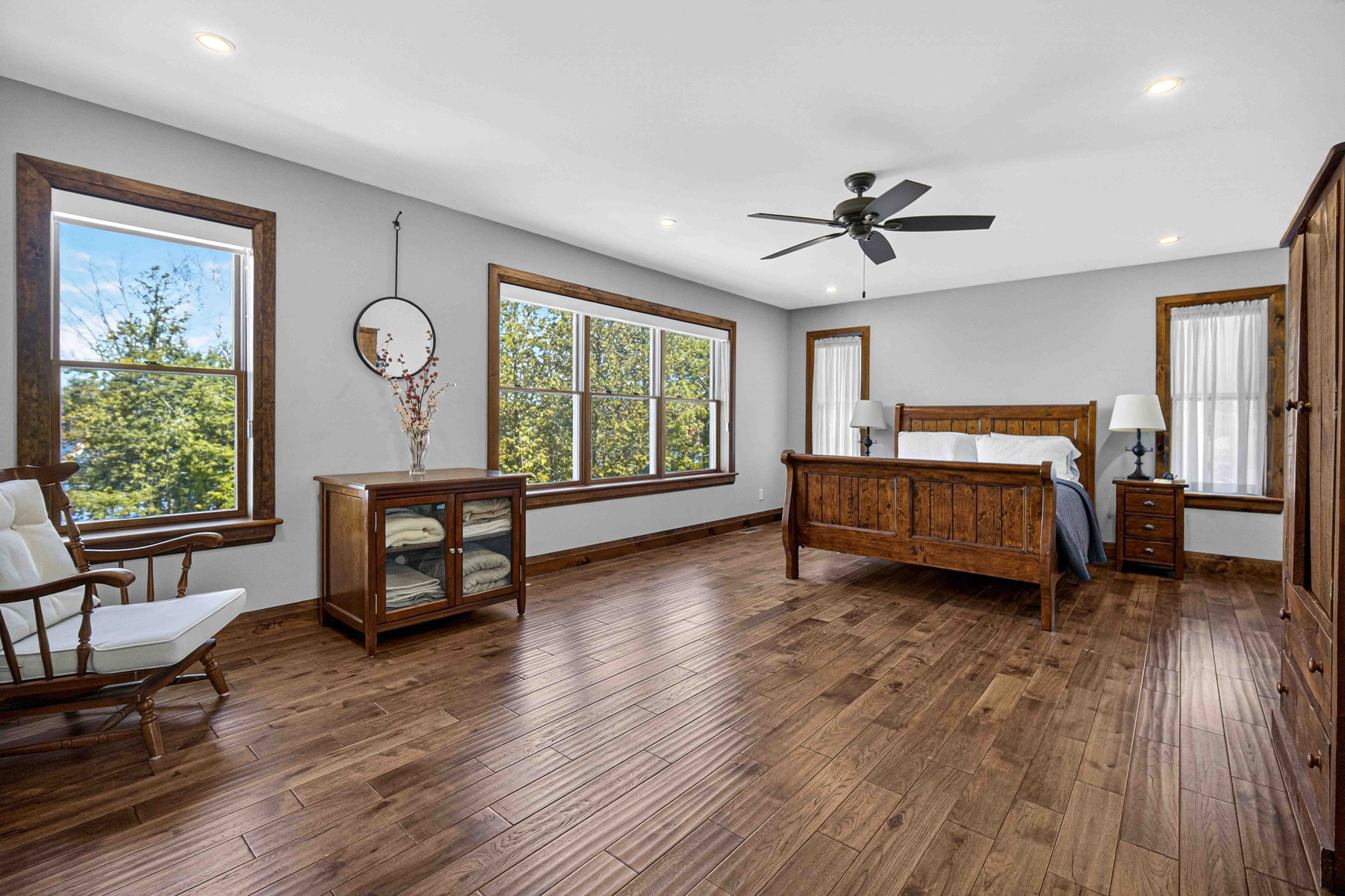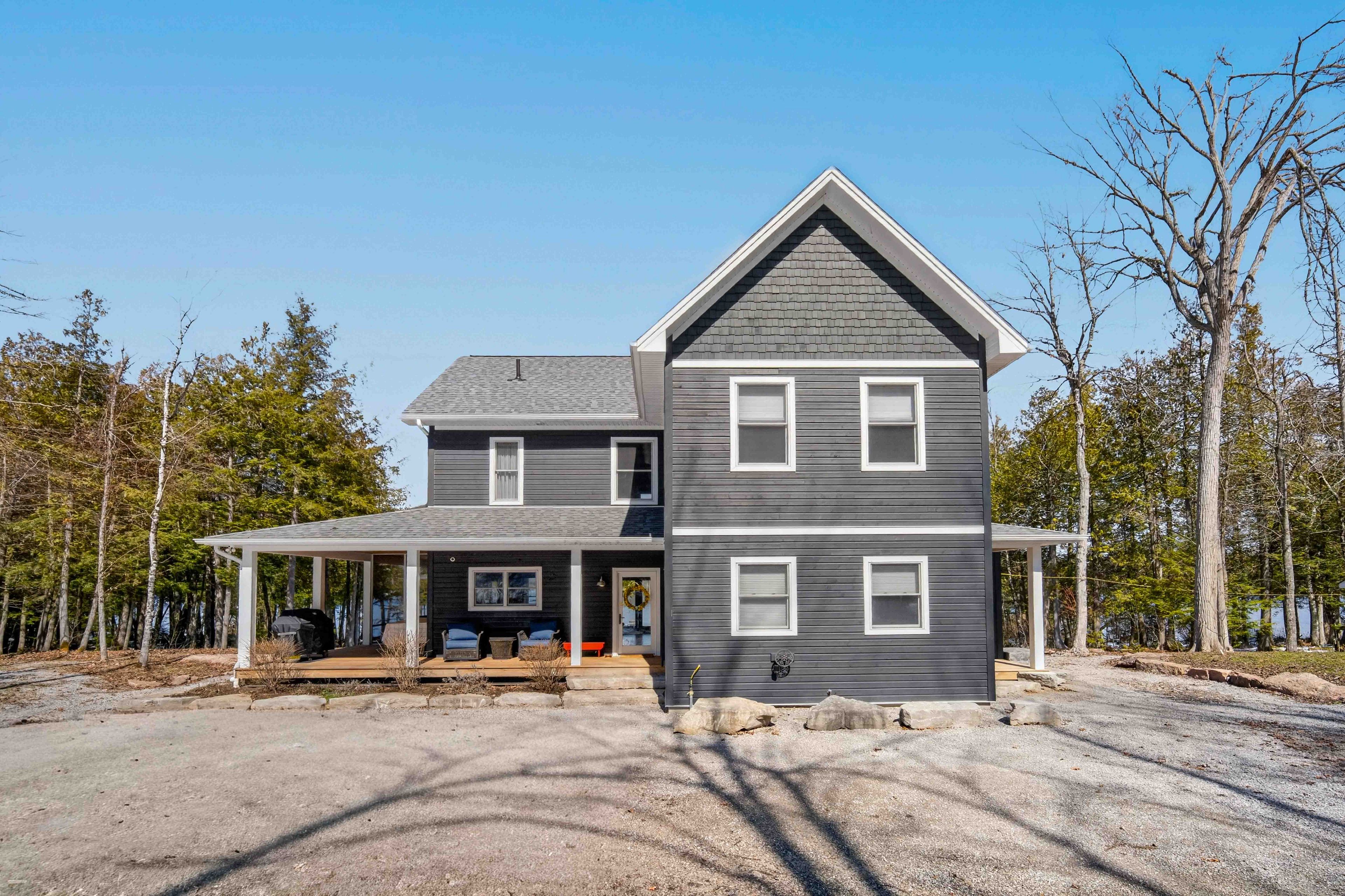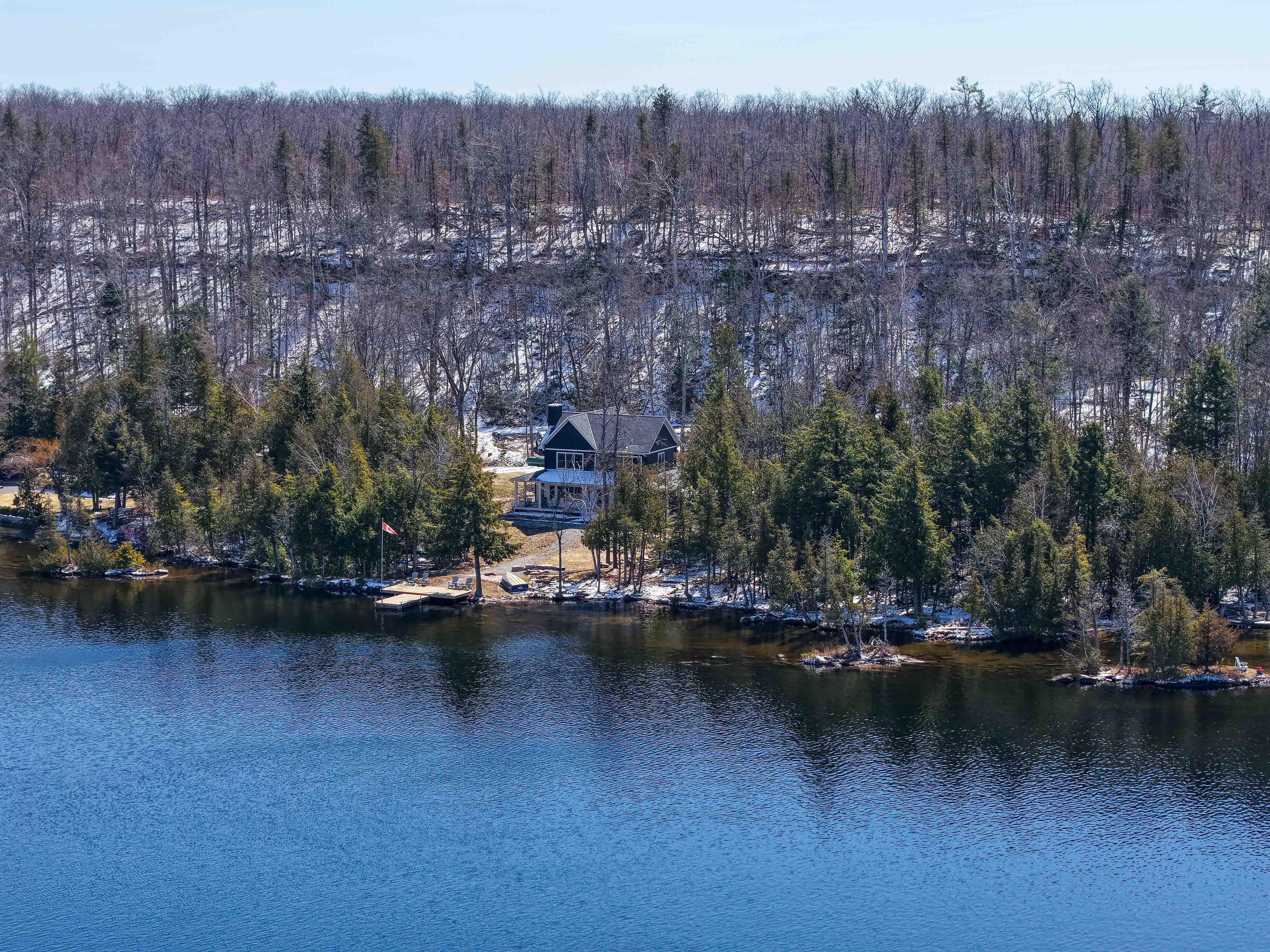 Pristine 2020 custom lakehouse on lovesick lake. Exceptionally rare double lot nestled between stony and buckhorn lakes offering 380ft of prime weed-free waterfront, 4. 4 acres of mixed hard/soft forest and stunning panoramic sunset views! Quality 6-year-new, custom home featuring outstanding local craftsmanship, top-of-the-line smart home technology, timeless finishes and porches with captivating lake and forest views throughout. Exceptional opportunity to own 2 adjoining waterfront lots, including a forested vacant lot next door. Offering incredible privacy, gleaming granite rock, deep clean swimming off the dock, and sandy beach wade-in area overlooking two natural islands & picturesque lovesick lake. Ultimate 4 season waterfront living, featuring open concept kitchen with quartz counters, large closed pantries and butcher-block island, open to lakefront dining and living room with natural stone-set fireplace & hearth. Hardwood 5x3/4 hickory flooring throughout with fully custom oak staircase. Pella double-hung metal clad exterior/wood interior windows and doors including an impressive tri-fold door that opens the living space into this dream screened-in porch overlooking peaceful lake & forest views. Thoughtfully designed for ground floor living with bedroom, bathroom with full walk-in shower and laundry/mudroom on the main level. 3 more large bedrooms and full bathroom upstairs, with heated floors & quartz counters in both bathrooms. Walkout to wrap-around front porch overlooking private level waterfront lot with lakeside fire pit, excellent storage shed, armour stone landscaping & gardens, and large dock for endless swimming, fishing & boating through the sought-after trent severn waterway. Live year-round with ease with full auto-generac, propane furnace, central air, smart controls throughout & much more. Convenient to amenities, just 15m to lakefield, 25m to peterborough, and under 1. 5h to gta! Once-in-a-lifetime waterfront living on desirable lovesick lake!