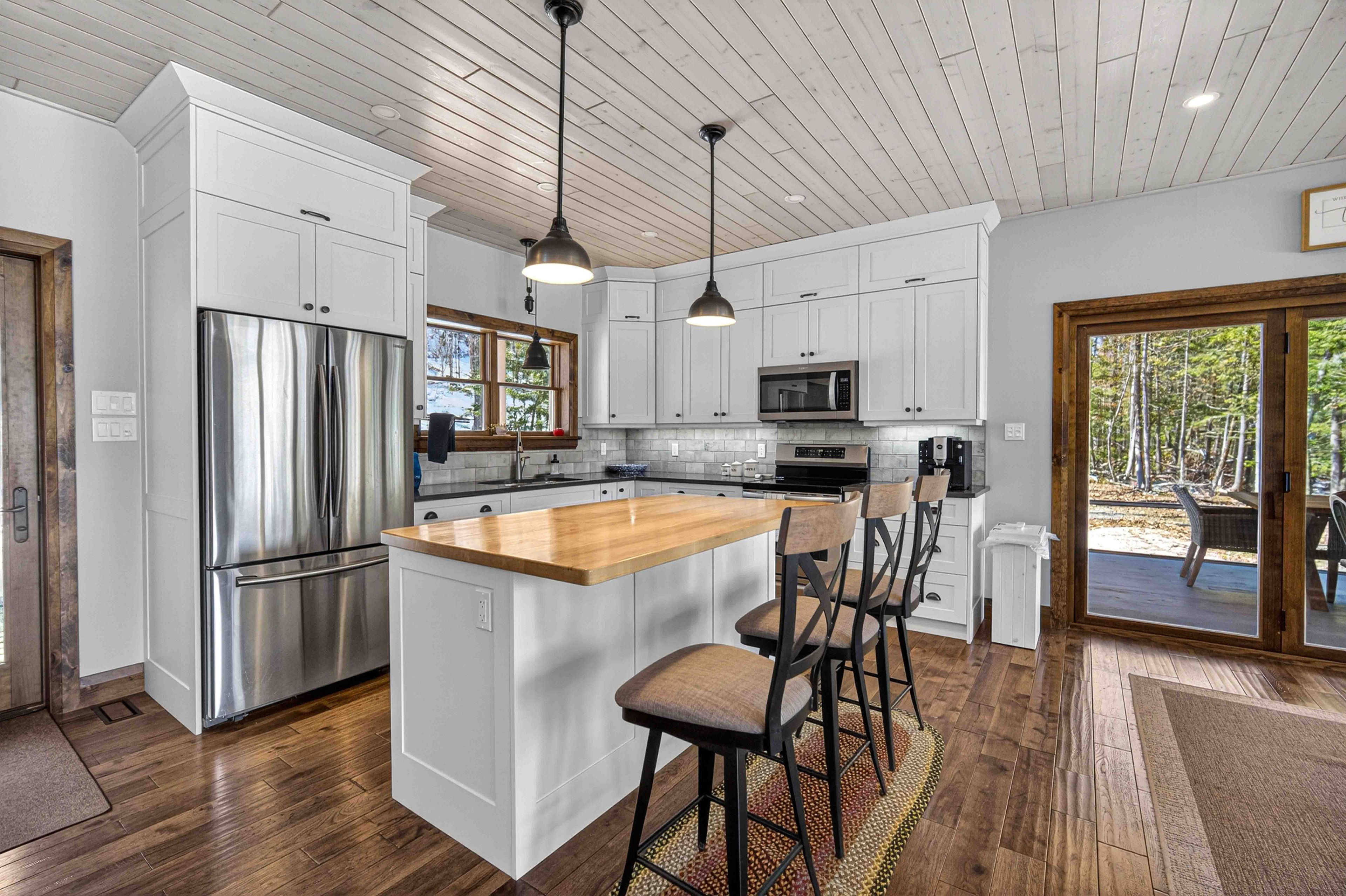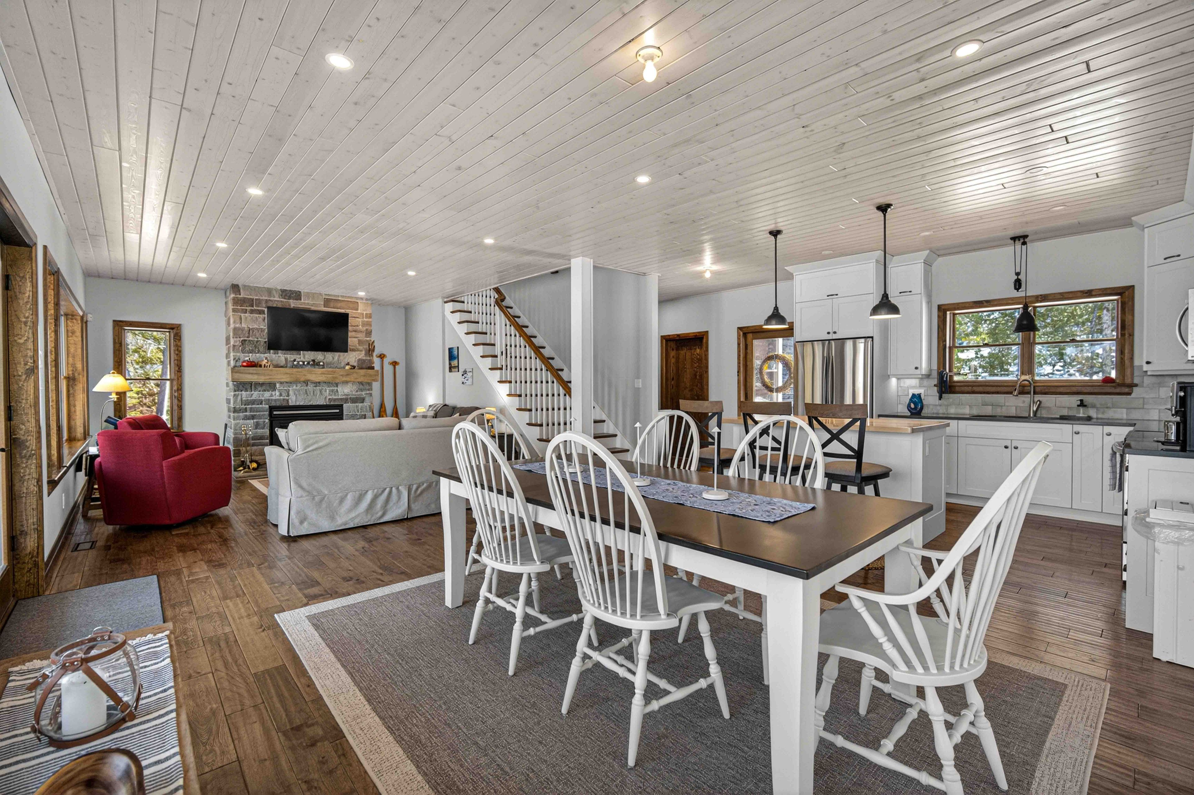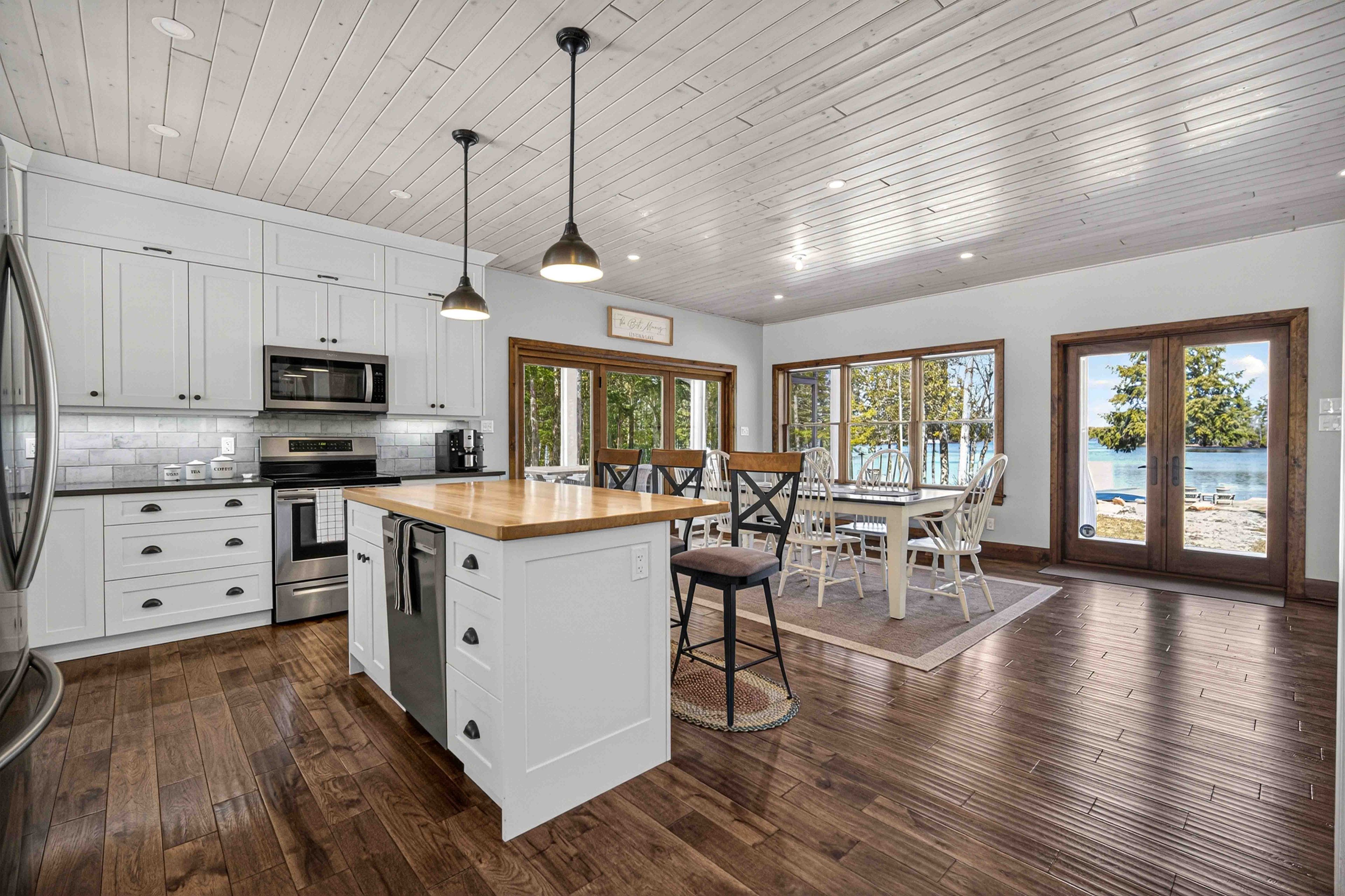 • Open concept kitchen and living space perfect for entertaining and lake views.