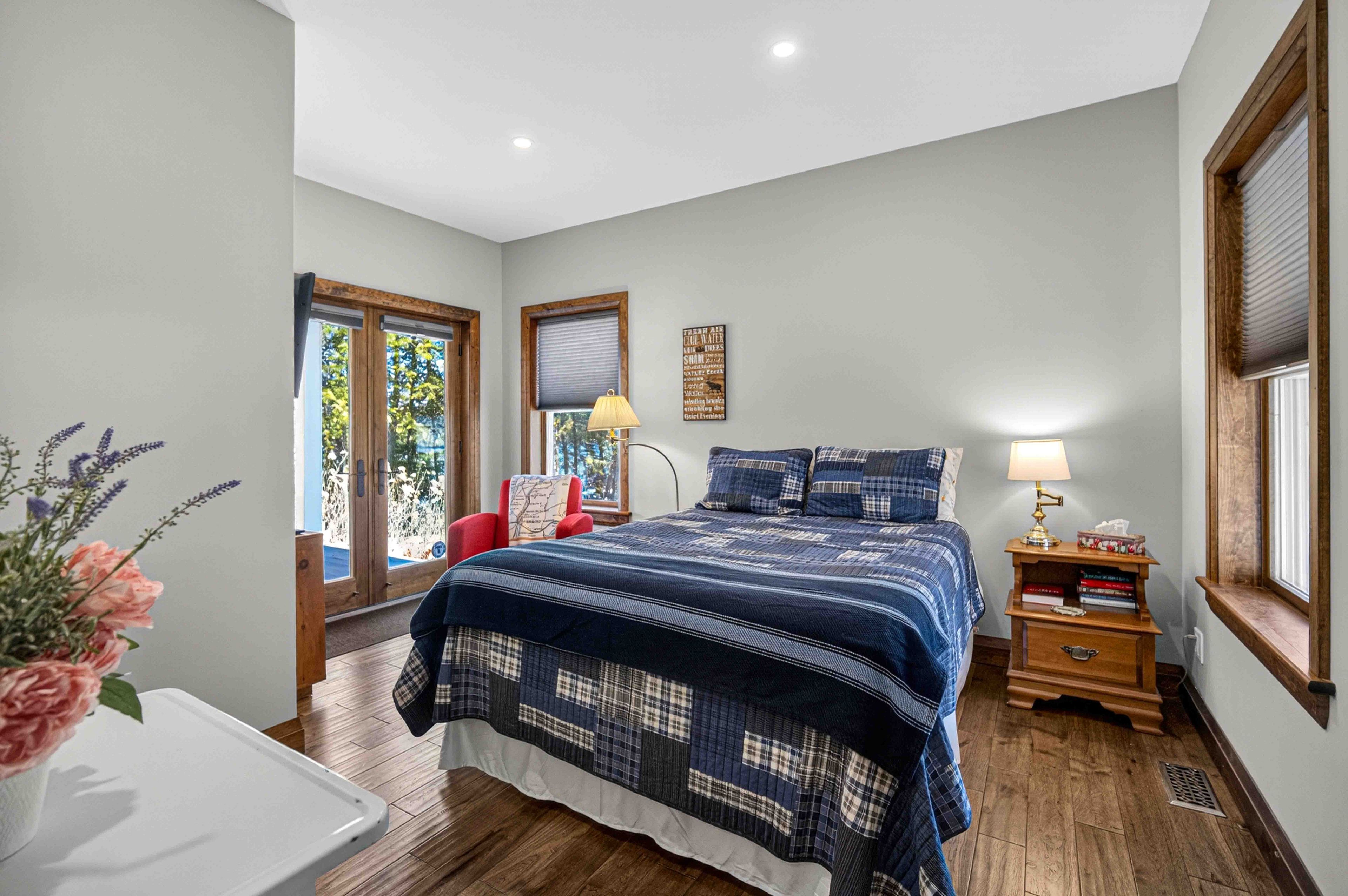 • Large outdoor areas for swimming, fishing, and relaxing by the fire pit.