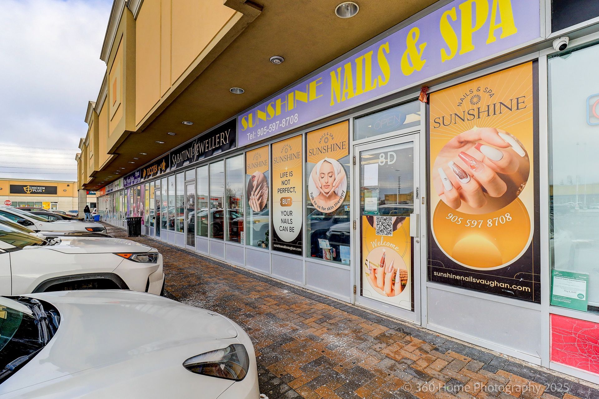 Look no further!!! Busy nail/beauty salon close to vaughan mills mall. Located in high traffic plaza, fronting rutherford rd, close to major highway. 1280 sq ft includes 9 nail stations, tables, chairs, 7 foot spas/lounges and chairs, 3 private rooms for aesthetics, waxing, massages, etc etc etc. Washer/dryer, fridge, linens, all products and equipment supplies. Established business with an established list of clientele. Open 7 days a week. Parking outdoors. A must see!!! Bring an offer!!