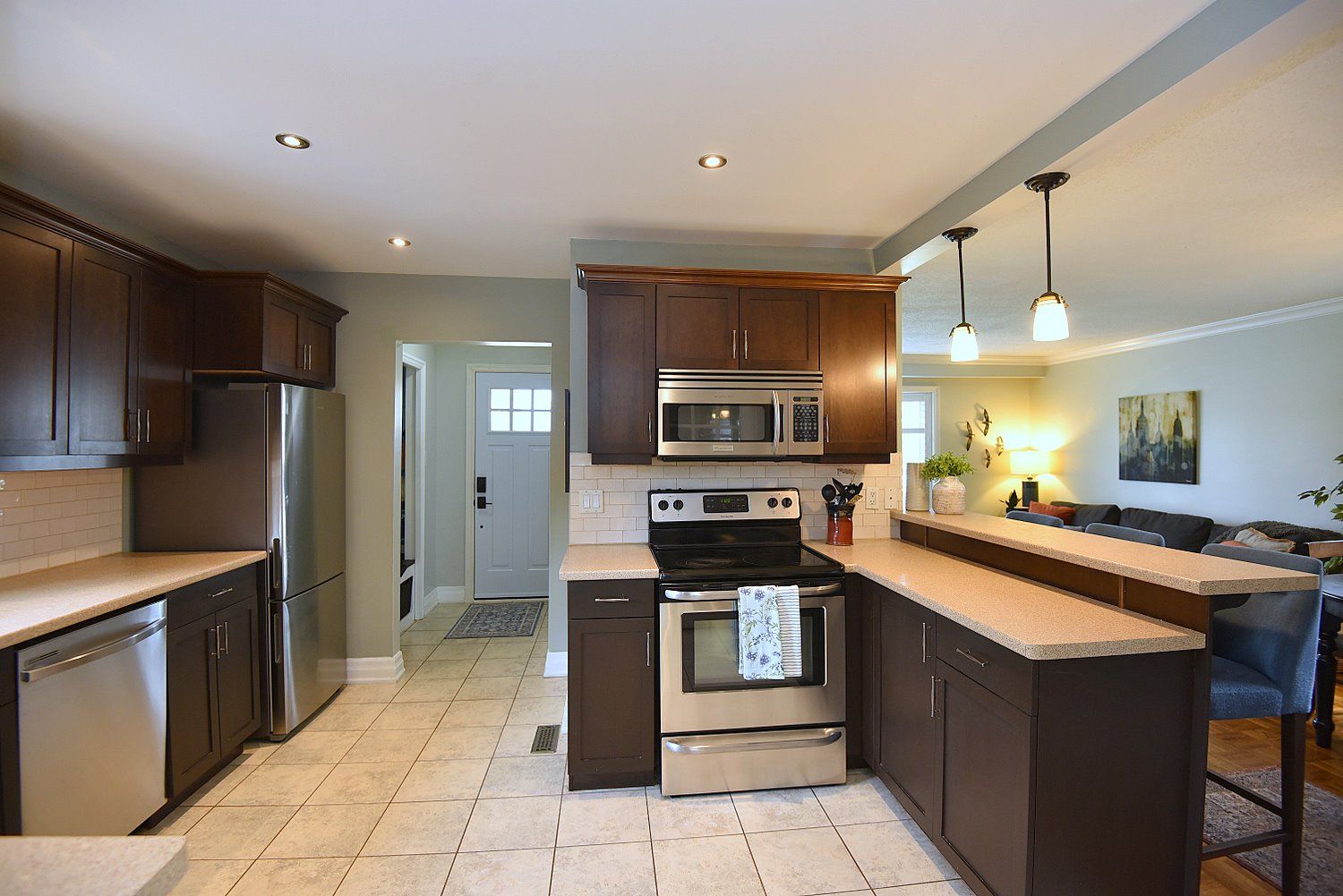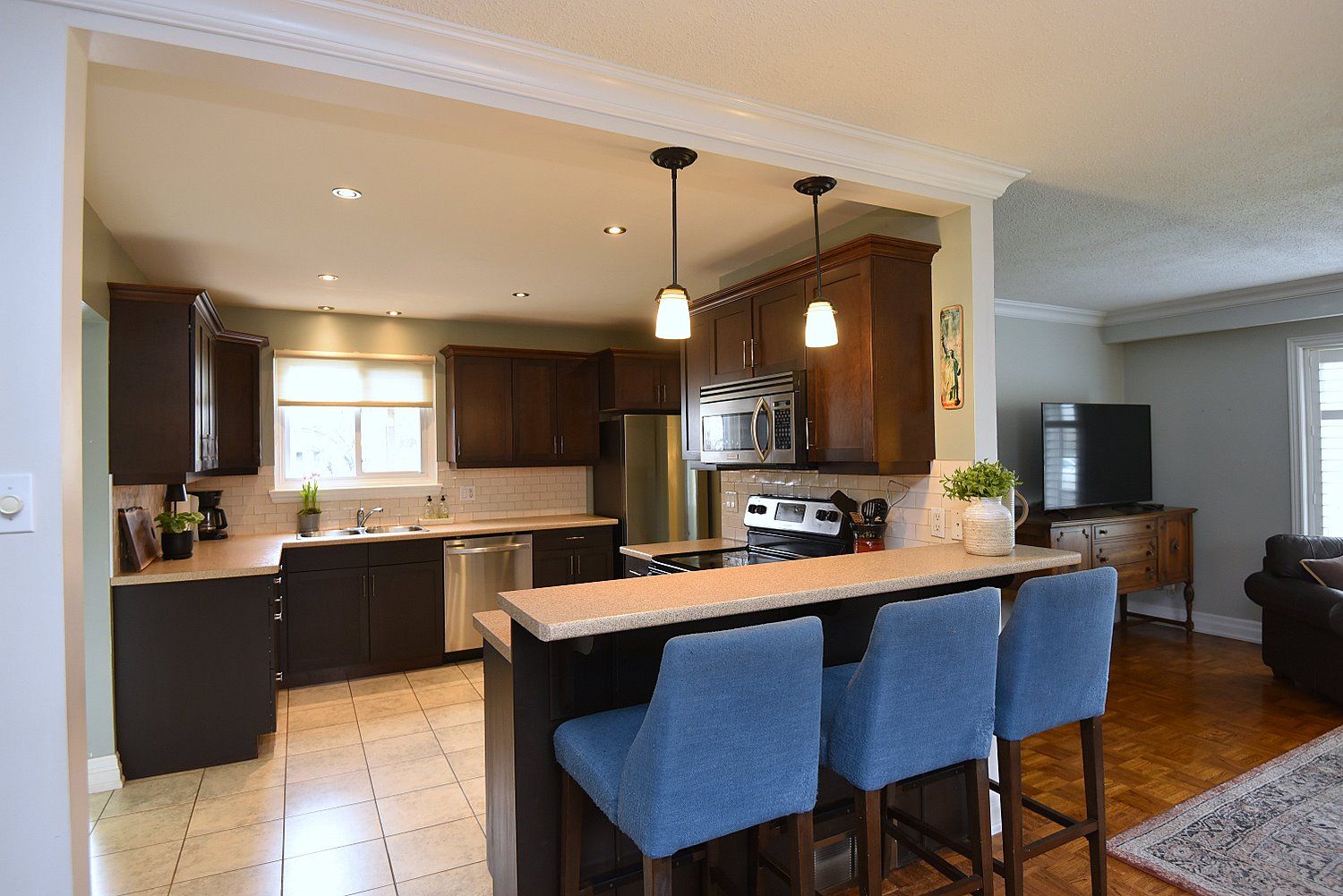 Great opportunity to own a detached home in burlington's desirable palmer neighbourhood! This family friendly home offers 4 bedrooms, all on the upper level, and an open-concept main floor ideal for everyday living and entertaining. The kitchen features stainless steel appliances (fridge 2024) and a convenient breakfast bar. The bright lower level includes a large egress window, a newly updated 3-piece bath, and a built-in workspace-perfect for a home office or study area. Updates include windows, roof 2018, furnace & a/c 2021, owned water heater 2010, 2 exterior doors oct 2025. Carport and double driveway allows parking for 3 vehicles. Close to parks, schools, shopping, and more.