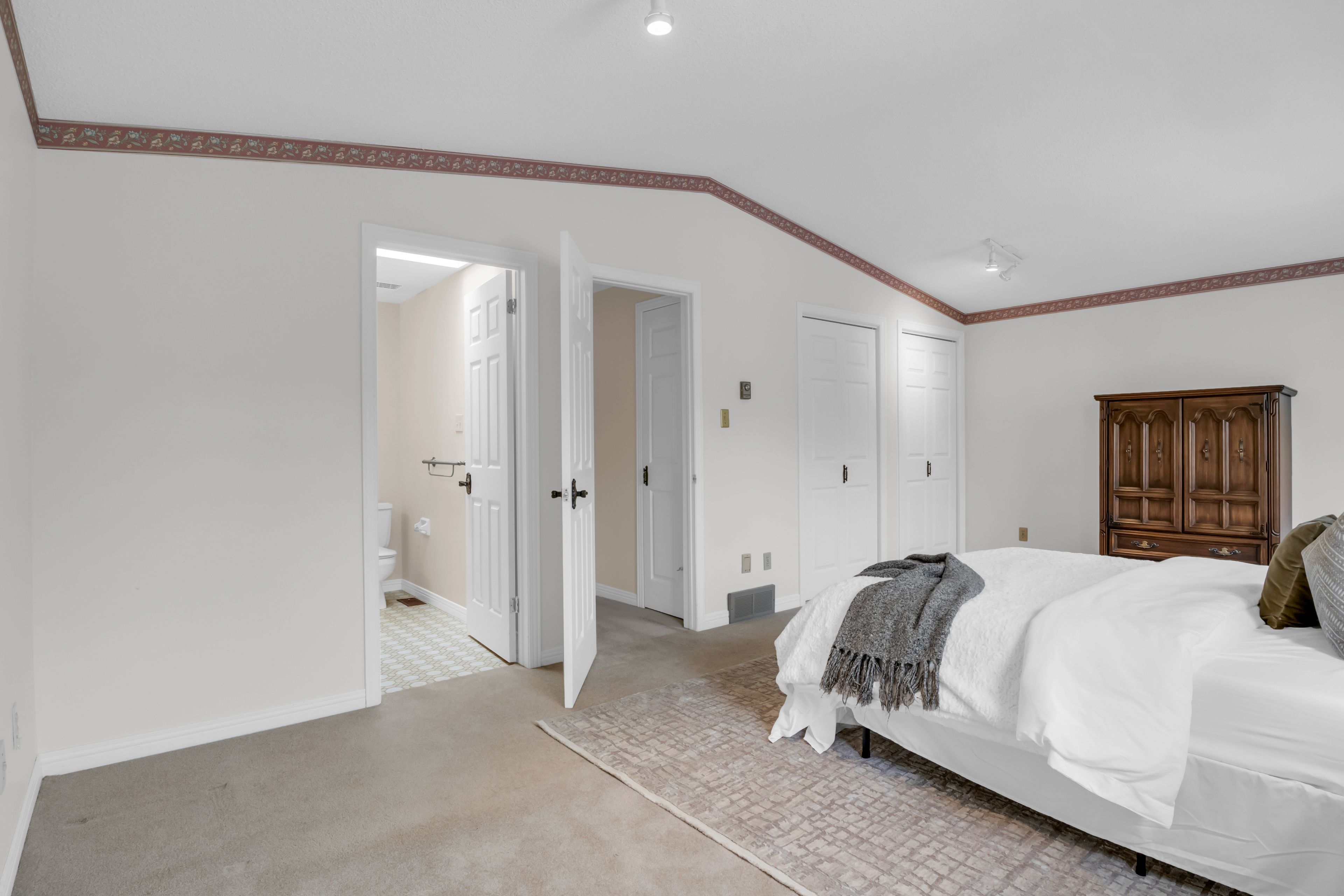 • Impressive primary bedroom with a private ensuite bathroom.
