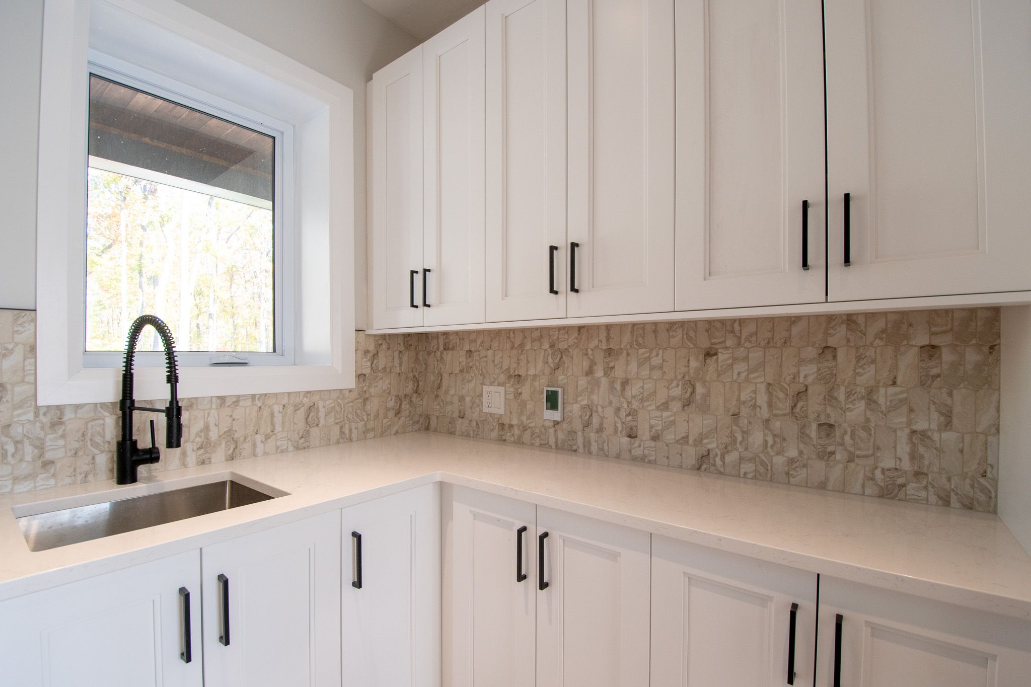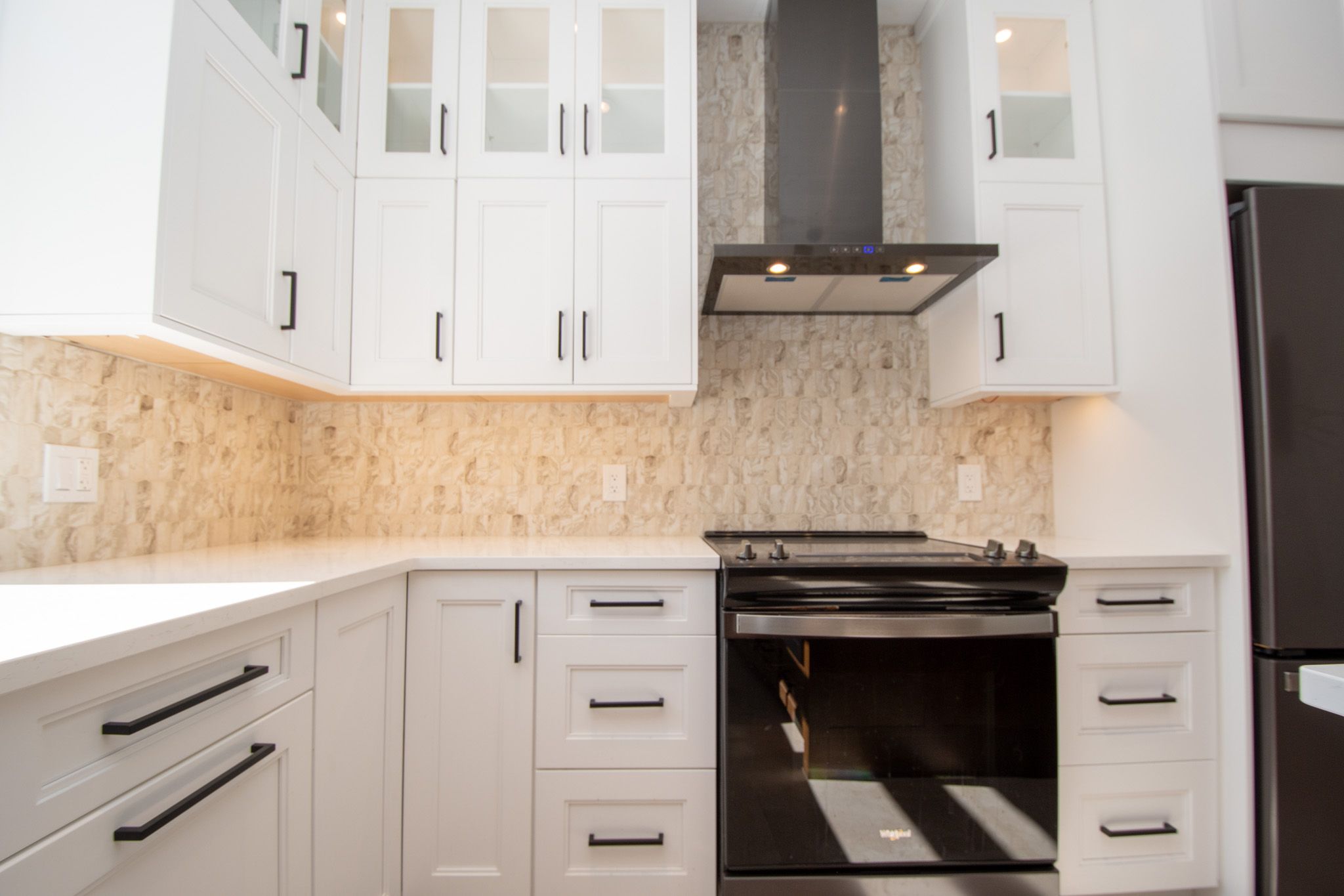 • Spacious kitchen with heated floors, ample cupboard and counter space.