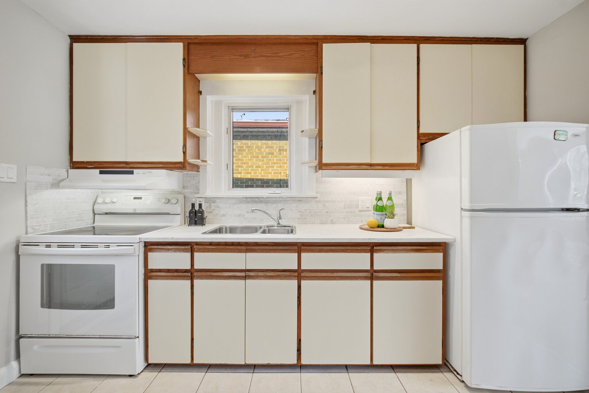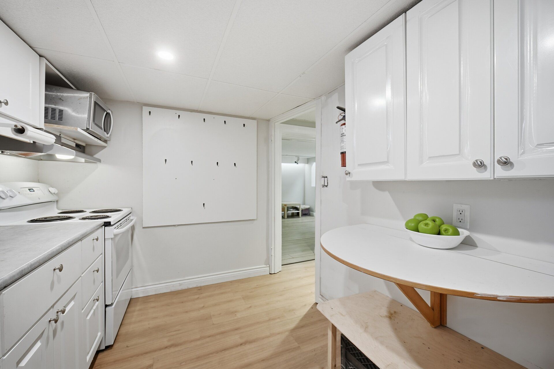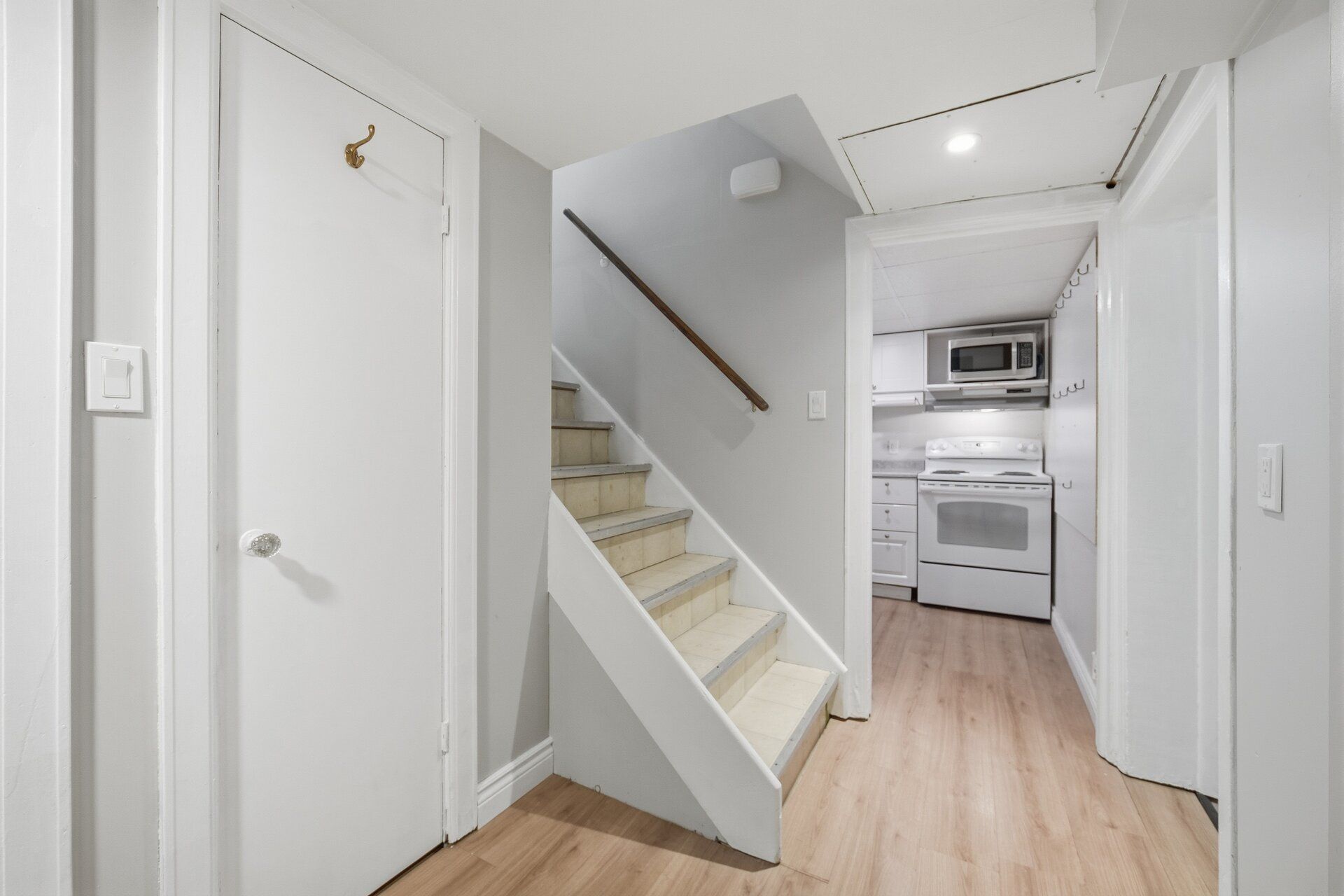 • Separate entrance to a one-bedroom basement apartment for extra income.