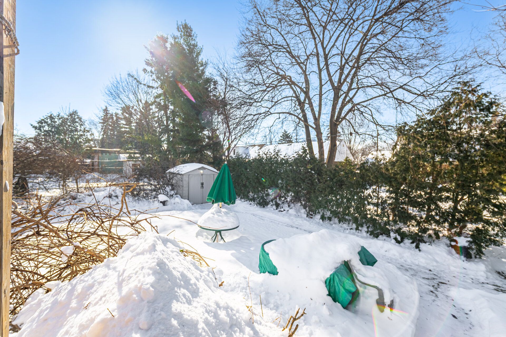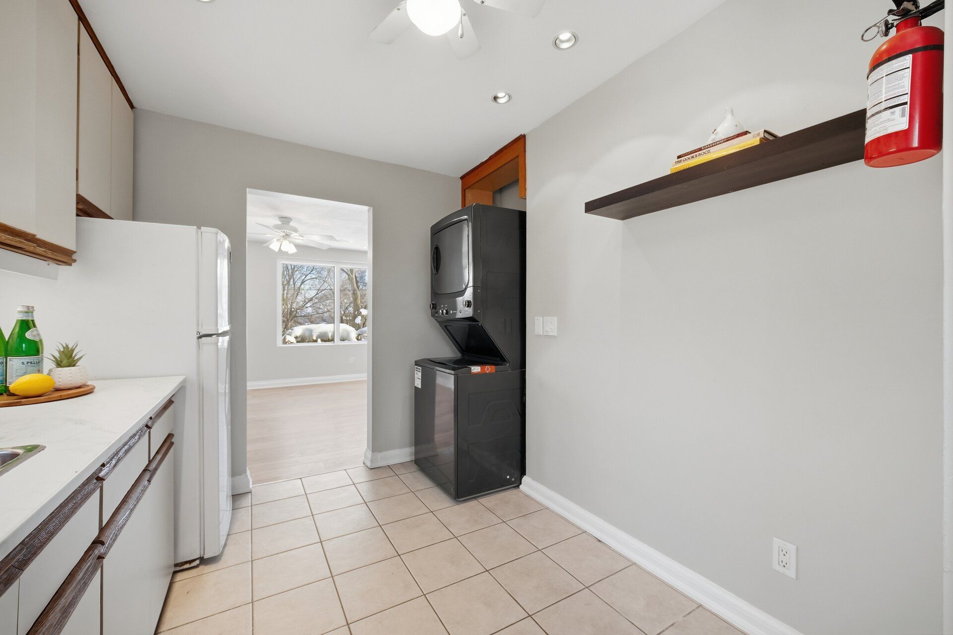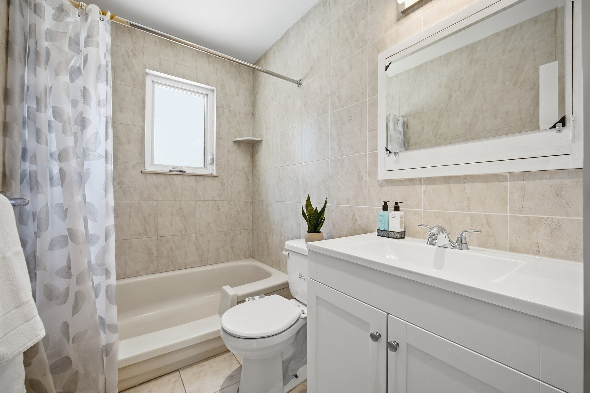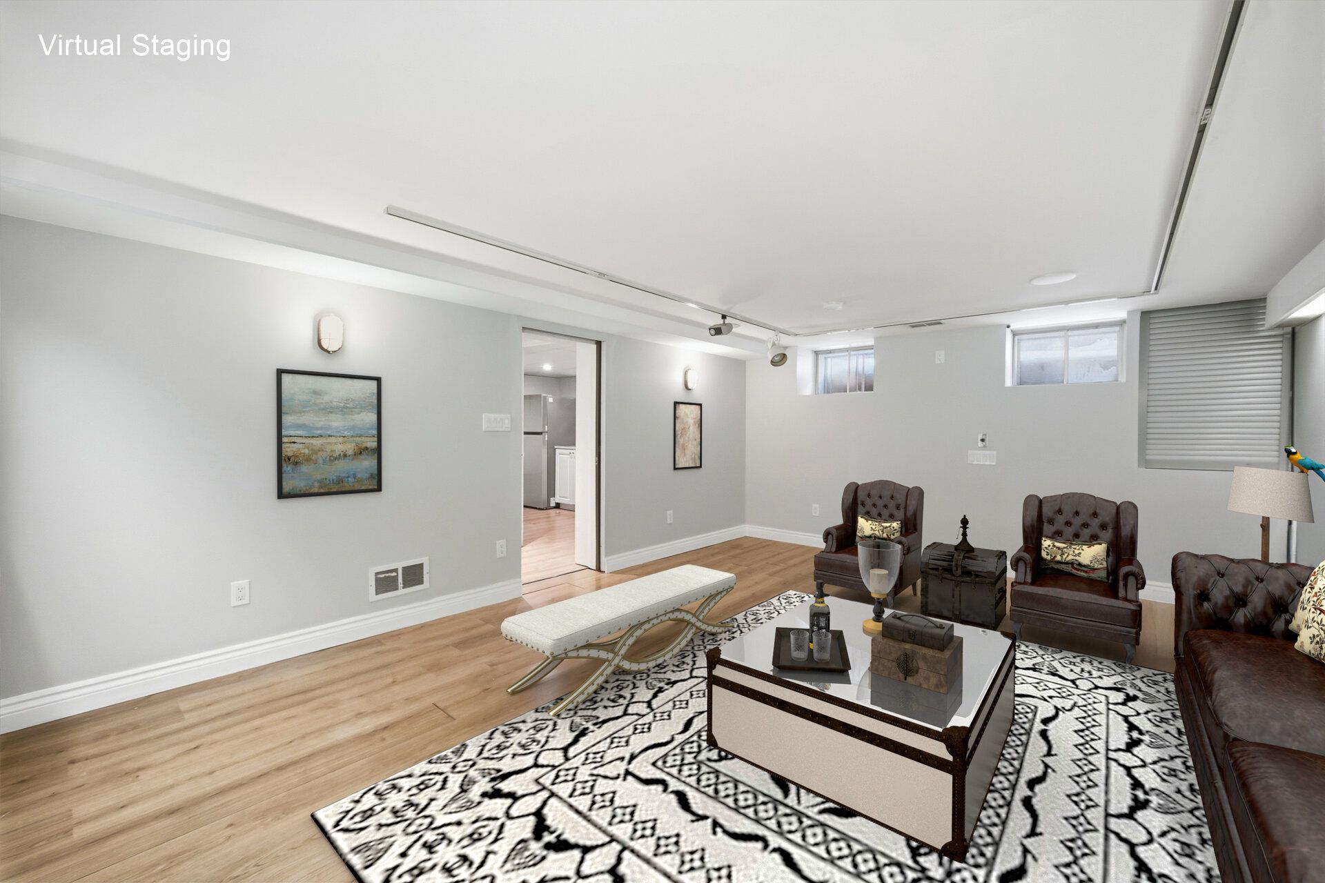 • Separate entrance to a one-bedroom basement apartment for extra income.
