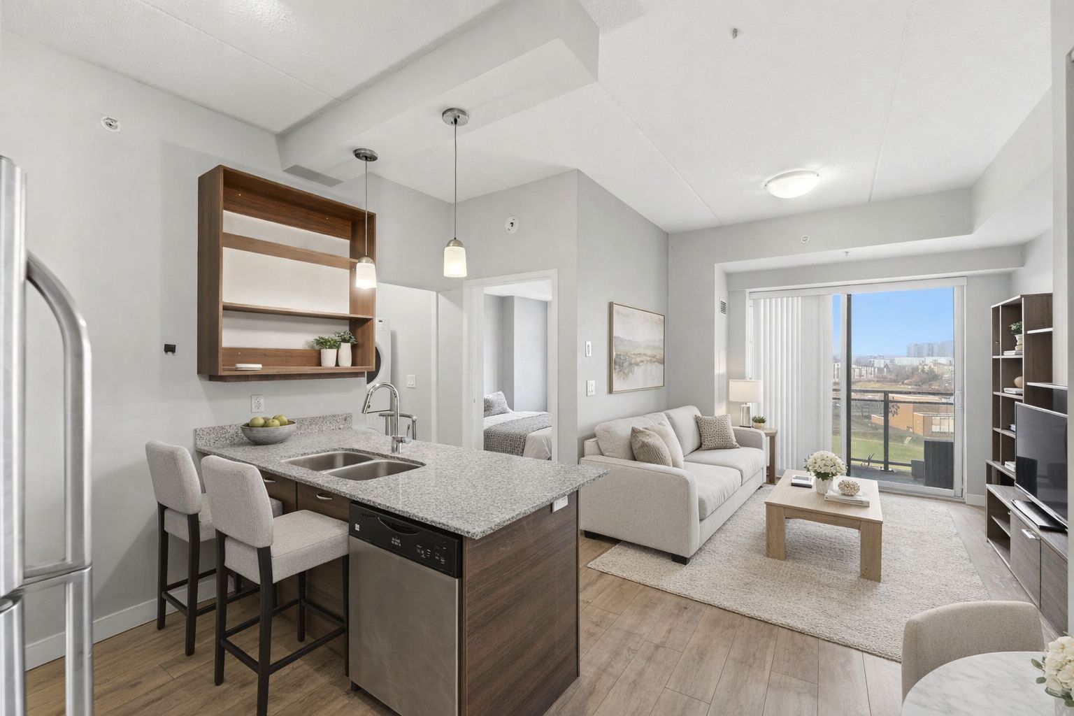 Calling all investors, parents of university students, and young professionals! Welcome to sage condos in waterloo's vibrant university core. This spacious one-bedroom, one-bathroom suite offers just under 600 sq ft of thoughtfully designed living space. The open-concept layout features a modern kitchen complete with stainless steel appliances and ample cabinetry, seamlessly flowing into a bright and inviting living area. Large windows fill the space with natural light, while the private balcony showcases expansive city views. The bedroom is generously sized and offers comfortable, functional living. Additional highlights include in-suite laundry for added convenience . Ideally located just steps from the university of waterloo and wilfrid laurier university, this is a prime opportunity in one of the city's most reliable rental markets. Enjoy walkable access to shops, restaurants, transit, including the lrt and go bus station, and all essential amenities. Sage condos offers desirable building amenities such as a rooftop terrace, fitness center, party room, and high-speed internet. Whether you're expanding your investment portfolio, securing a home for a student, or seeking a well-located urban residence, this is a smart and versatile opportunity in the heart of waterloo. Some images have been virtually staged for illustration purposes.