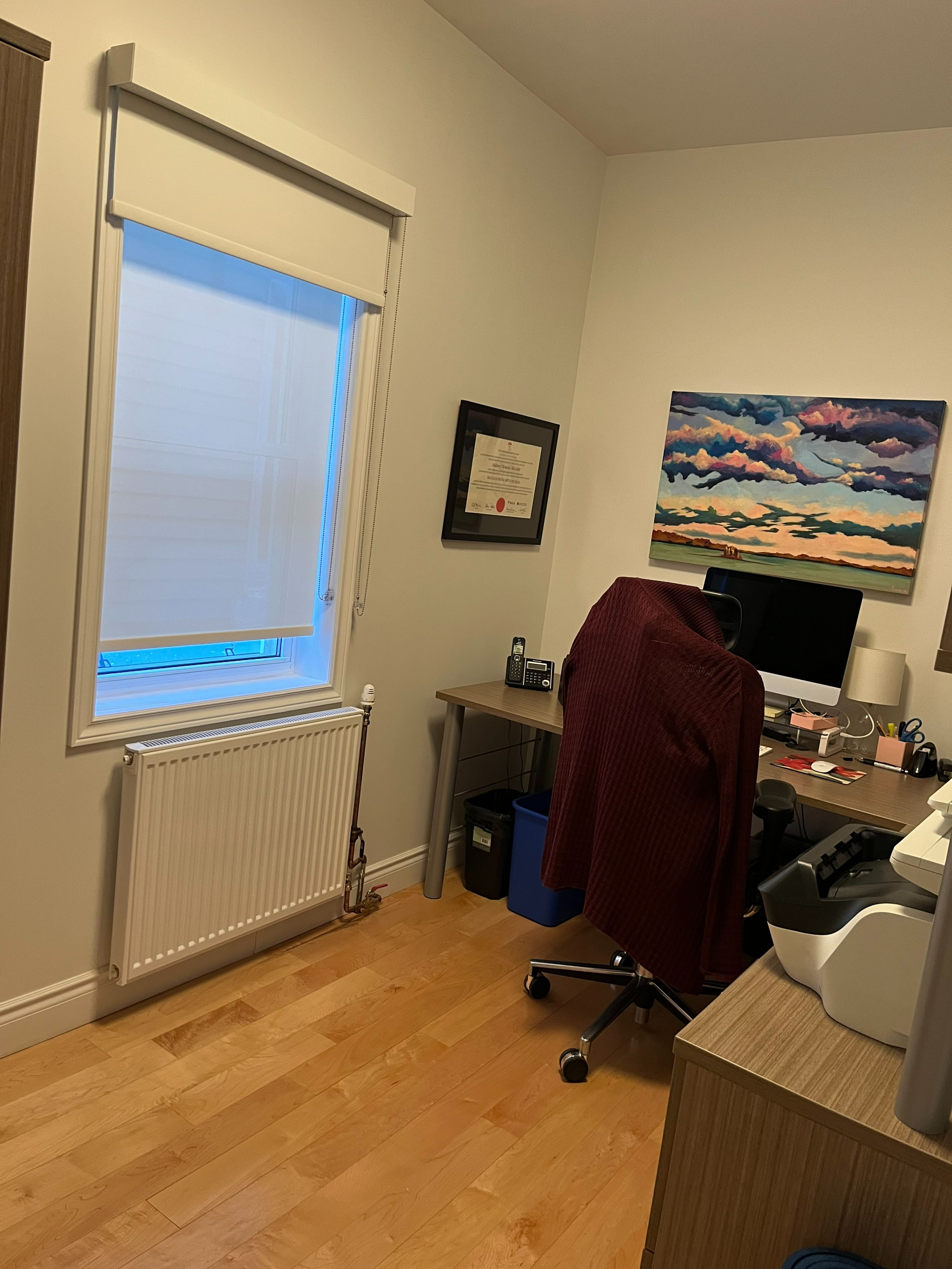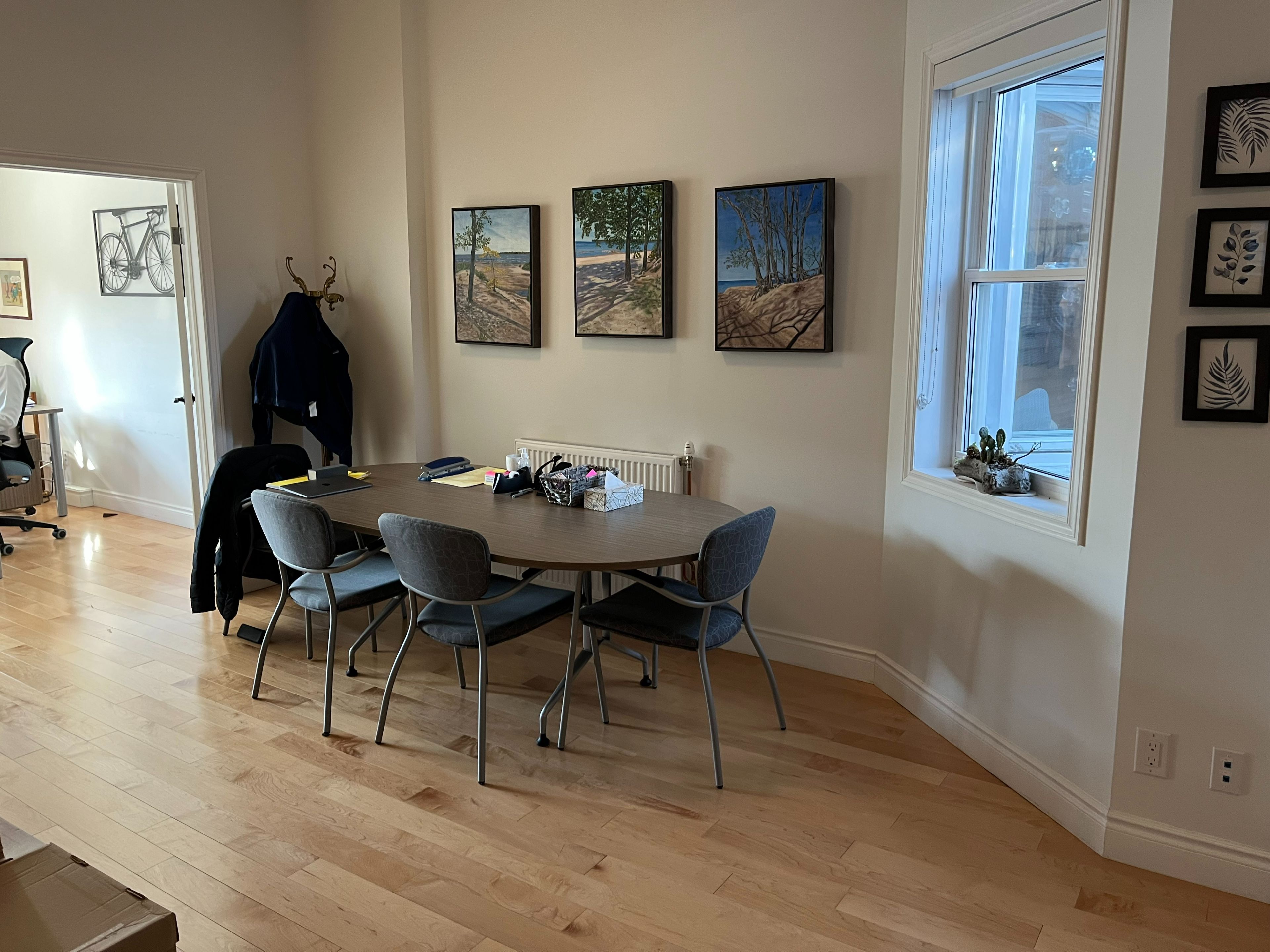 • Bright interior with plenty of windows for a sunny workspace.